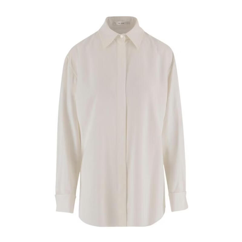 The Row Women's Shirt Breathable Drape Long Sleeve Commuting Work Top Simple and Casual White One Size |US-4