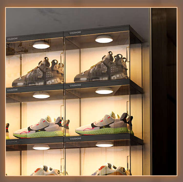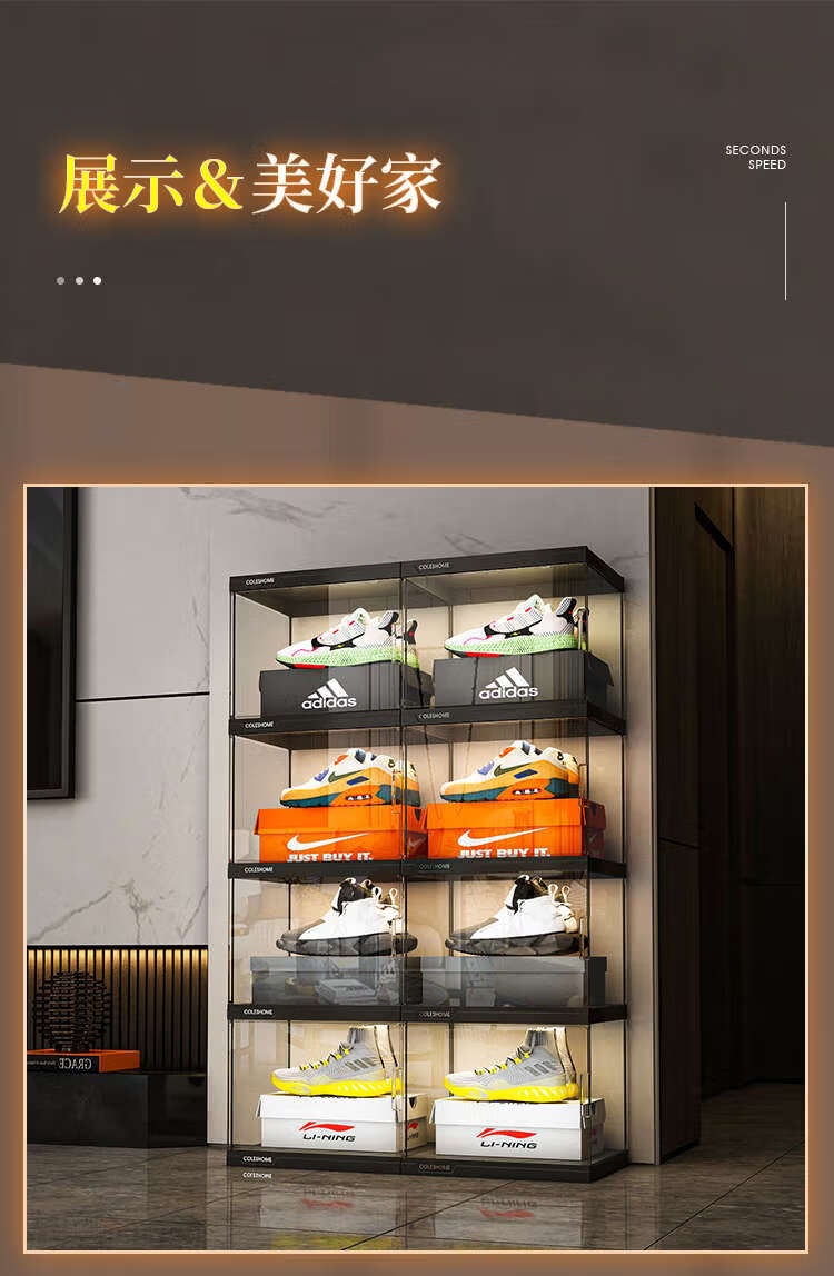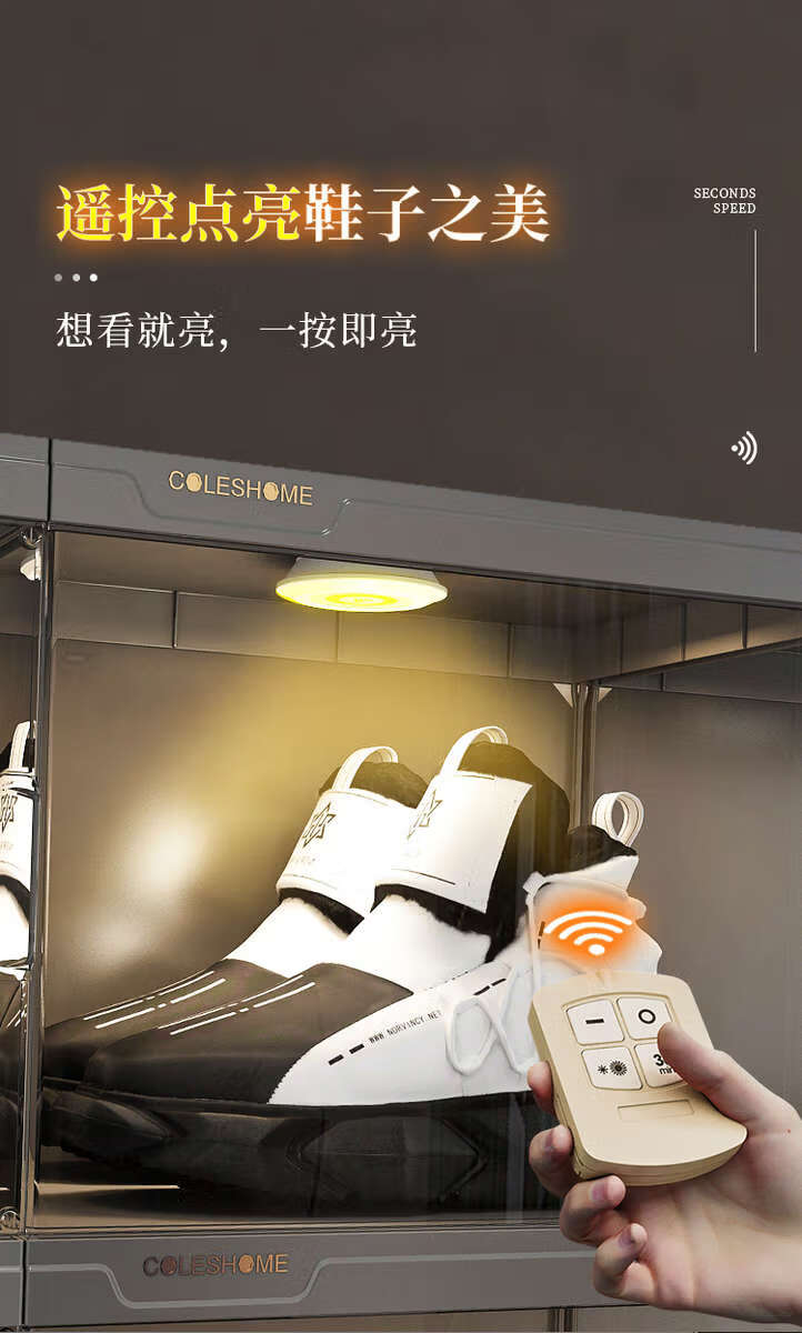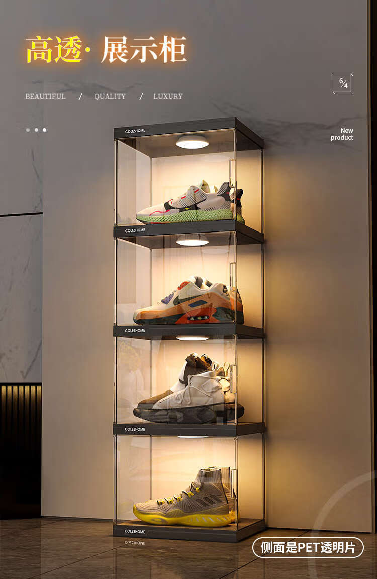 Yusenyi shoe storage household large-capacity transparent shoe box, folding shoe cabinet, shoe wall display rack with remote control, high-permeability magnetic door, 6 pairs (high-end collection display)