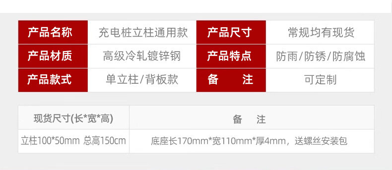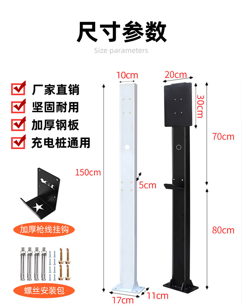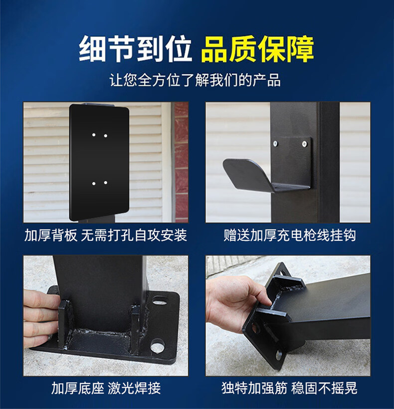 Shantou Lincun car charging pile pole mounting bracket BYD Tesla home thickened outdoor rust-free 4S universal black standard model comes with back plate hook screws 1.5 meters
