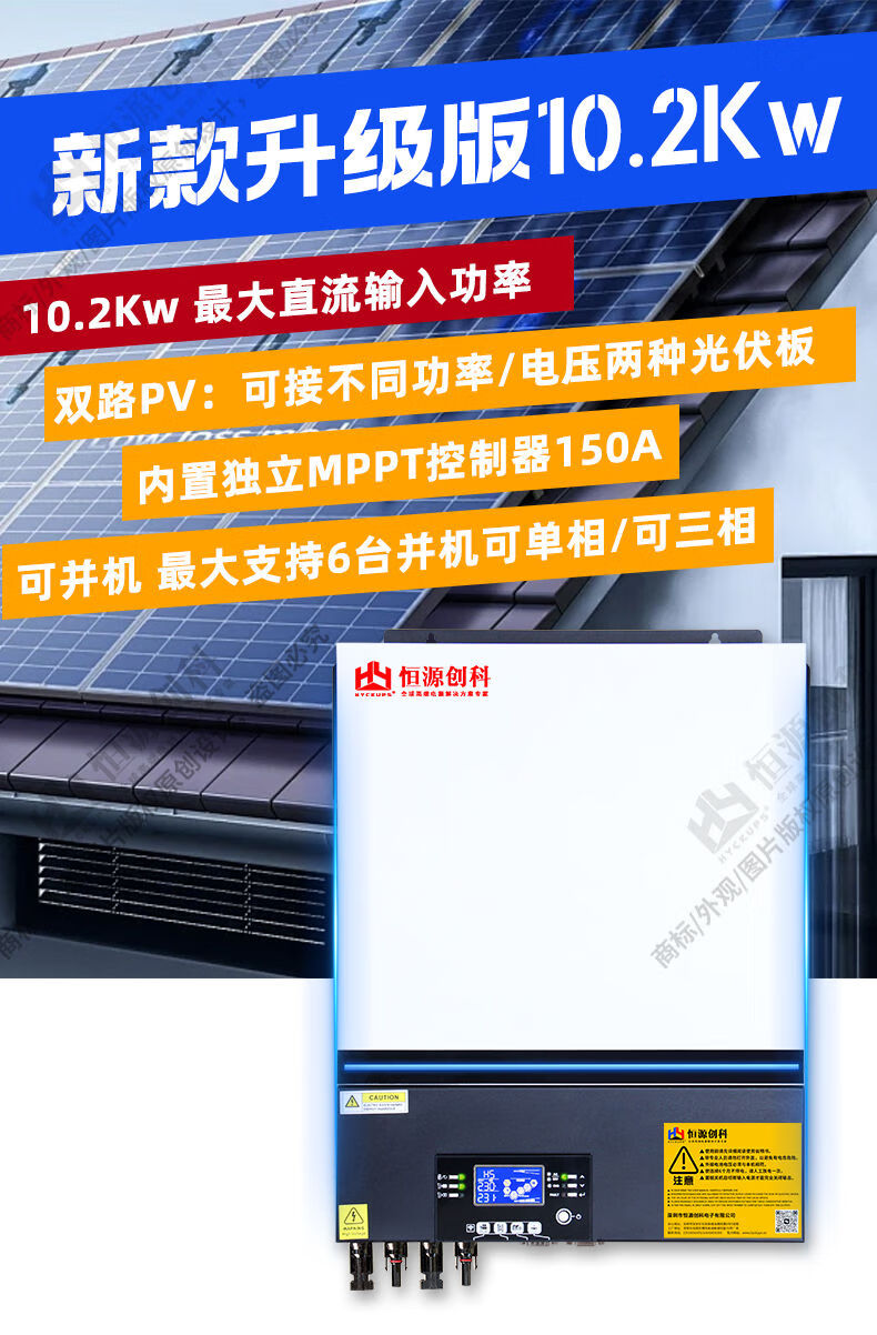 Wenzhizao 10.2kw hybrid inverse control All solar photovoltaic inverter 8.2kw household energy storage off-grid and lightning protection upgrade upgraded model durable model 2Kw12vdc+ mobile APP monitoring quality 2