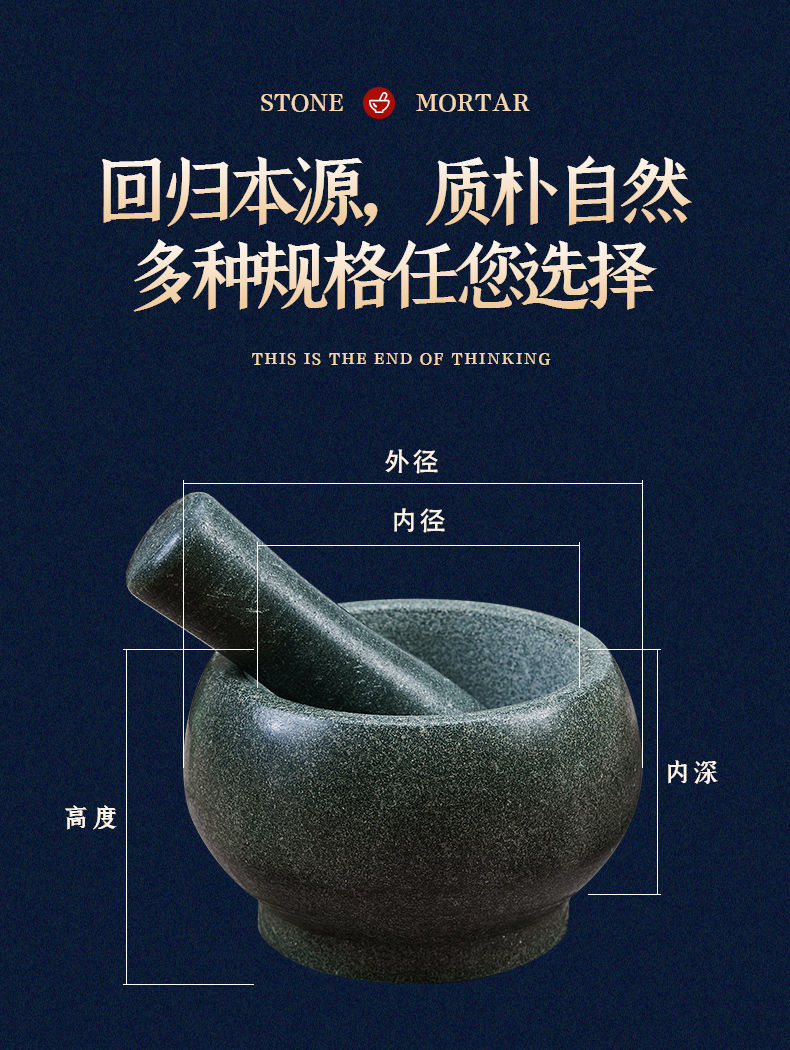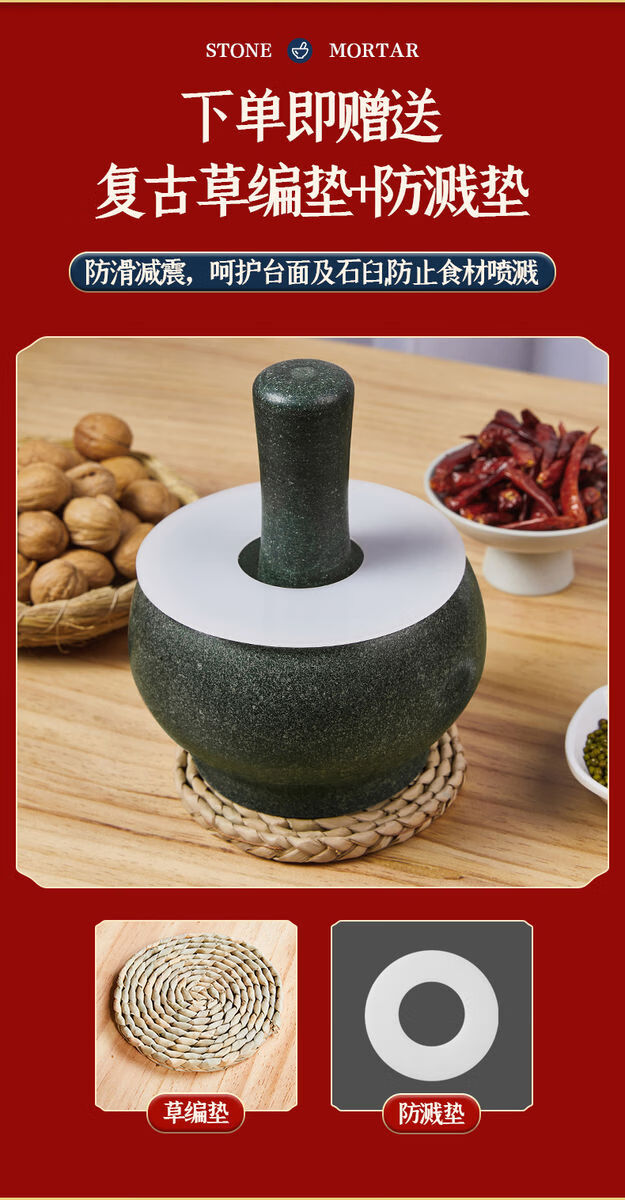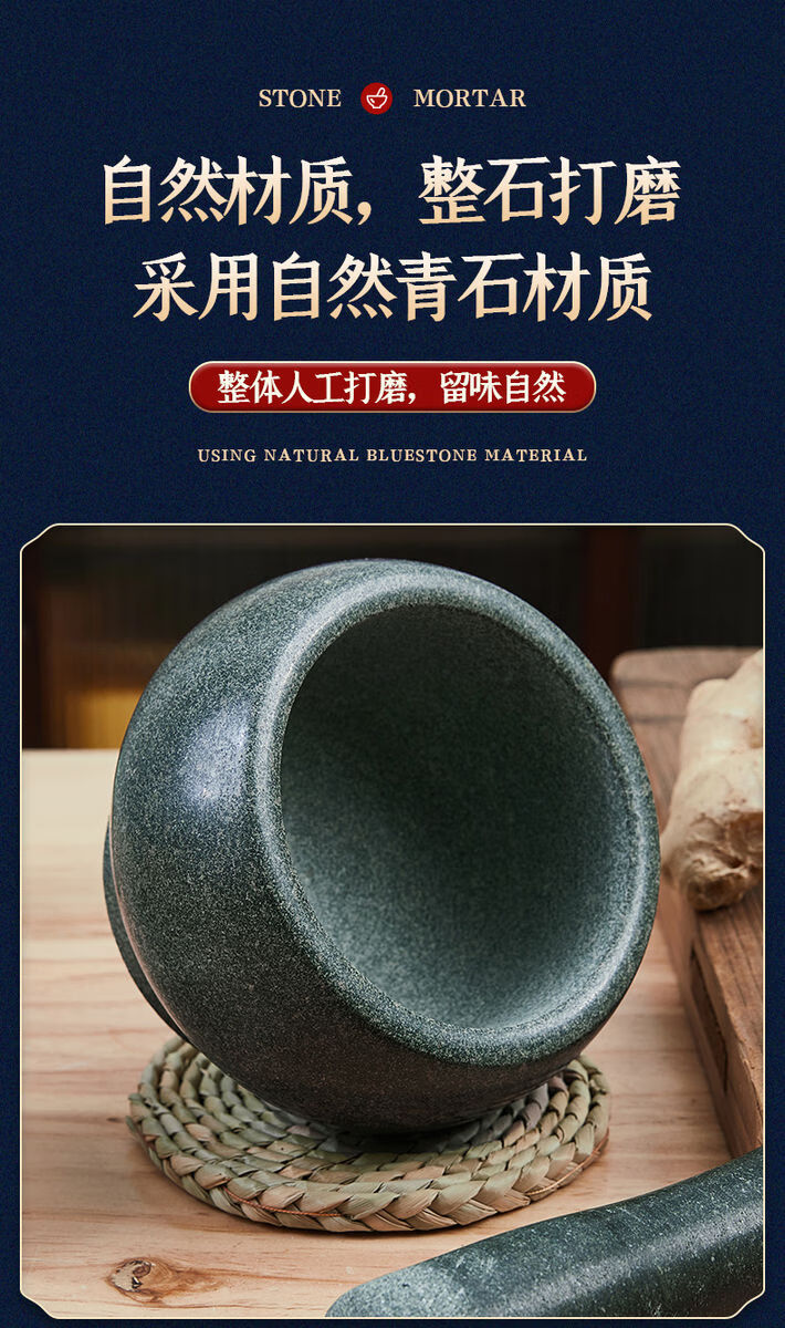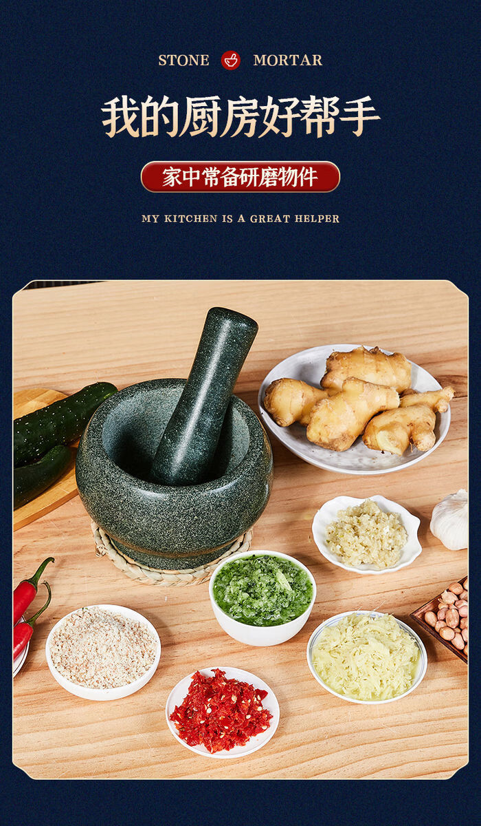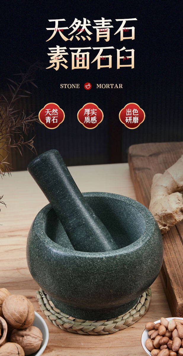 Fantasy bluestone garlic mortar, kitchen garlic masher, garlic masher, medicine jar, garlic peeler, food grinder, small diameter 14CM, comes with anti-splash lid