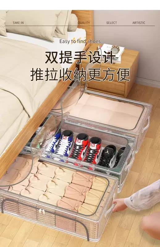 Yusenyi shoe box shoe storage artifact transparent space-saving dust-proof shoe cabinet for storing boots drawer-type bed bottom foldable shoe rack 1 pack (large size) thickened steel frame for stable stacking