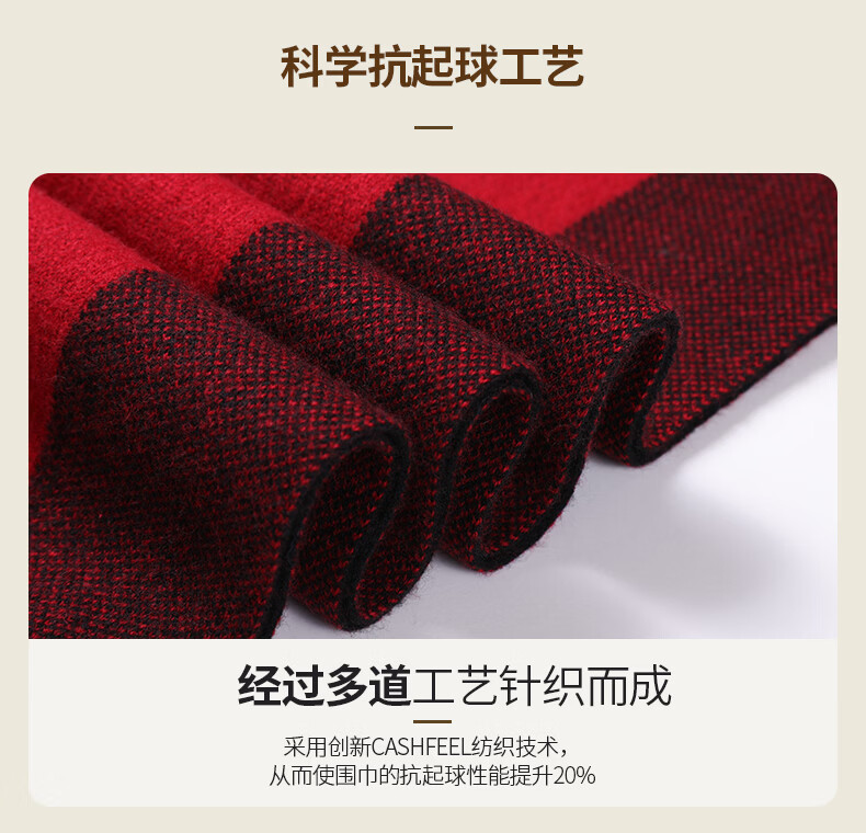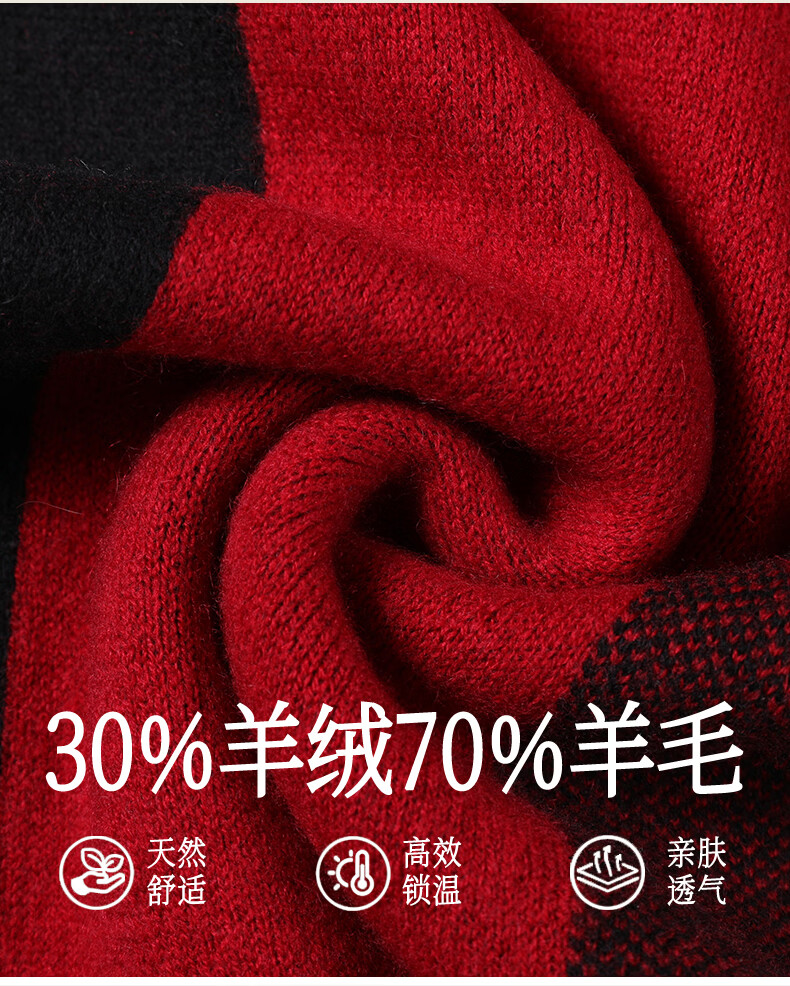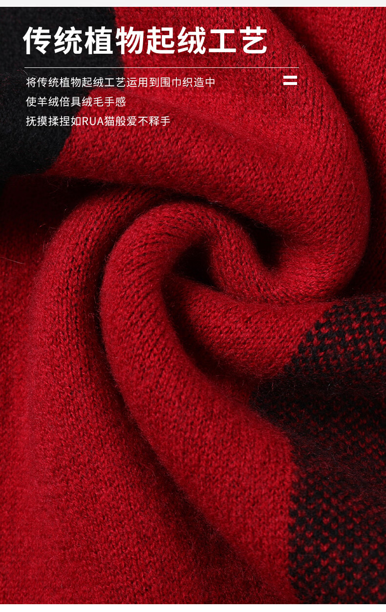 Lieber 2025 new red cashmere scarf men's winter all-match plaid business thickened scarf high-end birthday gift red 180X30CM