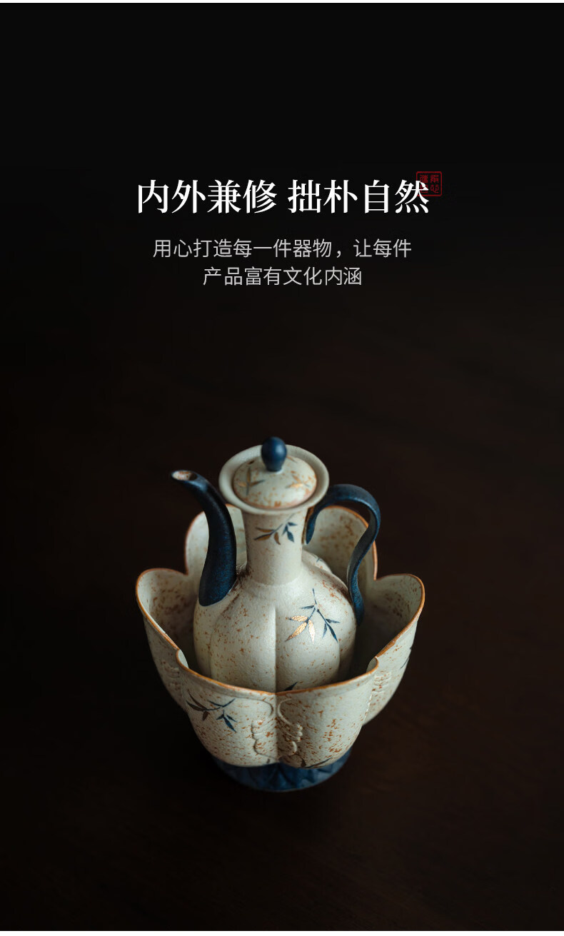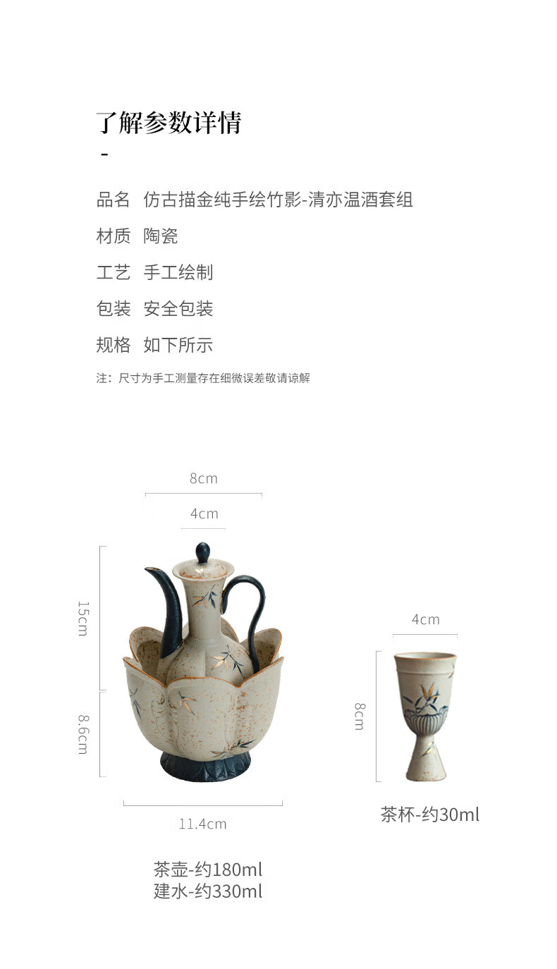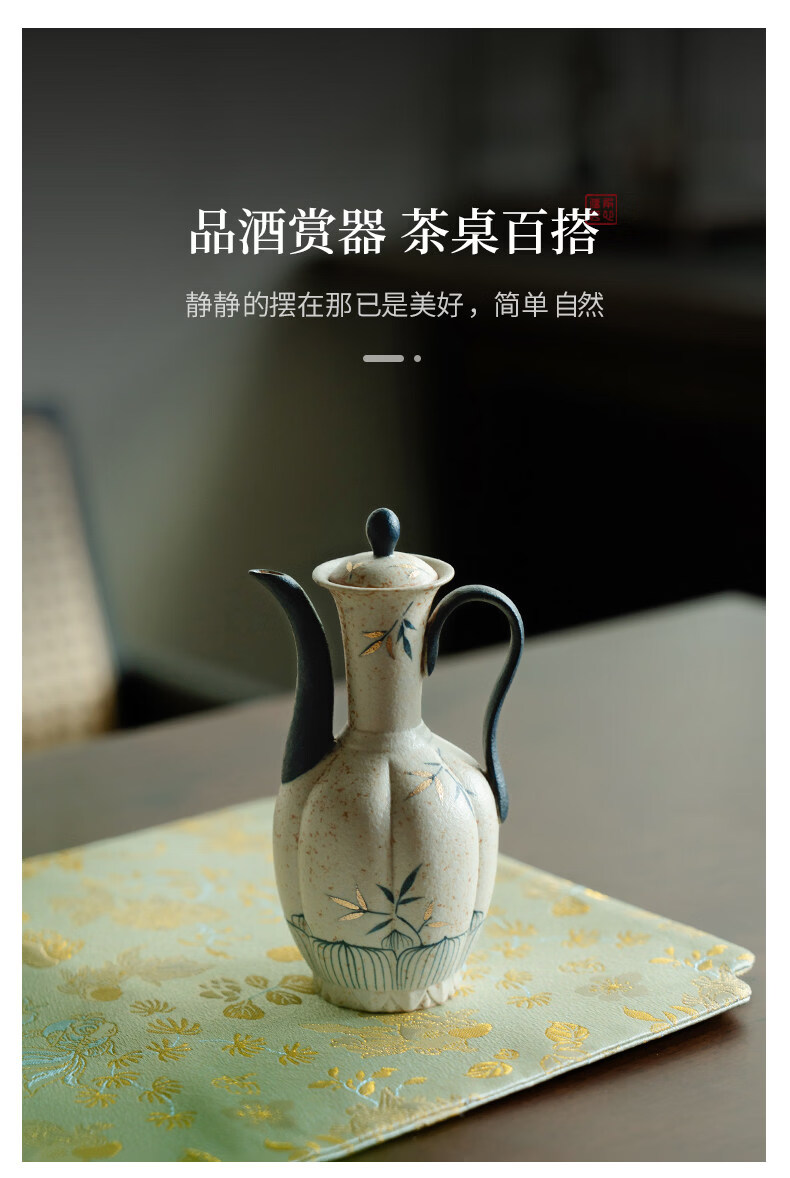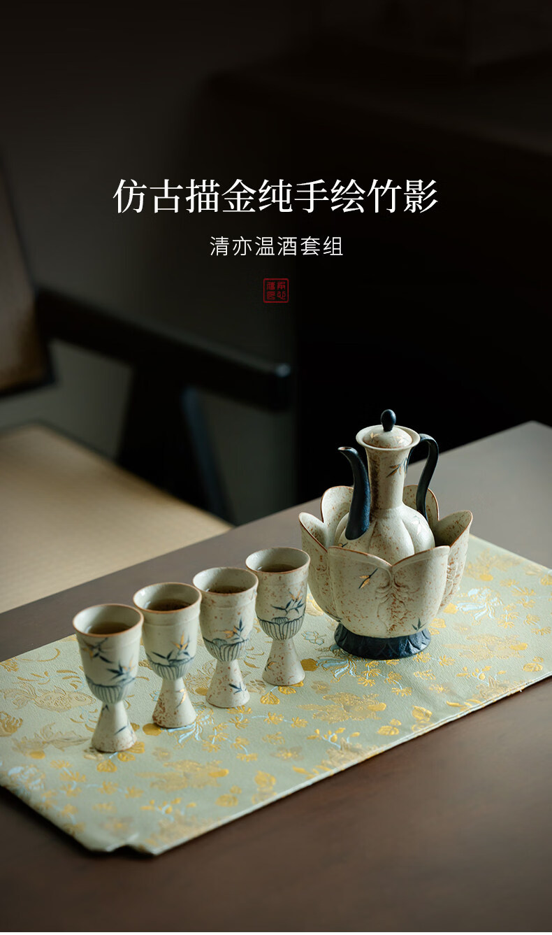 OUOETY imitation Song Dynasty holding pot, retro warm wine pot, blue and white flint red pure hand-painted bamboo shadow small set, household high-end Chinese style, antique gold-painted pure hand-painted bamboo shadow-Qing Dynasty imitation Song Dynasty holding pot