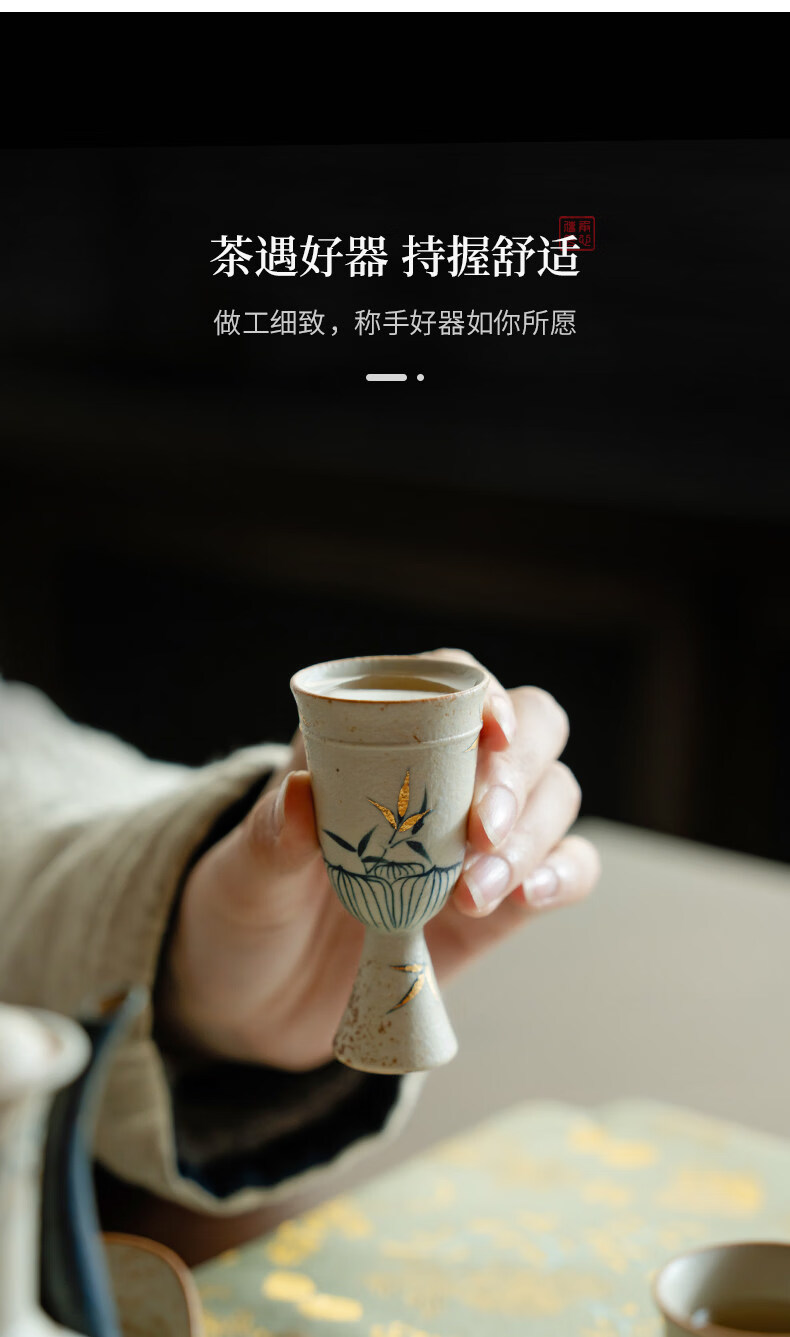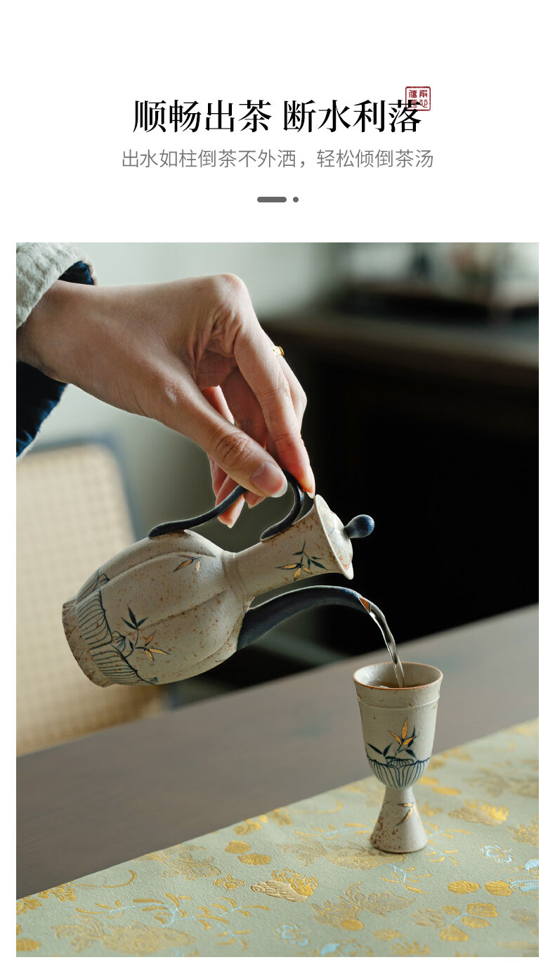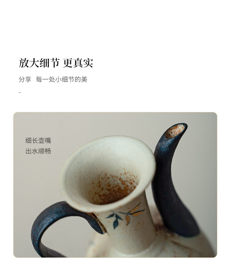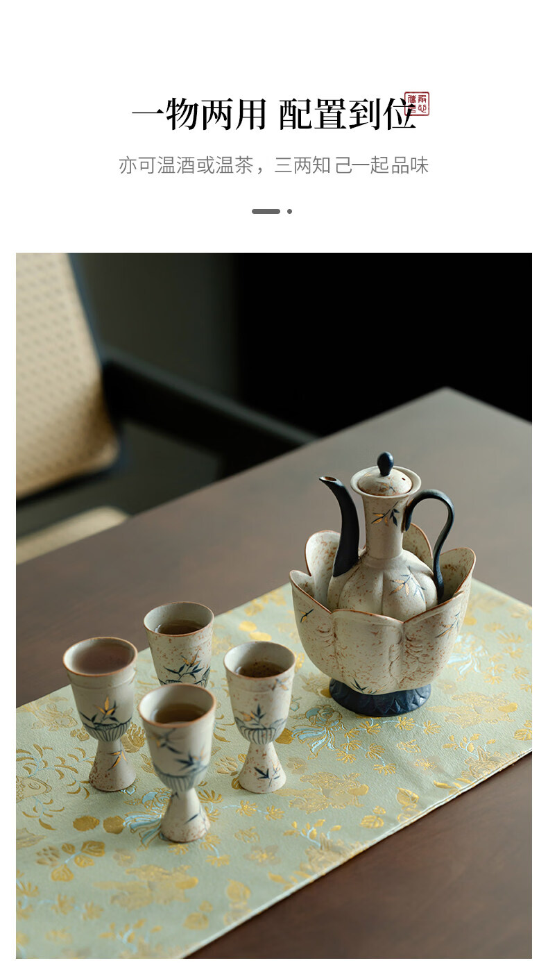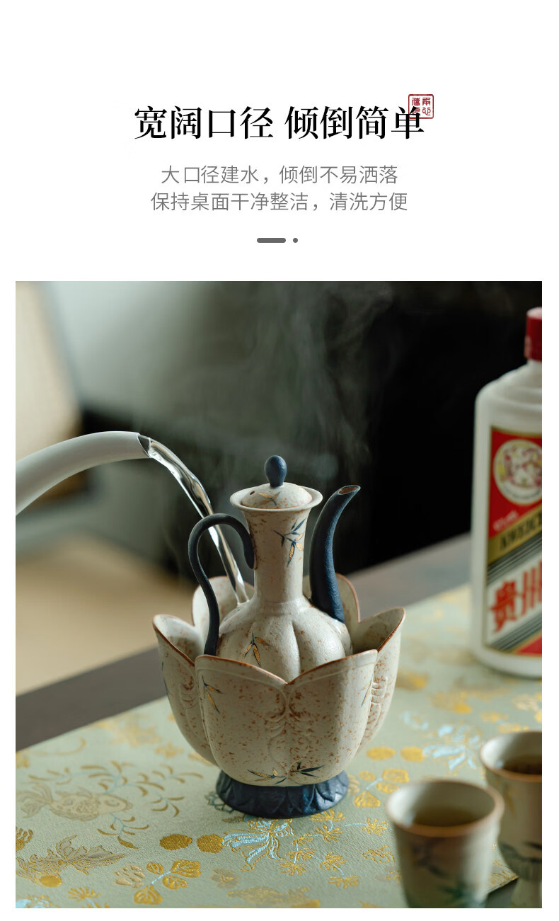 OUOETY imitation Song Dynasty holding pot, retro warm wine pot, blue and white flint red pure hand-painted bamboo shadow small set, household high-end Chinese style, antique gold-painted pure hand-painted bamboo shadow-Qing Dynasty imitation Song Dynasty holding pot
