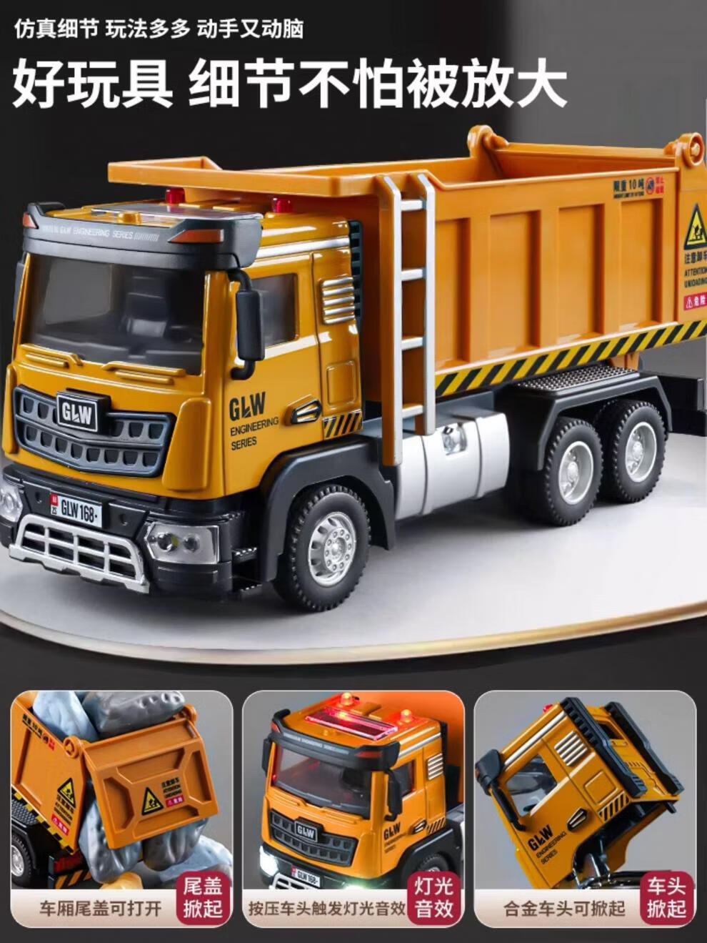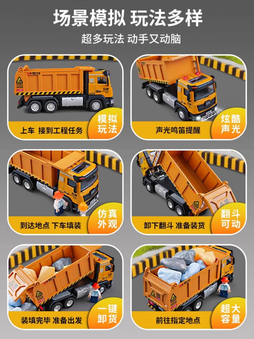 MDUG Children's Alloy Dump Truck Large Toy Car Car Transport Truck Dump Truck Engineering Vehicle Model Boy Medium Sound and Light Large Dump Truck-Yellow