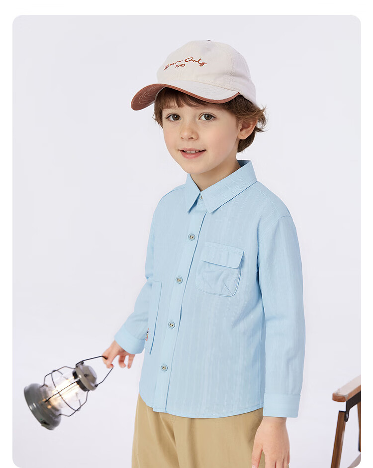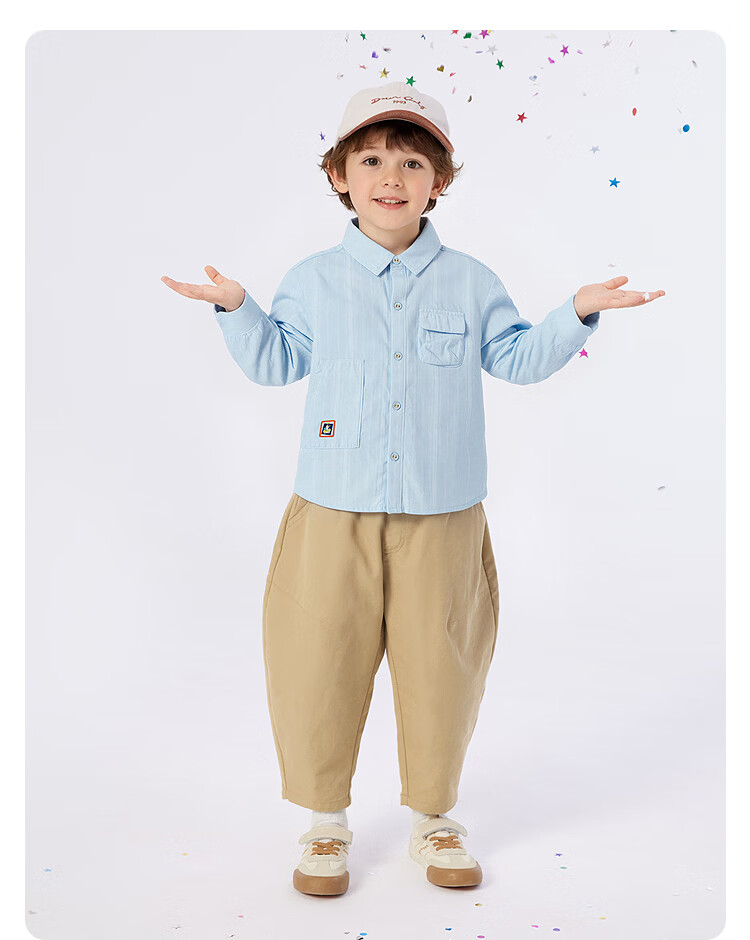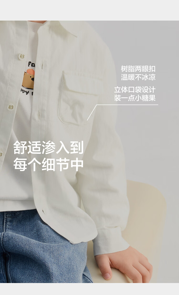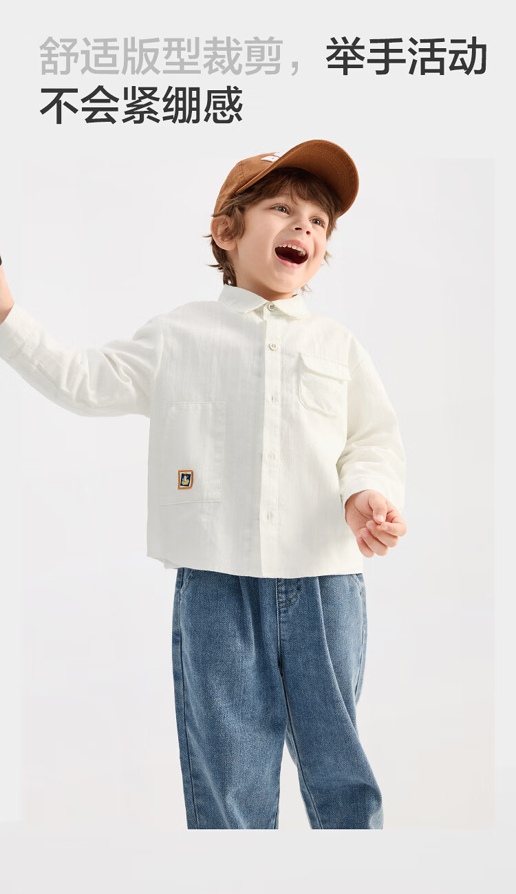 Balabala shopping mall same style children's long-sleeved shirt boys 2026 new spring pure cotton striped top shirt jacket white tone 00311 120