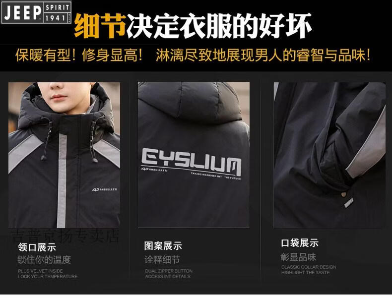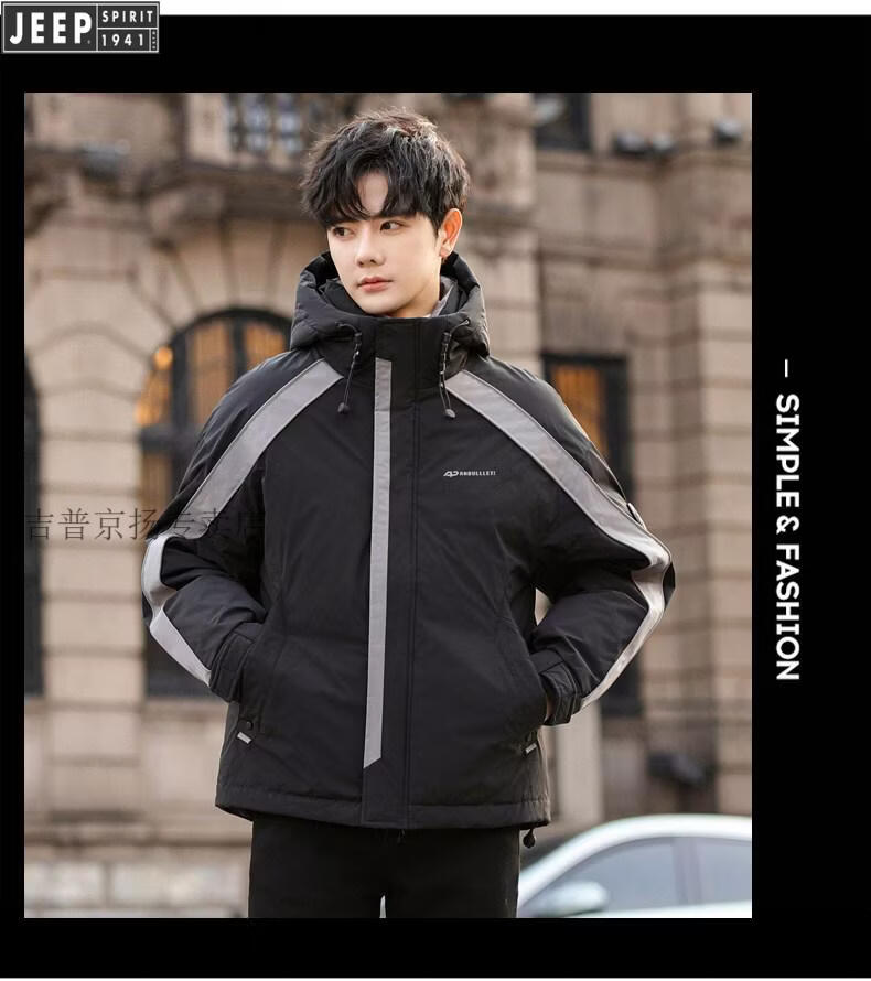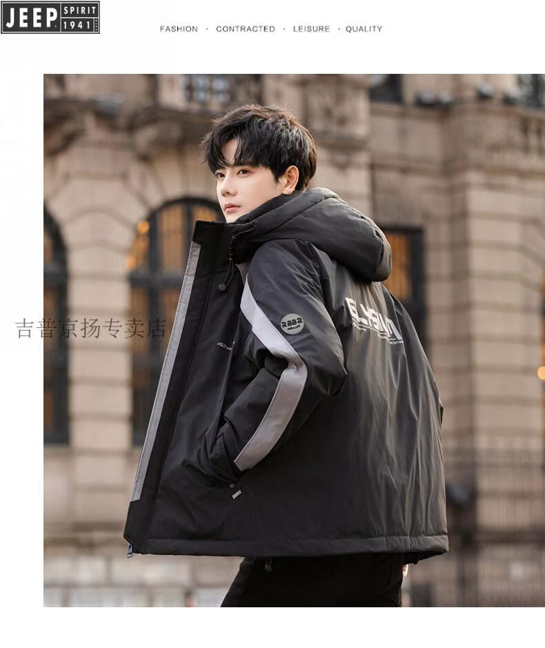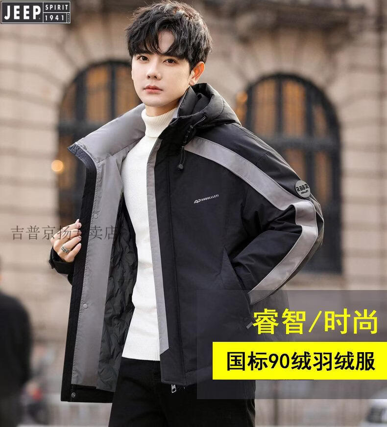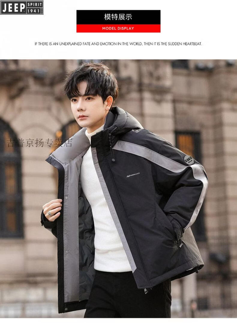 JEEP SPIRIT Jeep International Brand Молодежный легкий короткий пуховик для мальчиков Зимний младшеклассник и старшеклассники Модная корейская версия FF-2688 Черный M