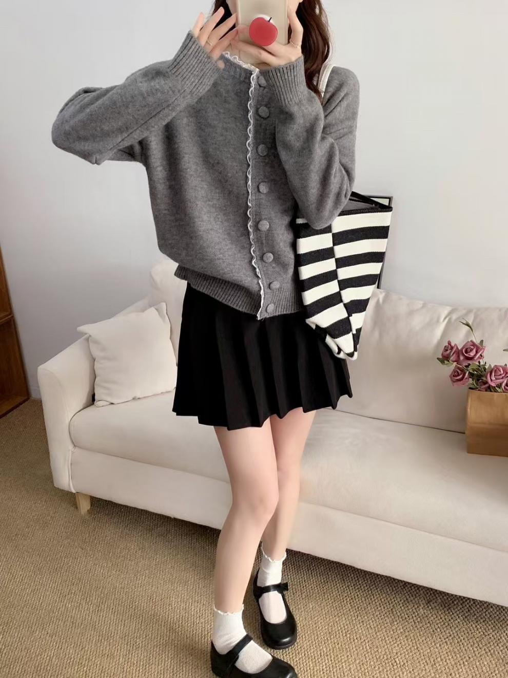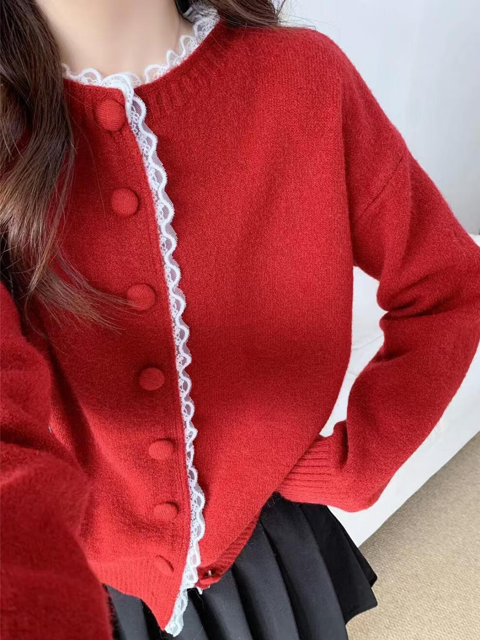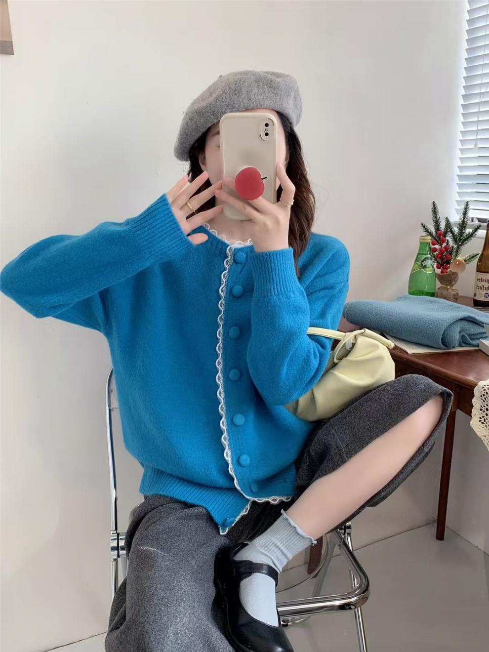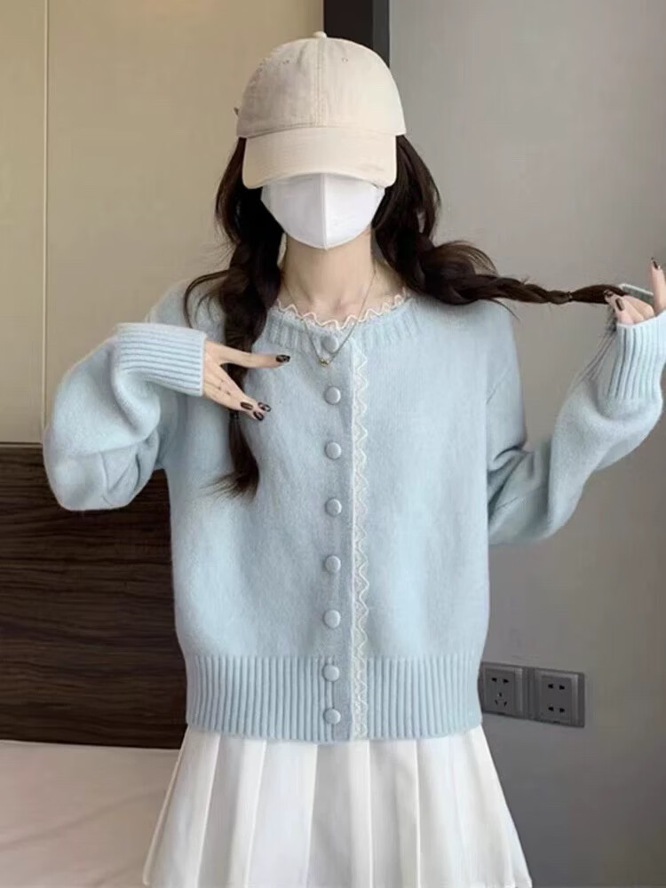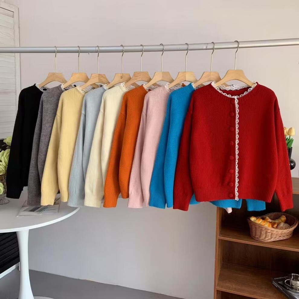 花花公子(PLAYBOY)法式春秋冬蕾丝花边时尚单排扣温柔风宽松甜美针织毛衣开衫外套女 浅黄色 S 建议70-95Jin Jin等于0.5千克