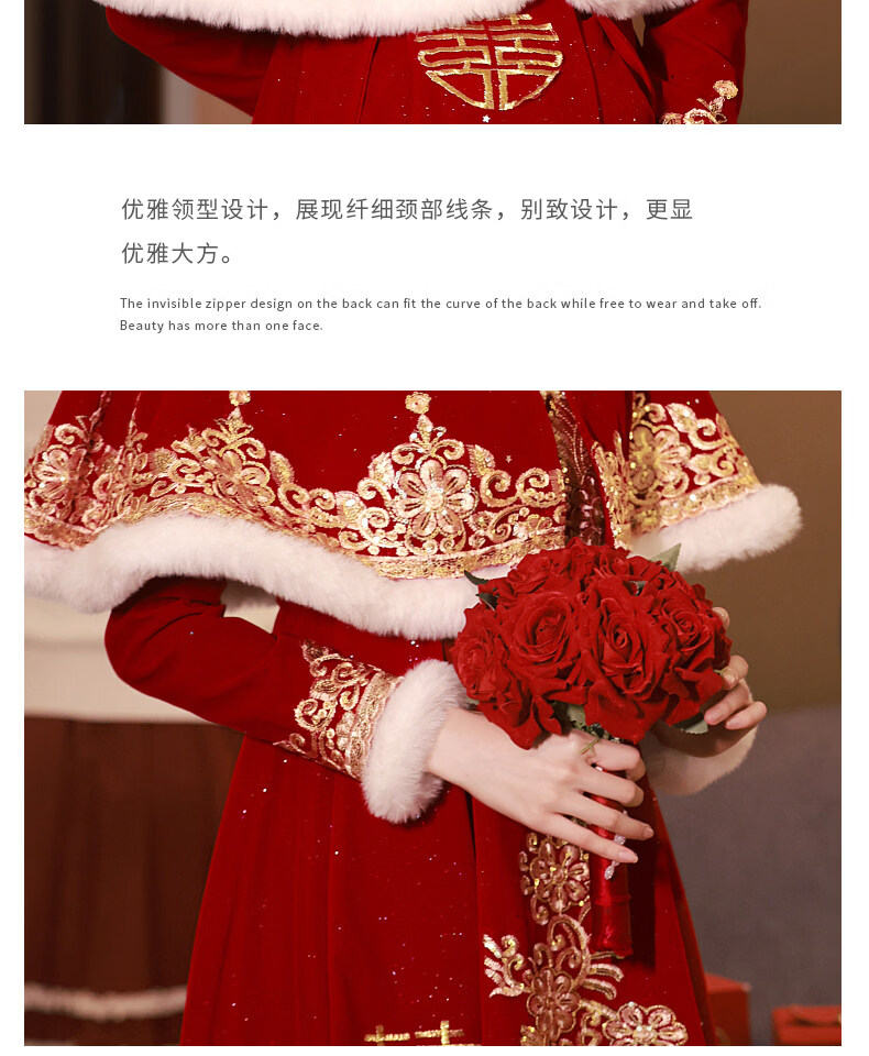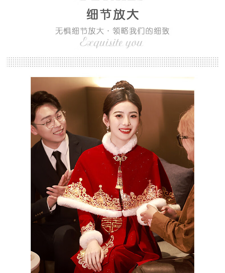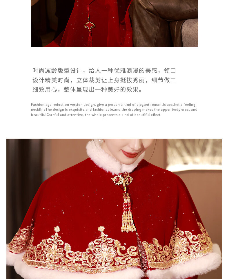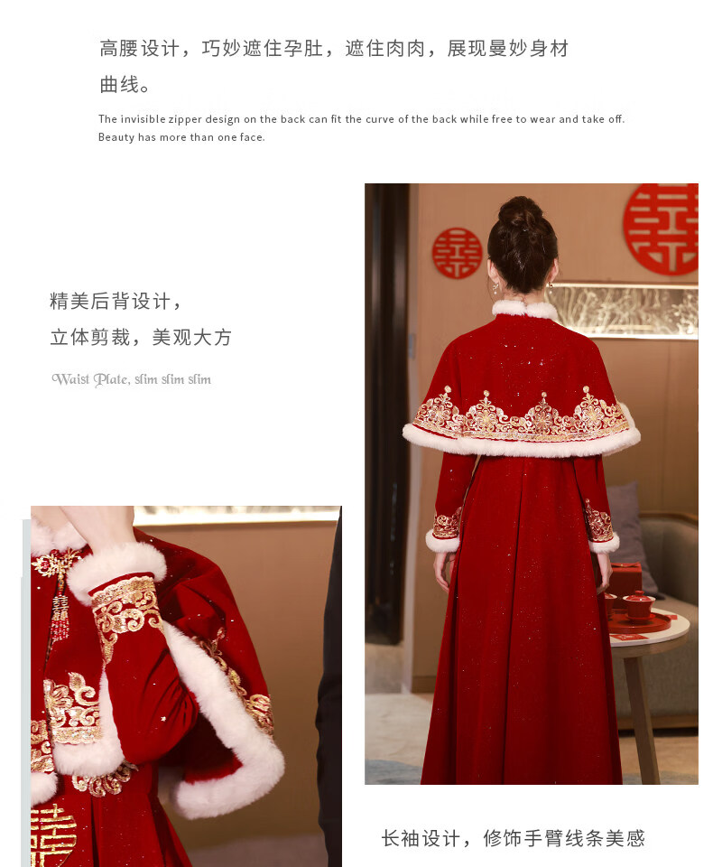 Shijanu Pregnant Women's Toast Wear Bride 2025 New Chinese Style Cheongsam Wedding Engagement Dress Large Size Fat mm Xiuhe Autumn and Winter Burgundy F0189-With Shawl (shawl detachable)_Length 138cm or so XS