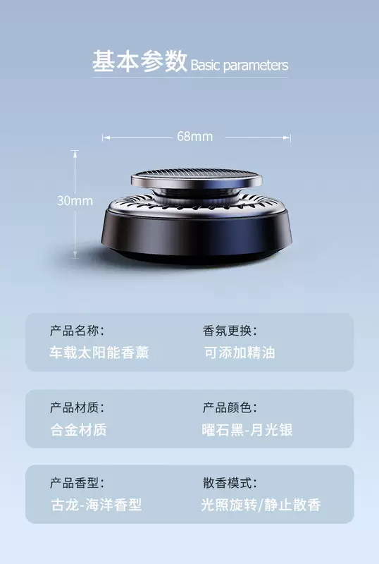 Yusenyi Car Aromatherapy Car Perfume Long-lasting Light Fragrance Car Ornaments Men's Special High-end Solar Accessories Internet Celebrity Obsidian Black Top Cologne-Ocean Rotating Fragrance Removes Aldehydes and Deodorizes 1g