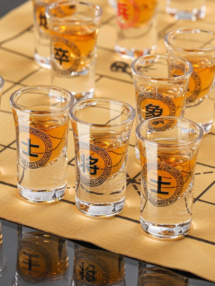 Chinese chess wine glass set Chinese chess wine glass set white wine cup home chessboard small wine glass KTV foreign wine cup Chinese chess 15ml foreign wine bureau set plus 2 storage racks