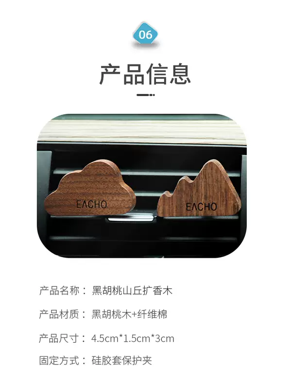 Yusenyi Car Diffuser Aromatherapy Perfume Car Interior Decoration Air Conditioning Vent Decorative Ornaments Hill Walnut Expansion Fragrance Wood (Ancient Mountains) A hill will give you 5ml of blue wind chime essential oil