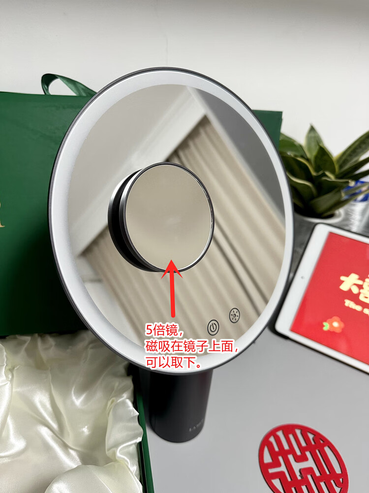Espejo cosmético Espejo de maquillaje con luz LED Espejo de escritorio Celebridad de Internet Espejo de maquillaje inteligente Caja exterior de recuerdo de regalo + Espejo inteligente gris + Bolsa de compras + Espejo 5x
