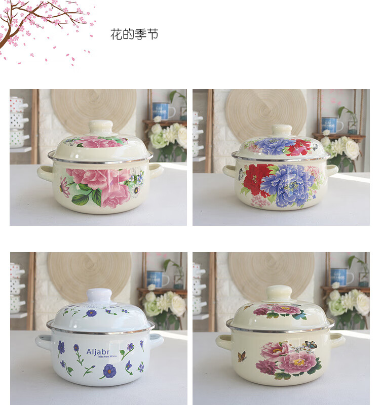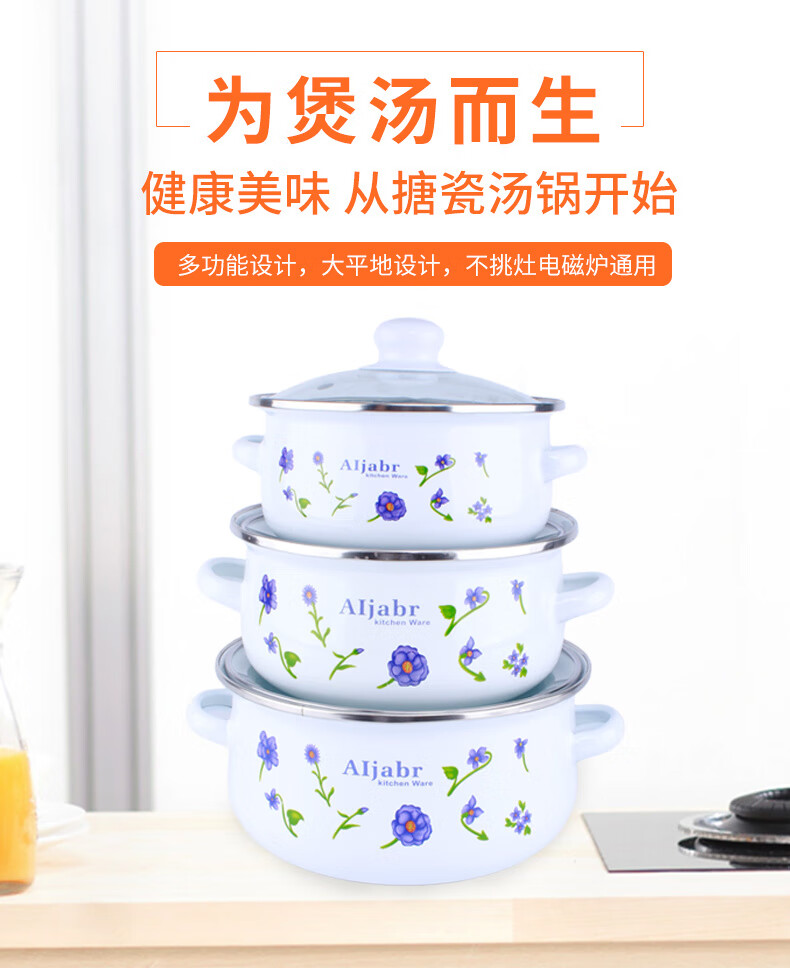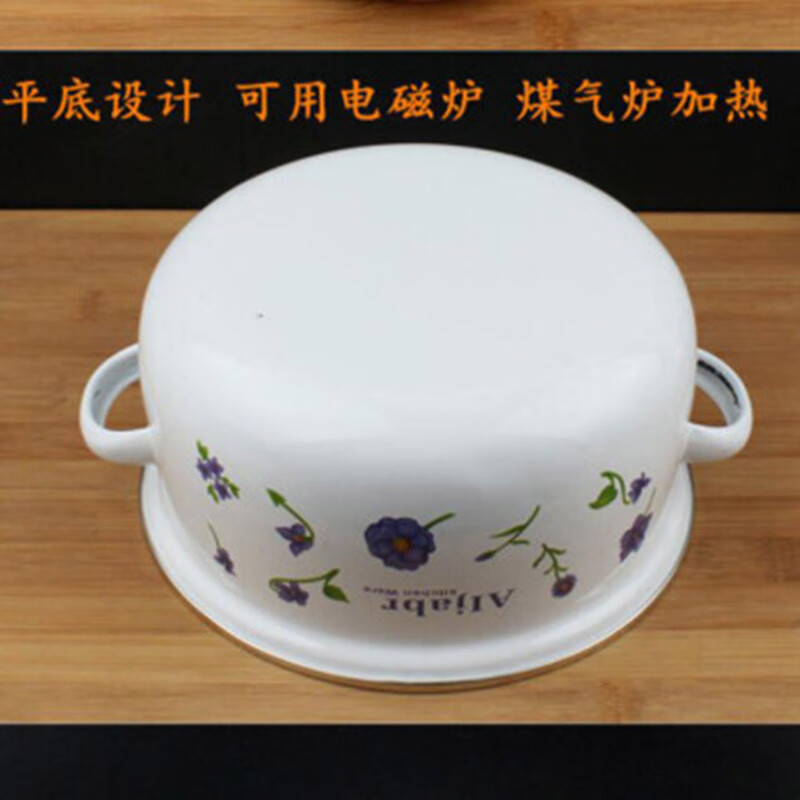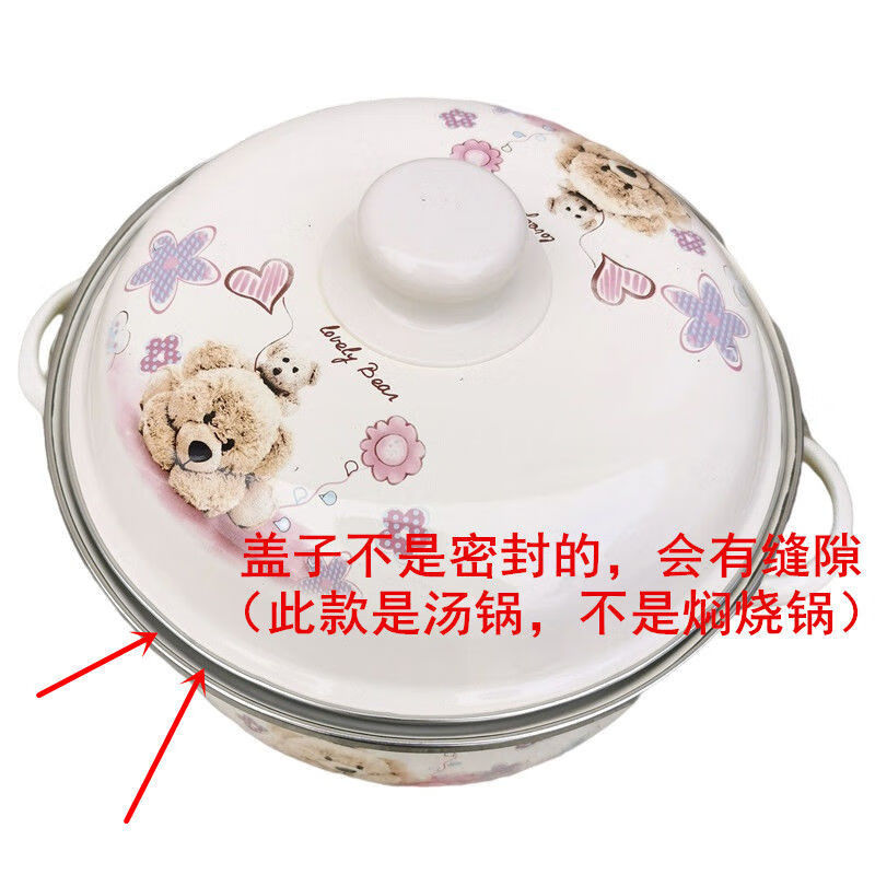 Pupan thickened enamel soup basin household double-ear pot with lid instant noodle bowl stew soup pot induction cooker heating soup bowl stew medicine pot lucky pot thickened 16cm