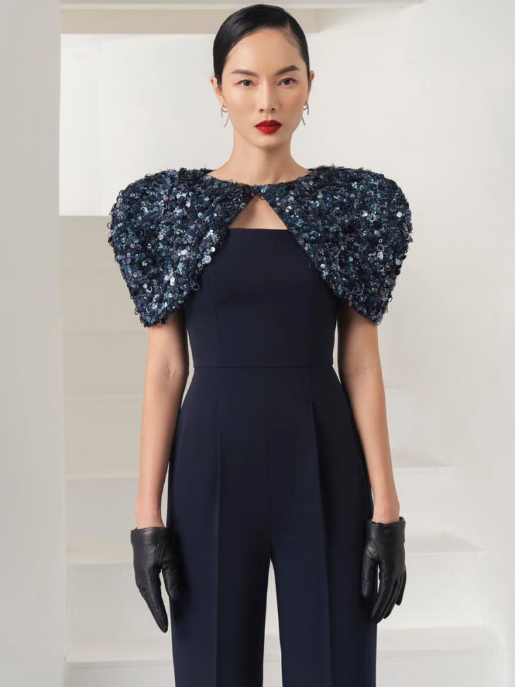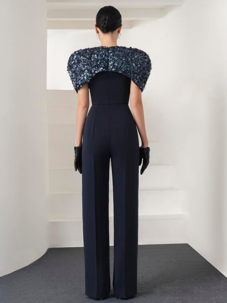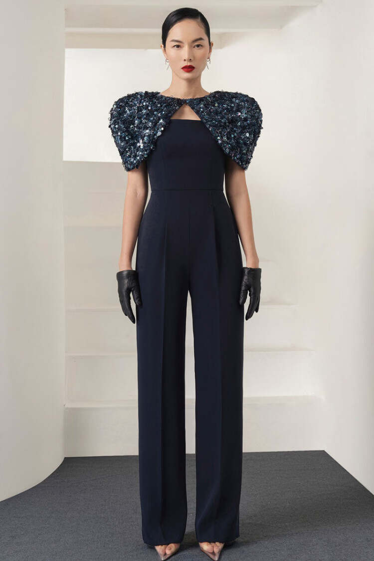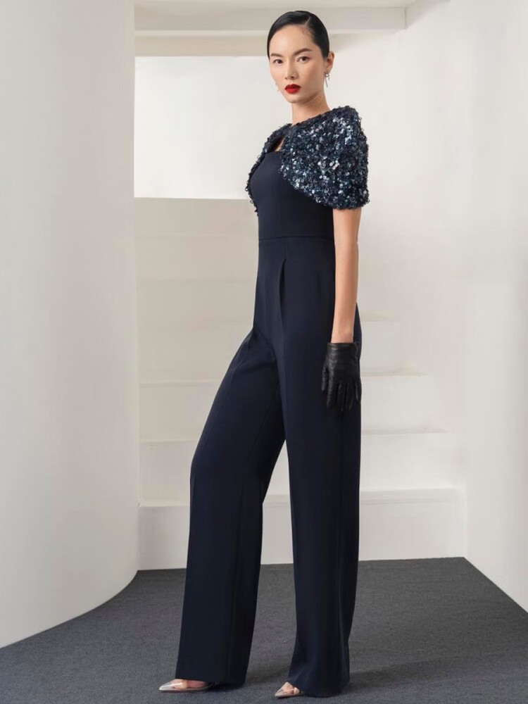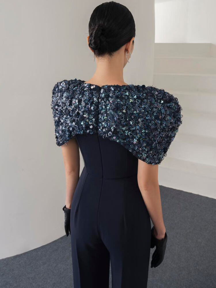 LISM Designer International Light Luxury Brand Niche Boutique Tube Top Dark Royal Blue Showing High Aura Queen Style Straight Leg Pants Dark Blue S