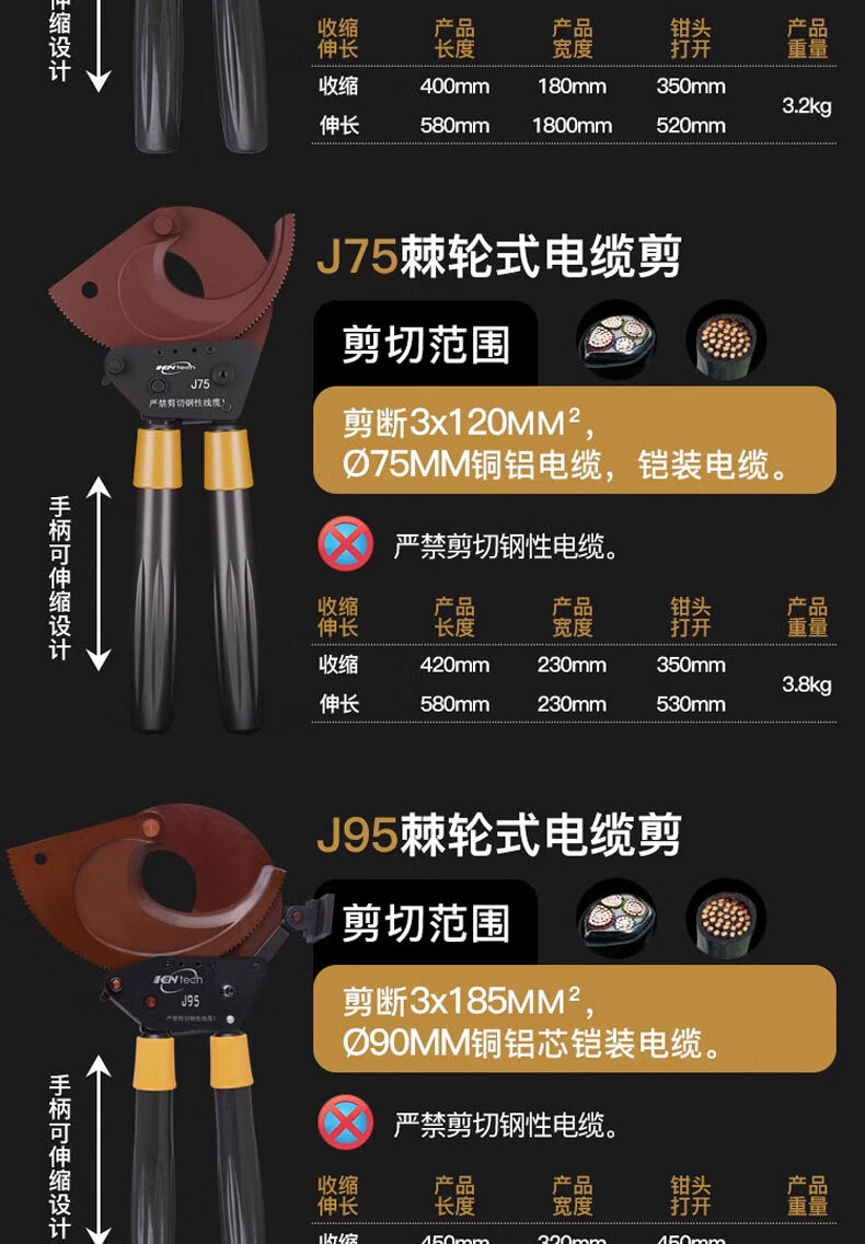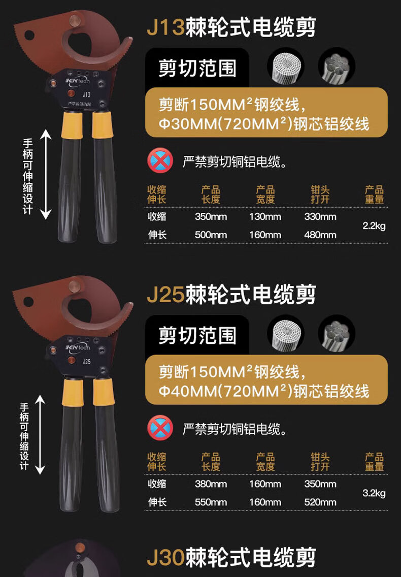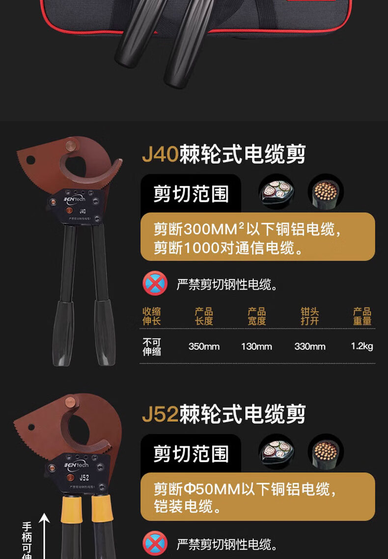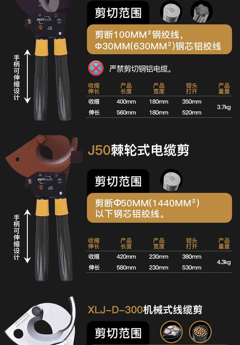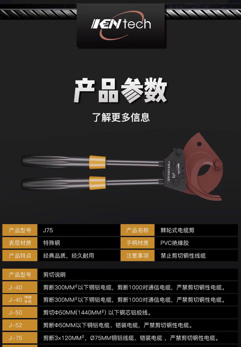 Cable cutter ratchet knife J40527595100 manual gear steel strand cutting wire pliers copper aluminum cable J30 replaceable steel strand tool kit