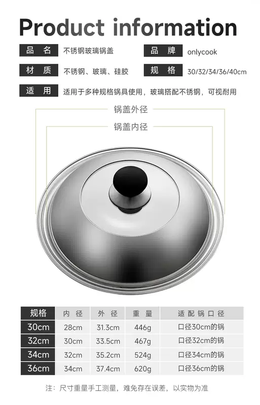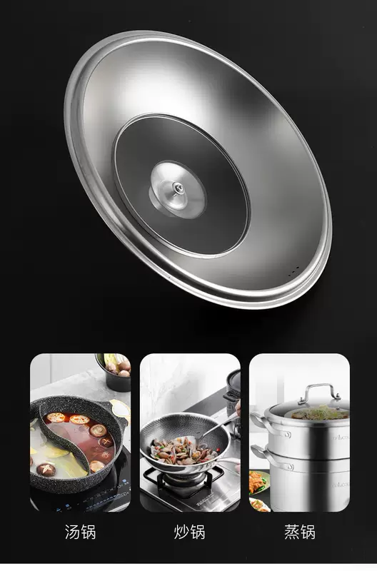 Yusenyi universal pot lid 30 32 34 36 40cm transparent visible lid stainless steel household wok wok steamer stainless steel visible pot lid 32cm (applicable to pots with a diameter of 32cm)