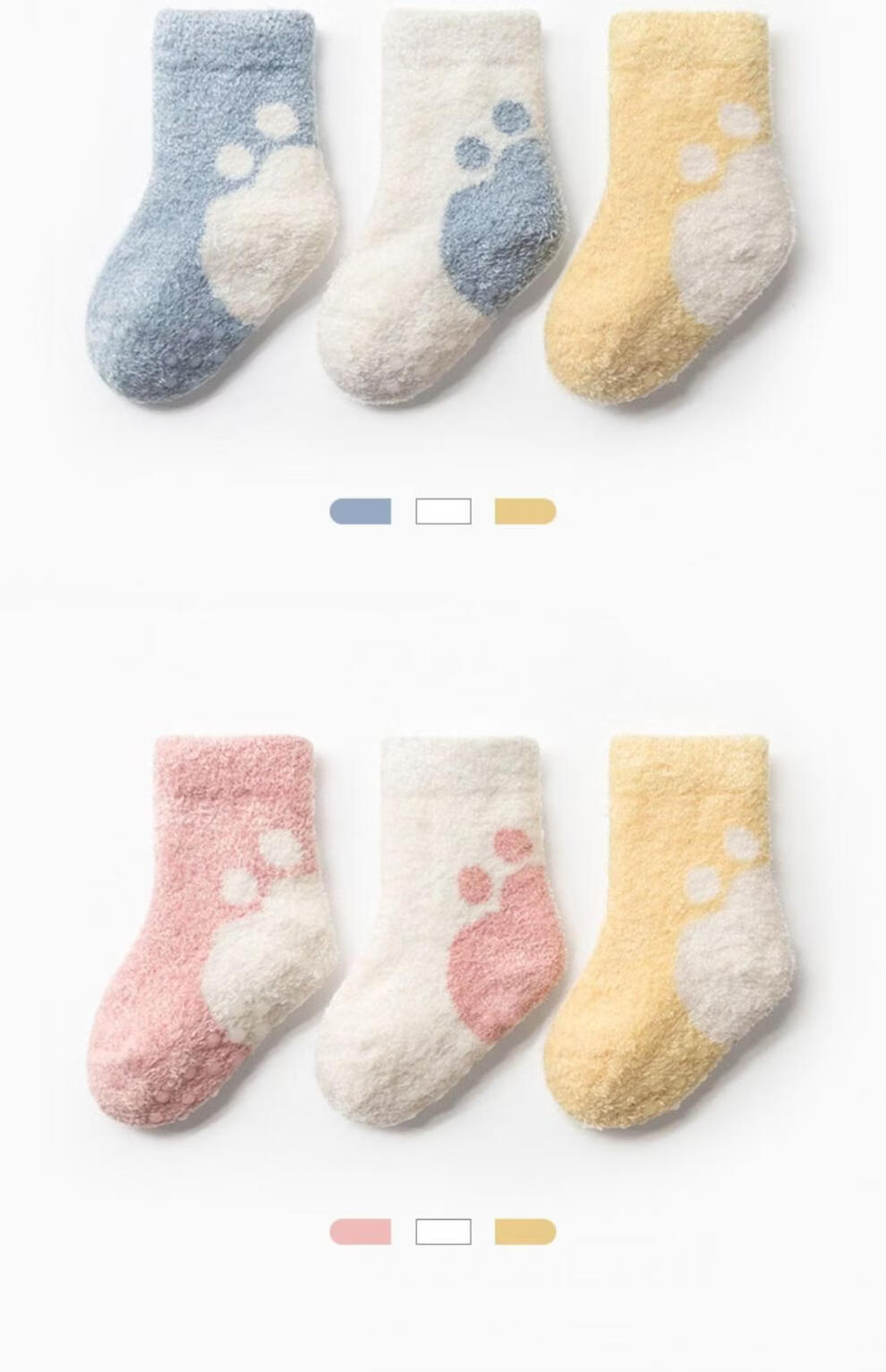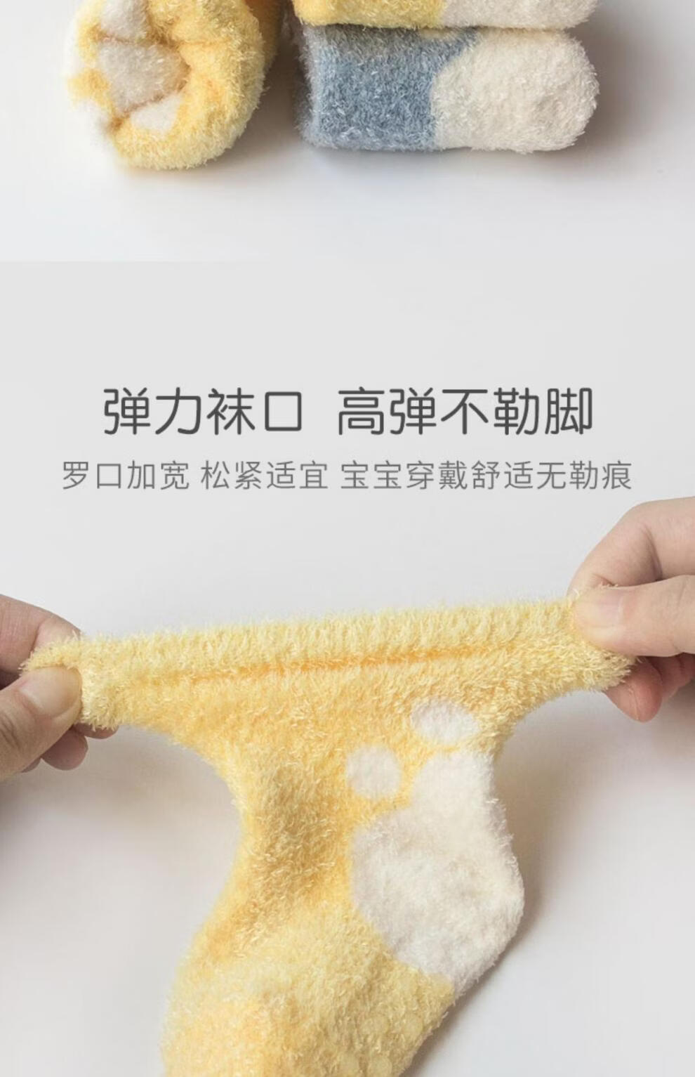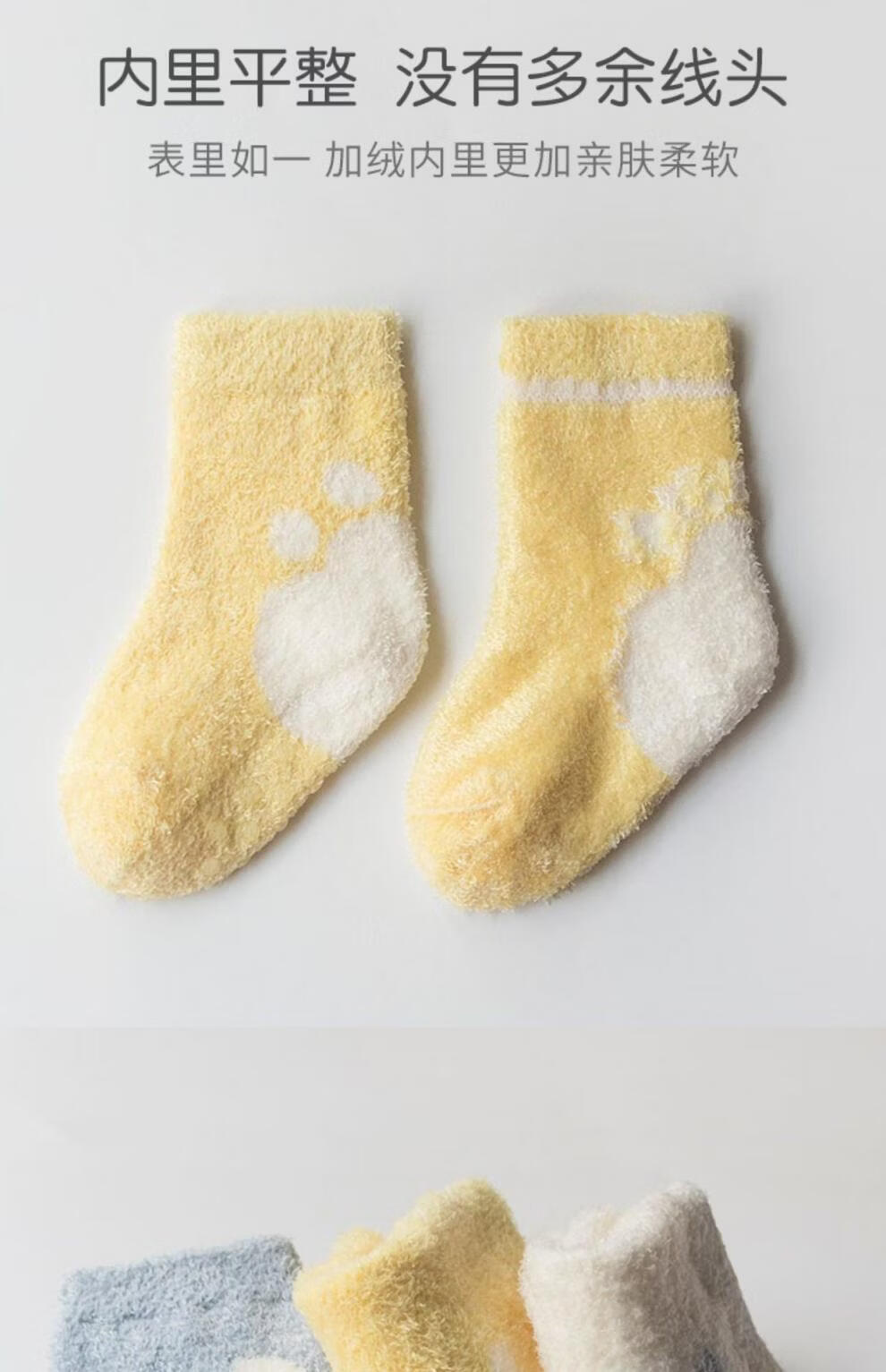 MiiOW baby socks, thickened and velvet warm in winter, newborn babies from 0 to March, coral velvet autumn and winter children's mid-calf socks, down gauze men's clothing, autumn and winter style, 3 pairs, one size fits all, 0-6 months (recommended foot length 6-8CM)