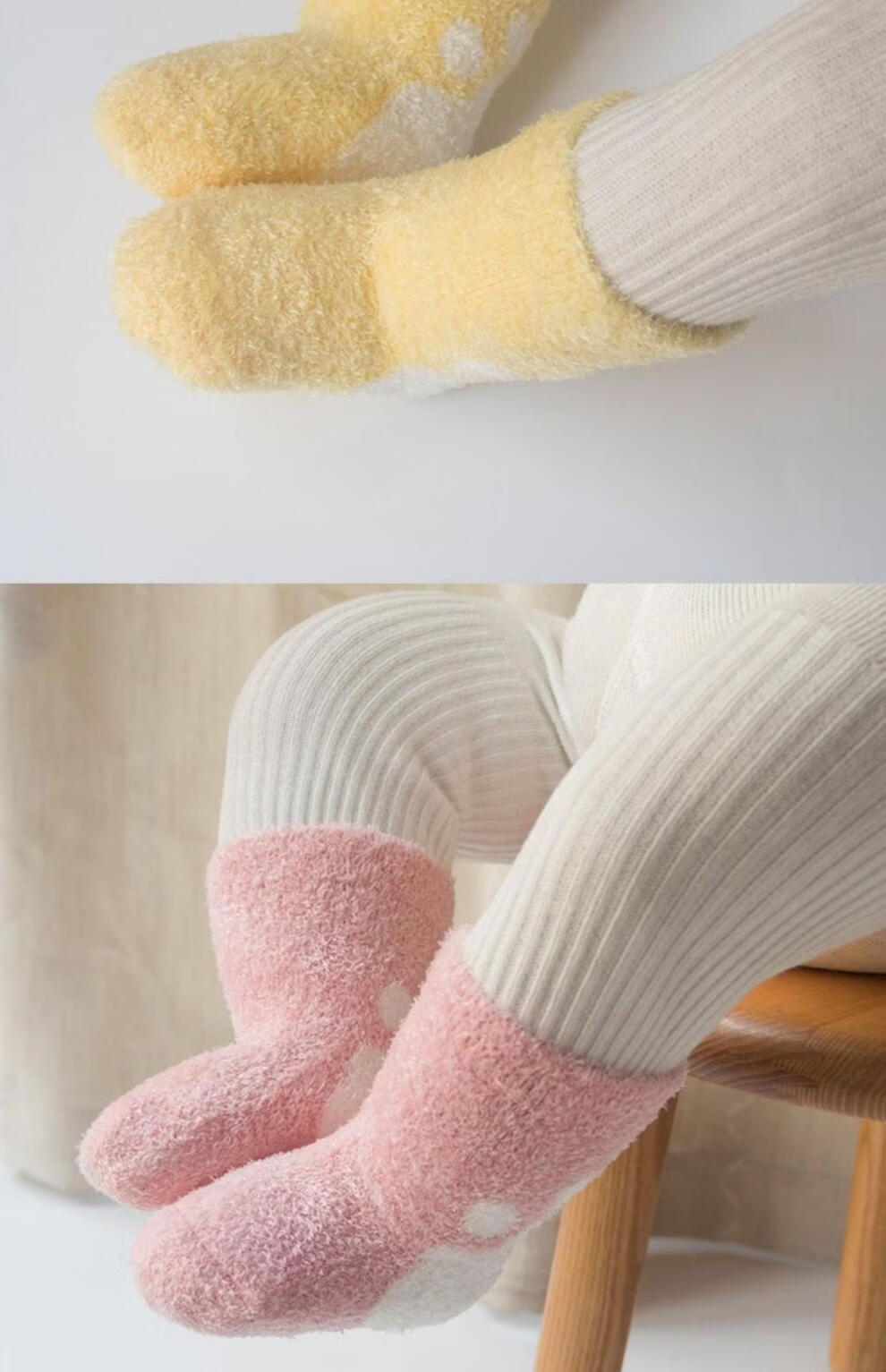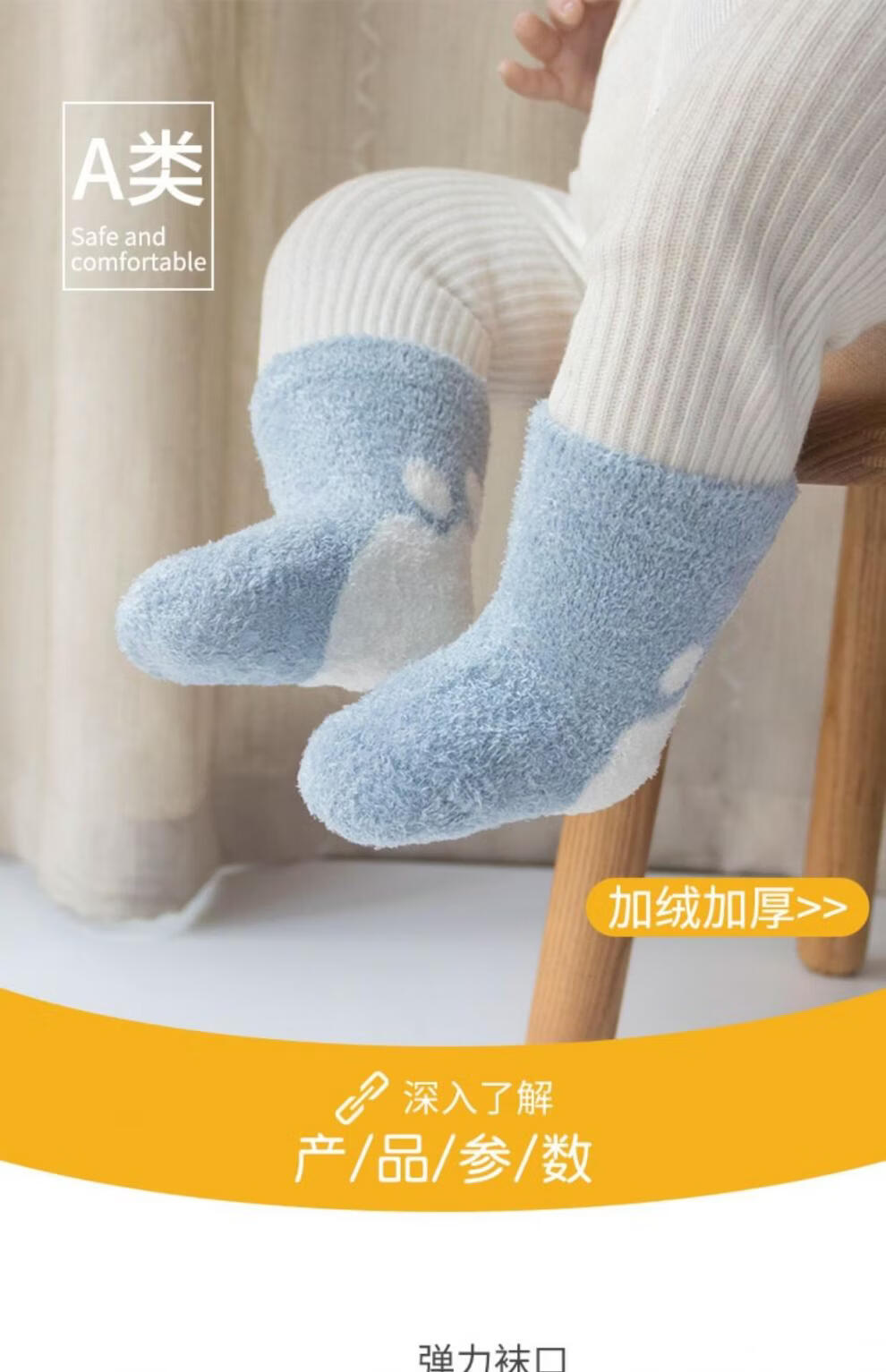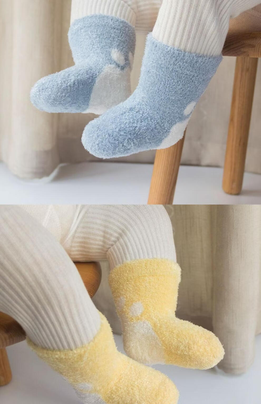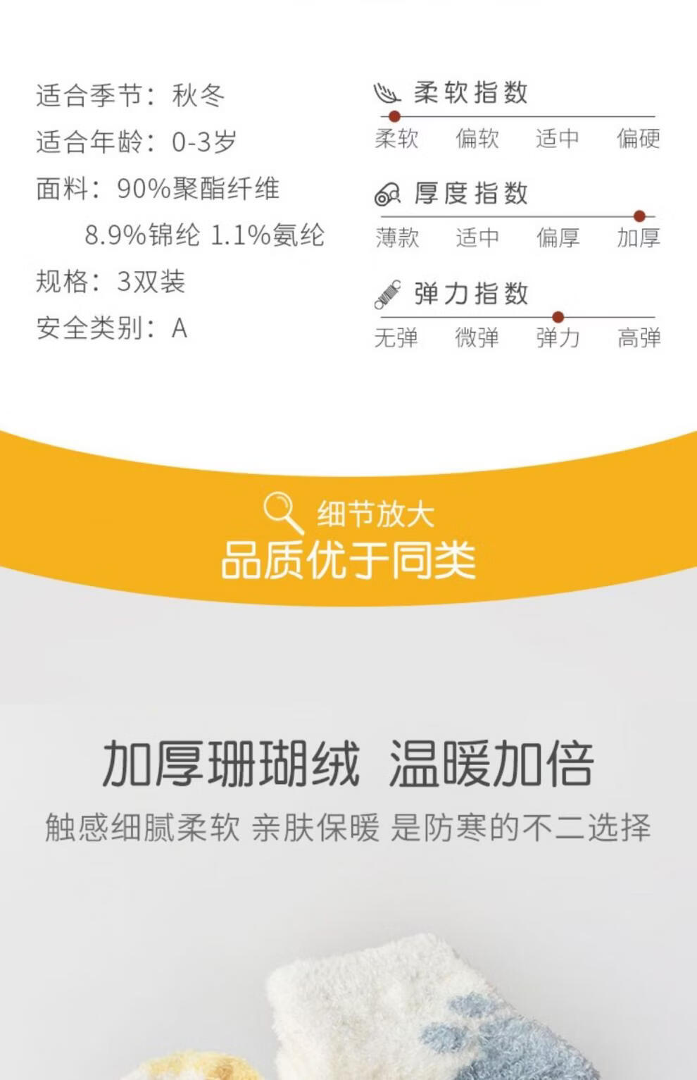 MiiOW baby socks, thickened and velvet warm in winter, newborn babies from 0 to March, coral velvet autumn and winter children's mid-calf socks, down gauze men's clothing, autumn and winter style, 3 pairs, one size fits all, 0-6 months (recommended foot length 6-8CM)