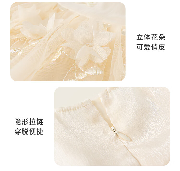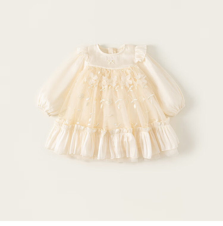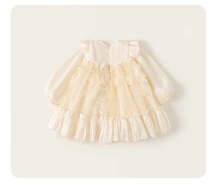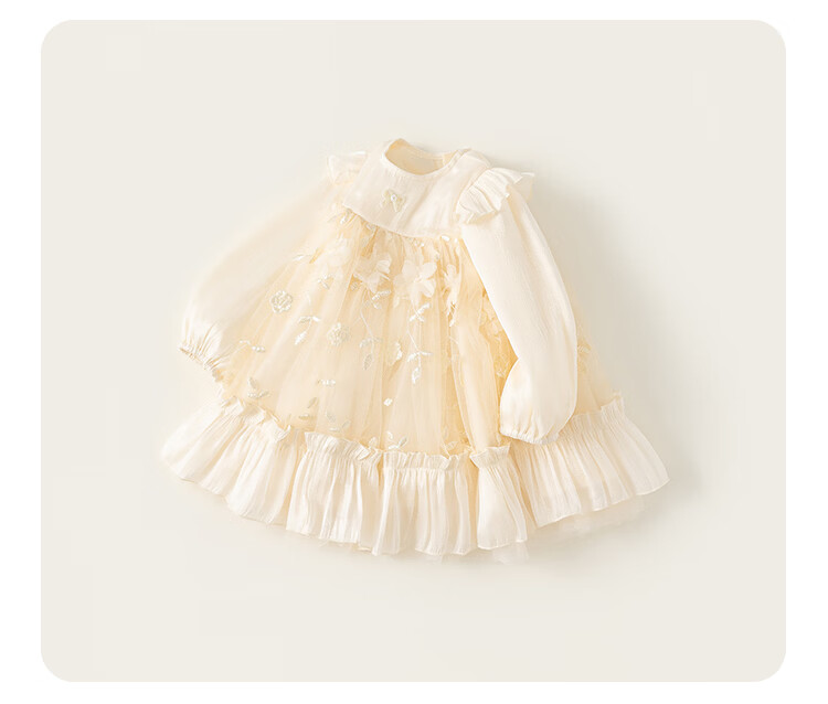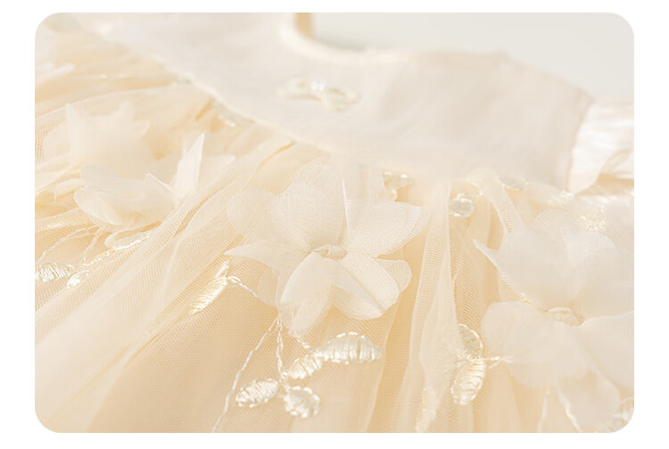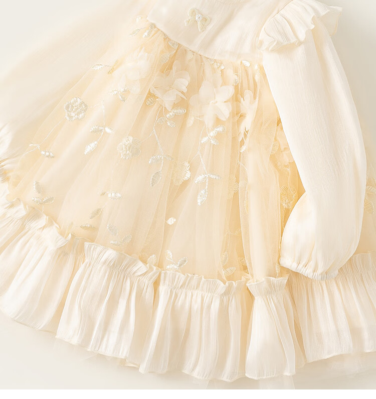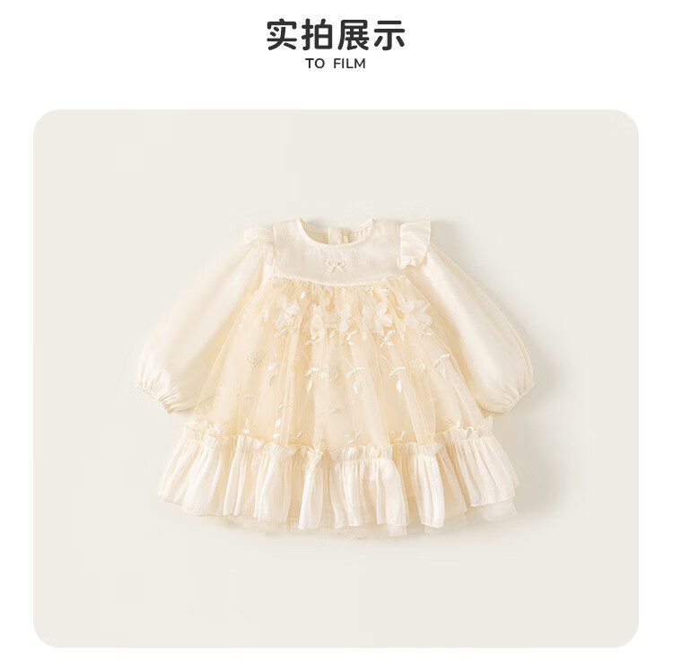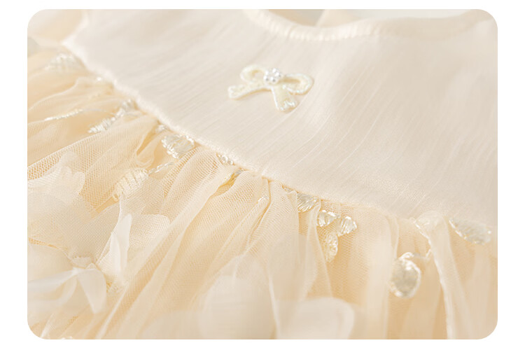 INSBOBO Girls Dress 2026 Spring New Children's Princess Dress Girls Good-looking Gauze Dress Western Style Skirt Apricot 80