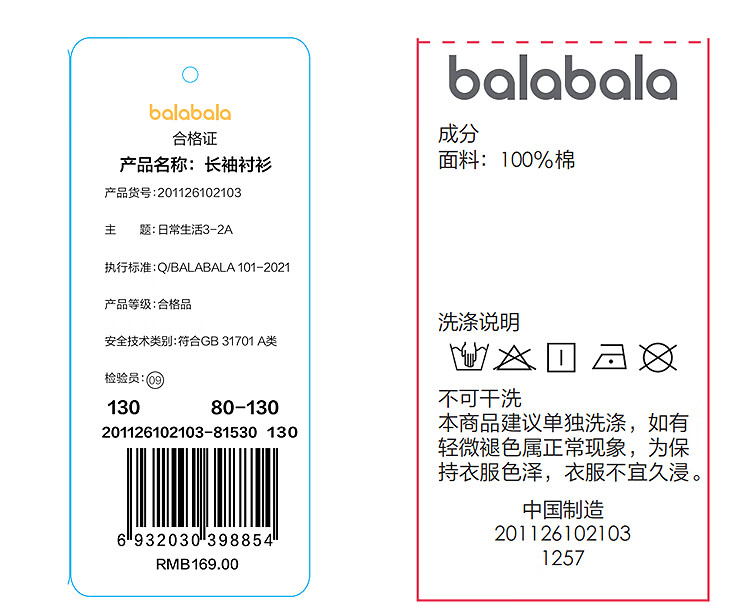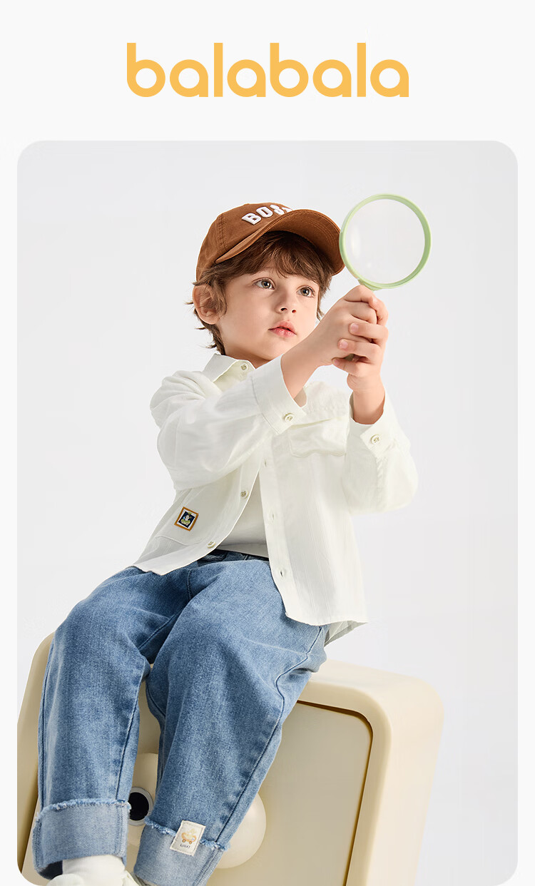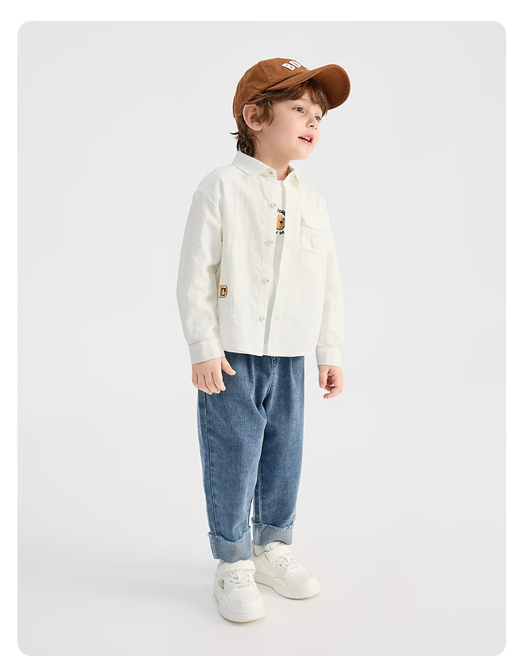 BALABALA shopping mall same style BALABALA children's long-sleeved shirt boys 2026 new spring pure cotton striped top white tone 00311 80