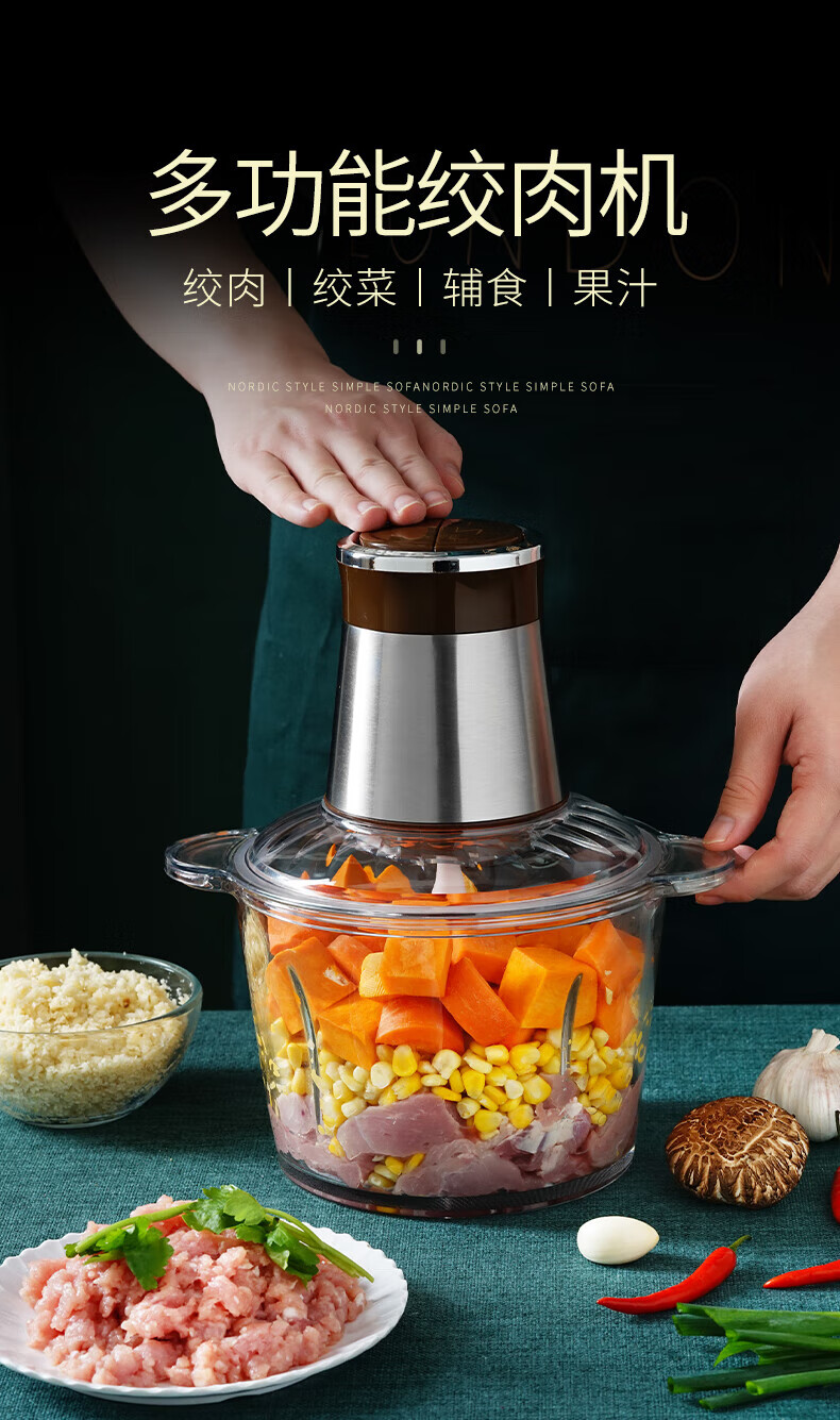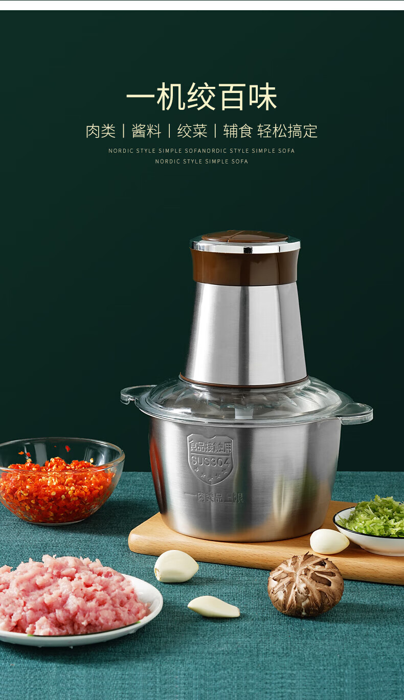 JM Garlic God Electric Commercial Garlic Miner Pull and Cut Pressed Garlic Garlic Crusher Garlic Machine Household Ginger Garlic God 3L Minced Meat and Vegetables 300W2 Double Stainless Steel