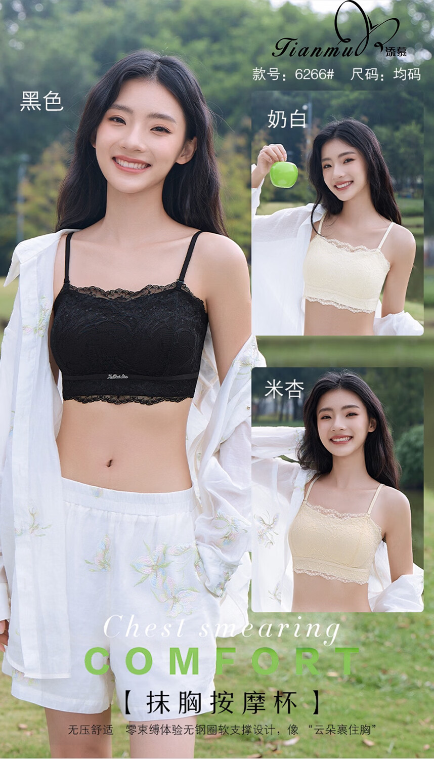 Timber strap tube top massage fixed cup summer thin lace lace beautiful back bra skin-friendly underwear women's versatile fashion black tube top massage cup one size recommended 90-130 Jin Jin equals 0.5 kg