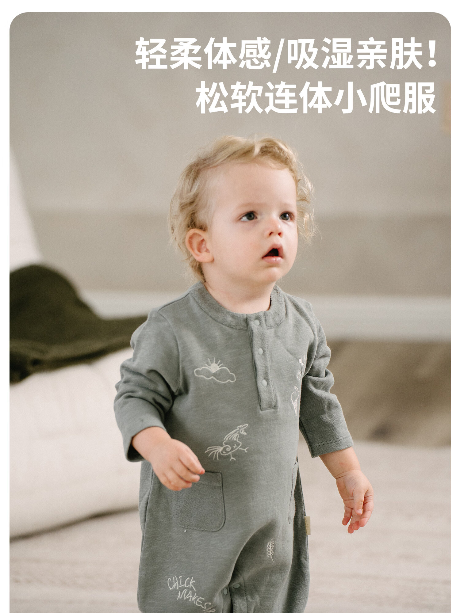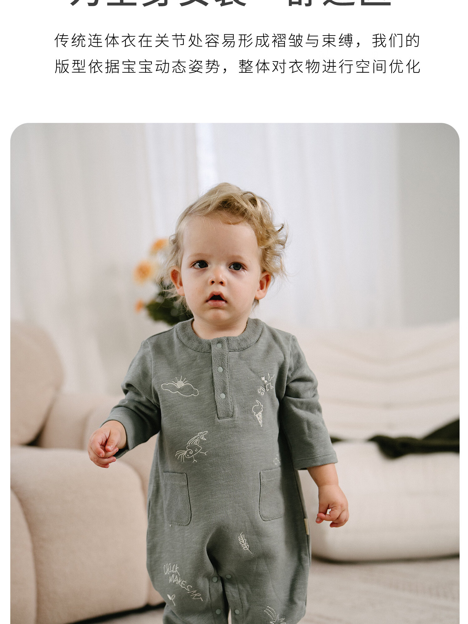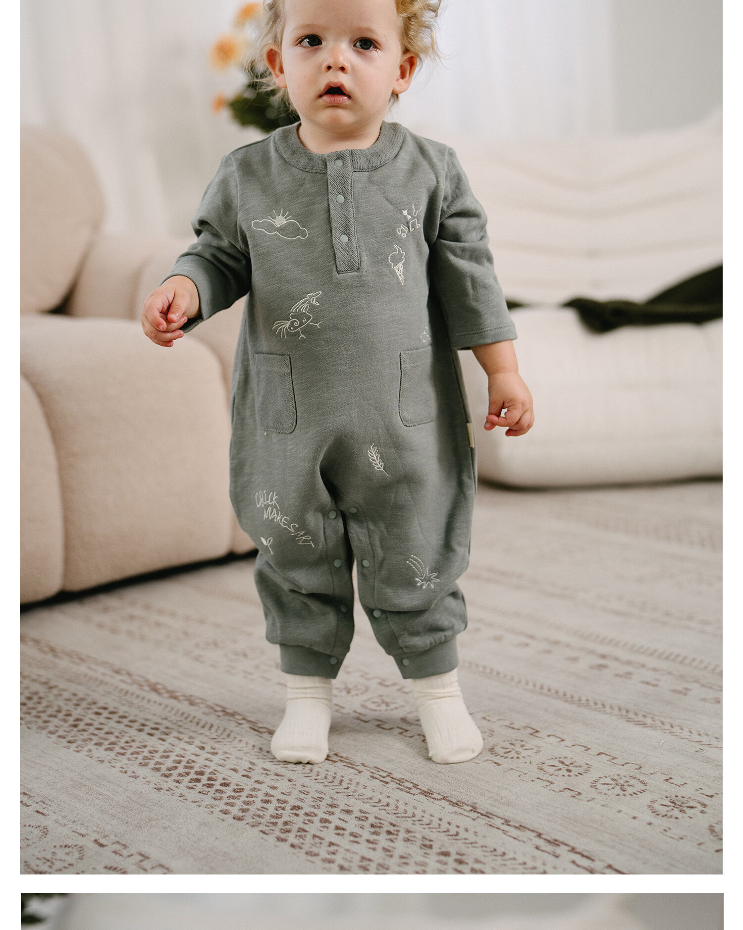 White wheat children's 26 spring new style infant and toddler clothes boys pure cotton embroidered baby girl's romper jumpsuit gray 66cm