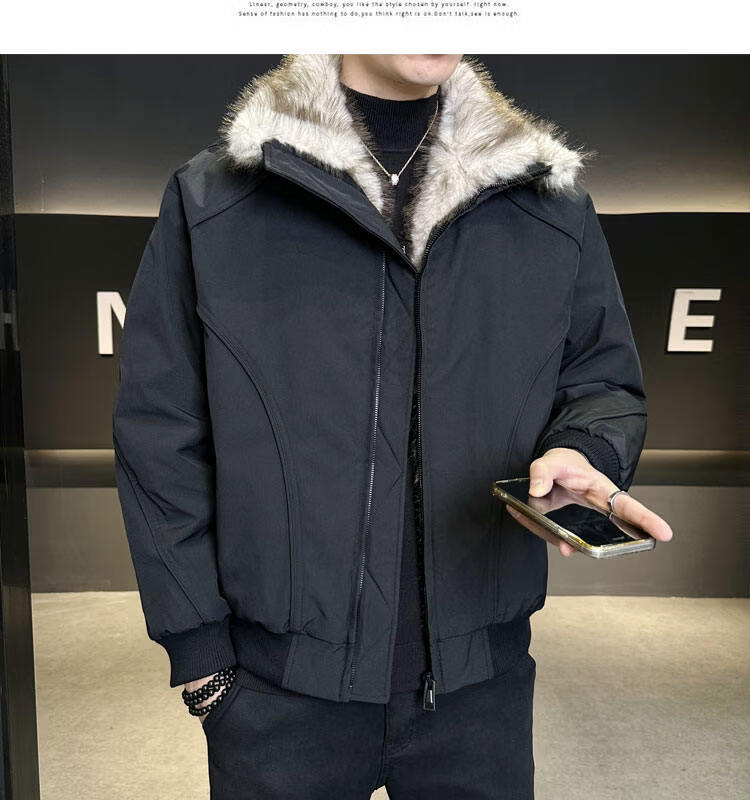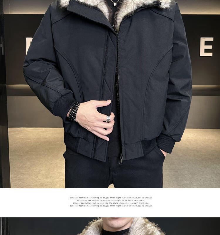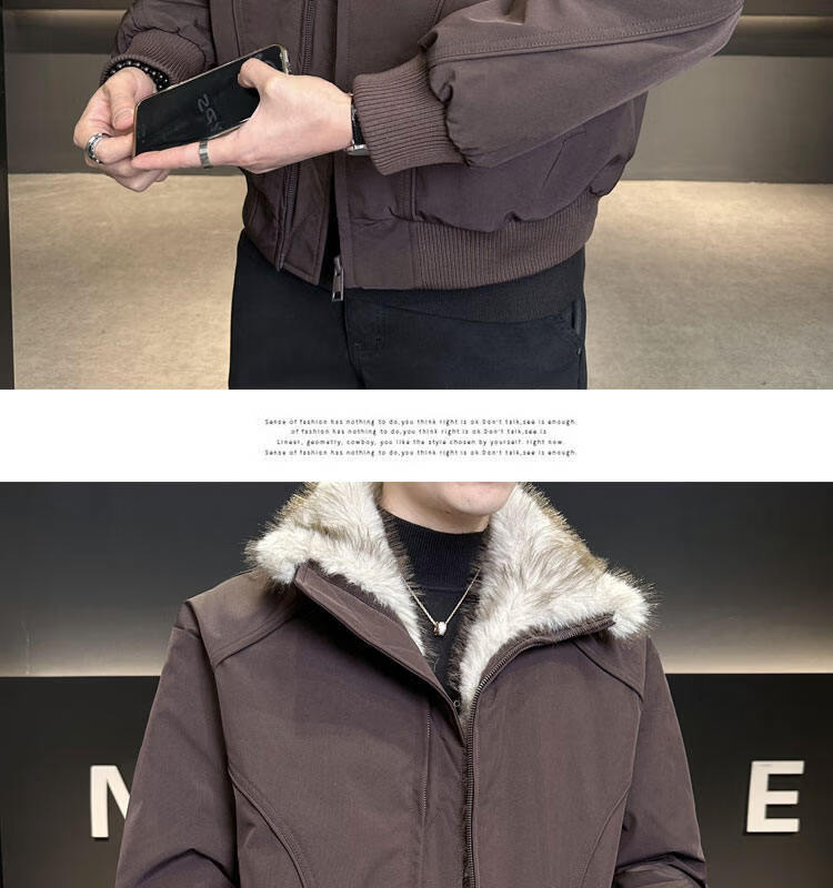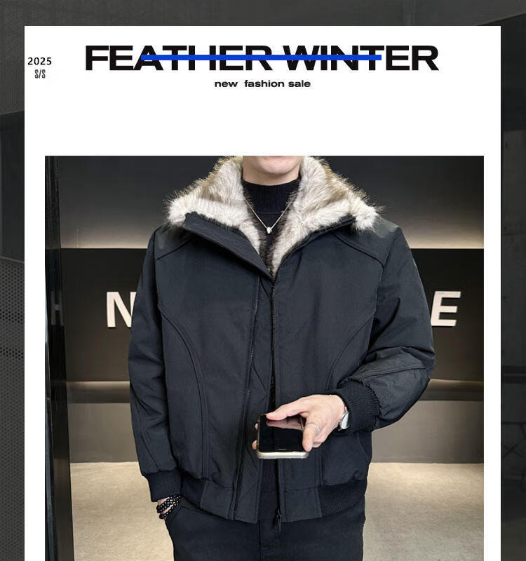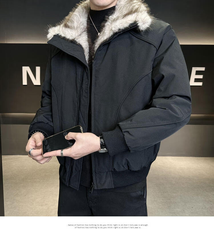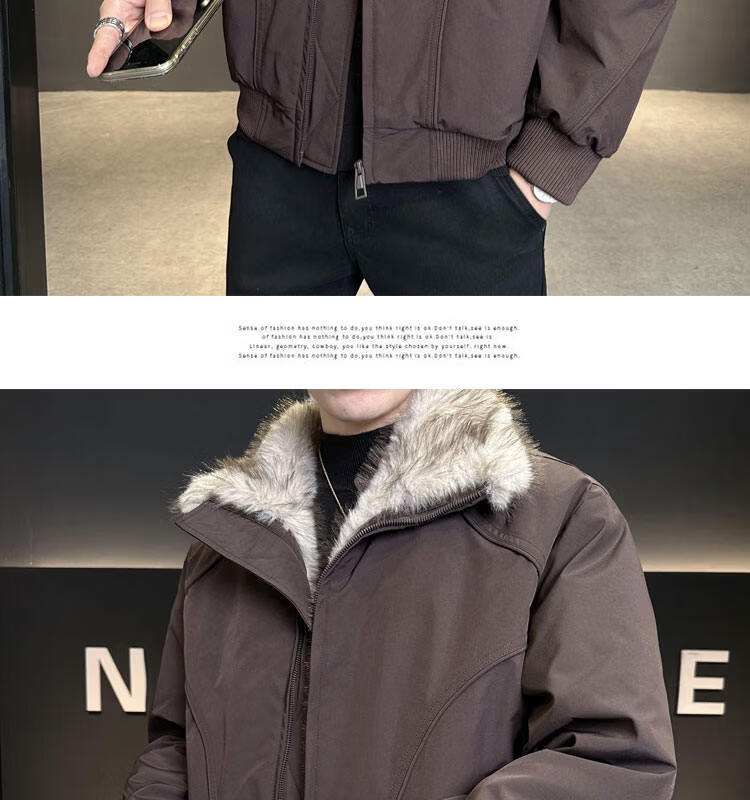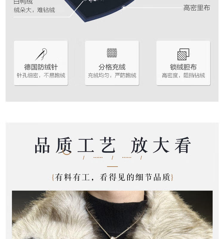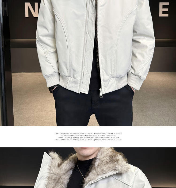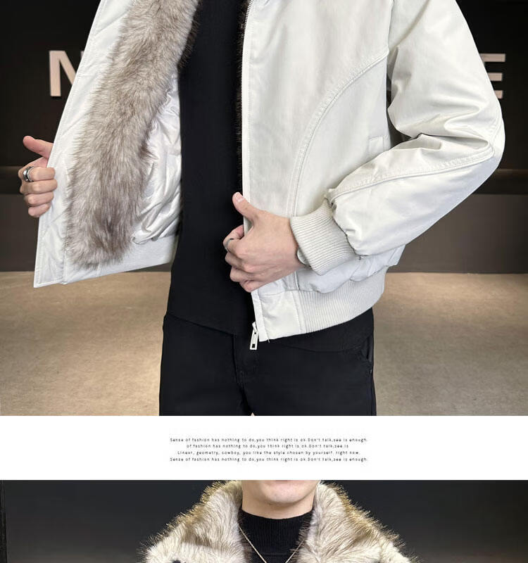 ROMON 90 White Duck Down Mountain Eagle Big Fur Collar Down Jacket Men's Thickened Warm American Couple Loose Party Jacket Men's Apricot M