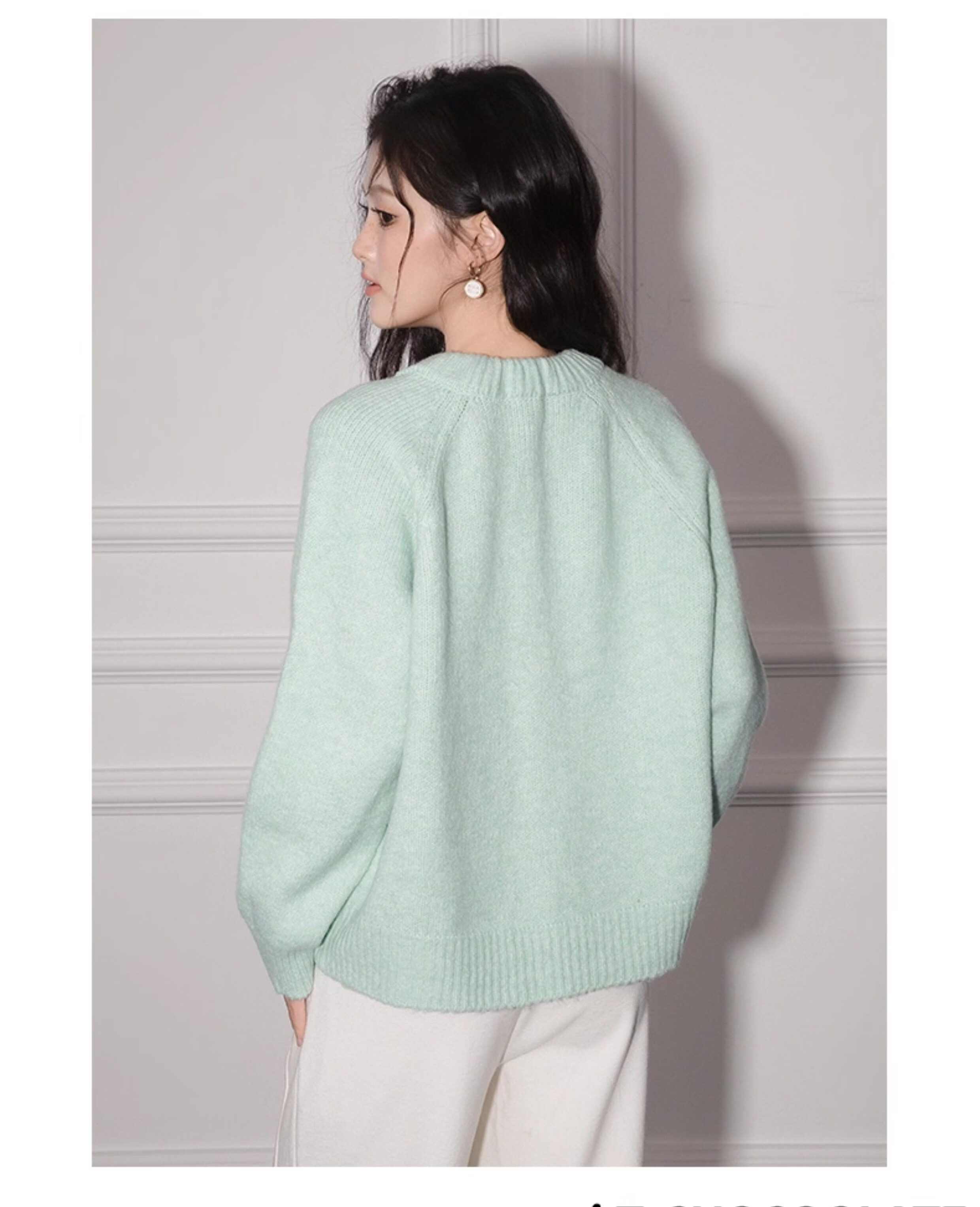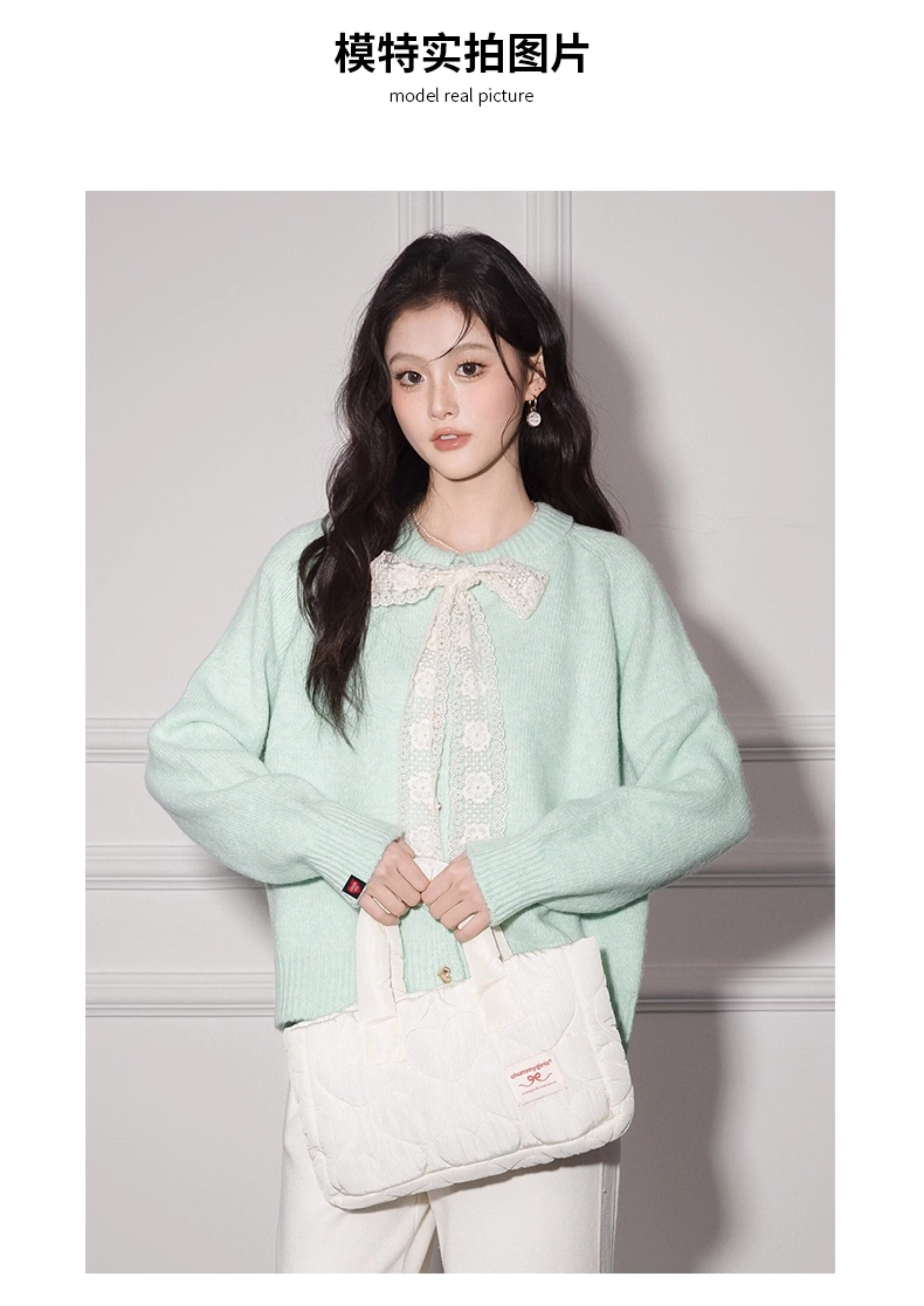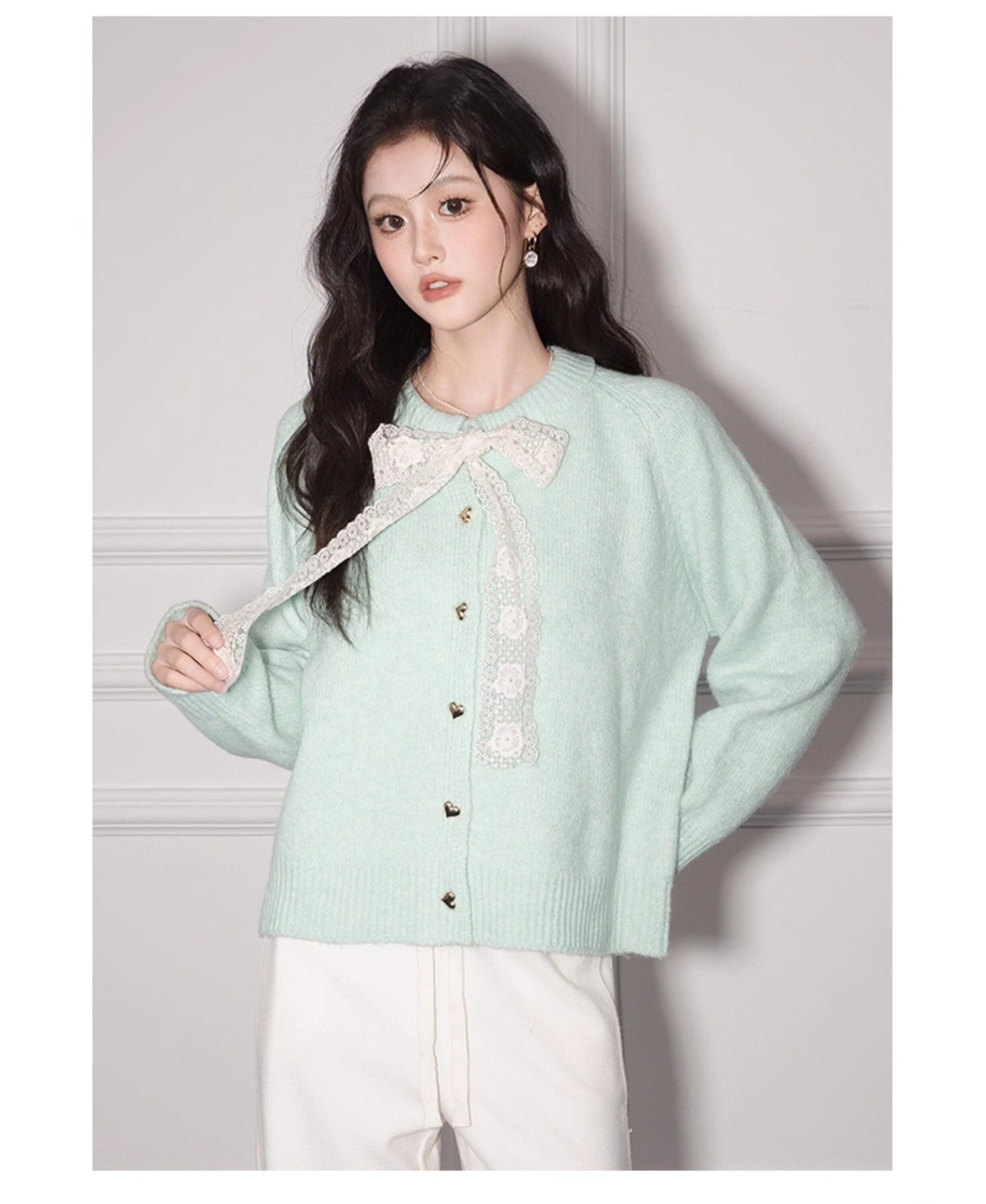 CHOCOOLATE it Women's Round Neck Bow Sweater Women's 2026 Spring New Loose Versatile High-Quality Knitted Jacket Women's Blue One Size