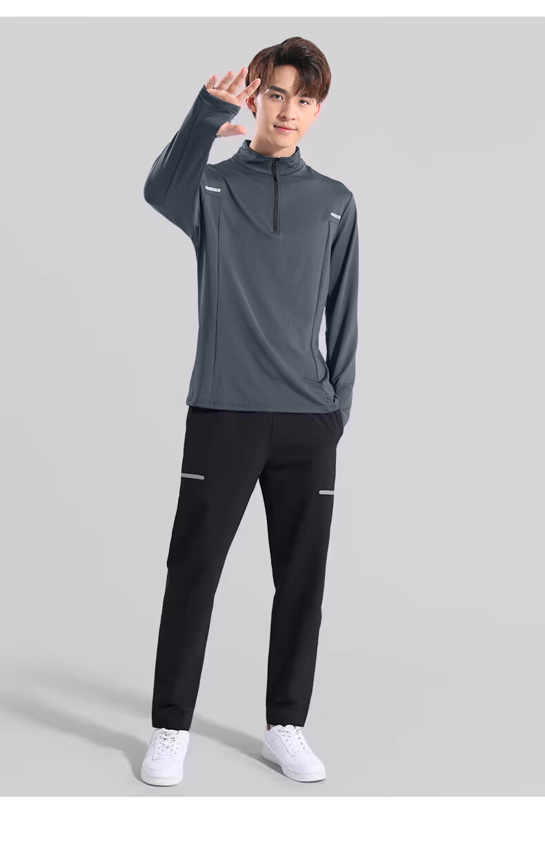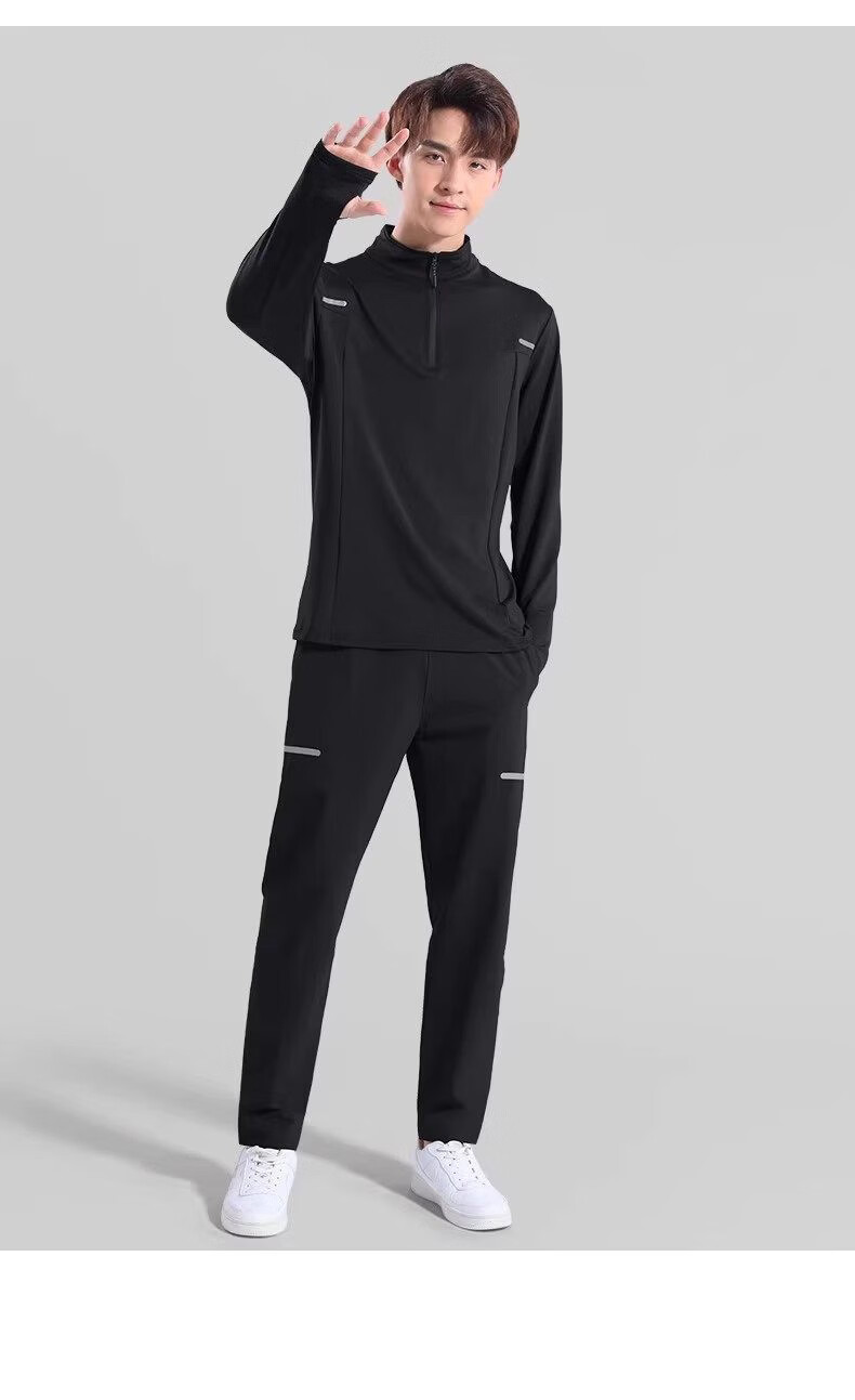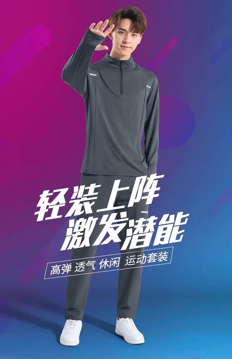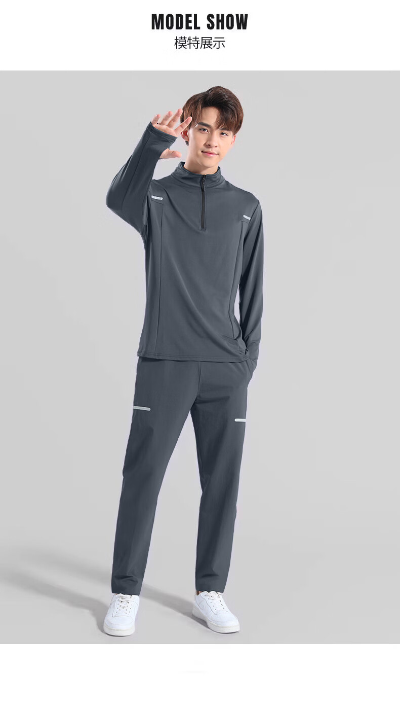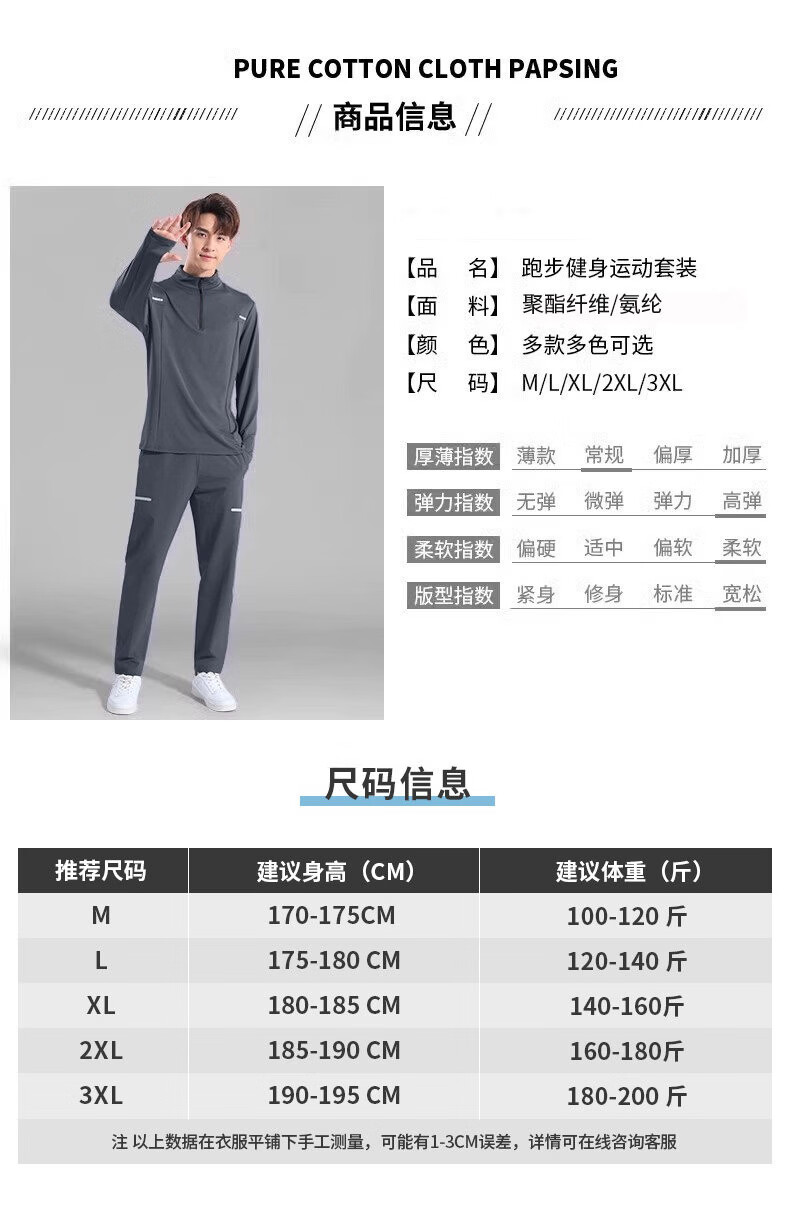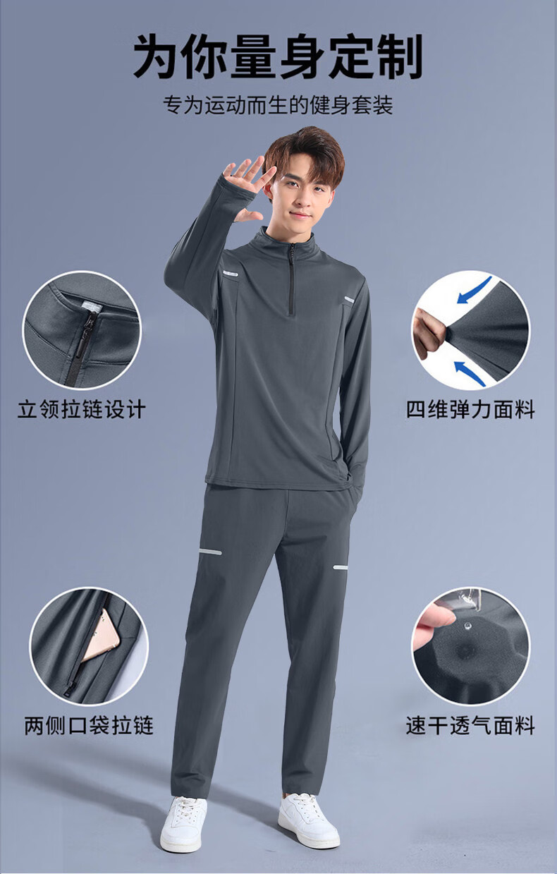 Walker Shop brand sports suit men's new running quick-drying soft long-sleeved trousers men's autumn and winter training fitness clothes gray two-piece set plus velvet XL recommended 140-160Jin Jin equals 0.5 kg