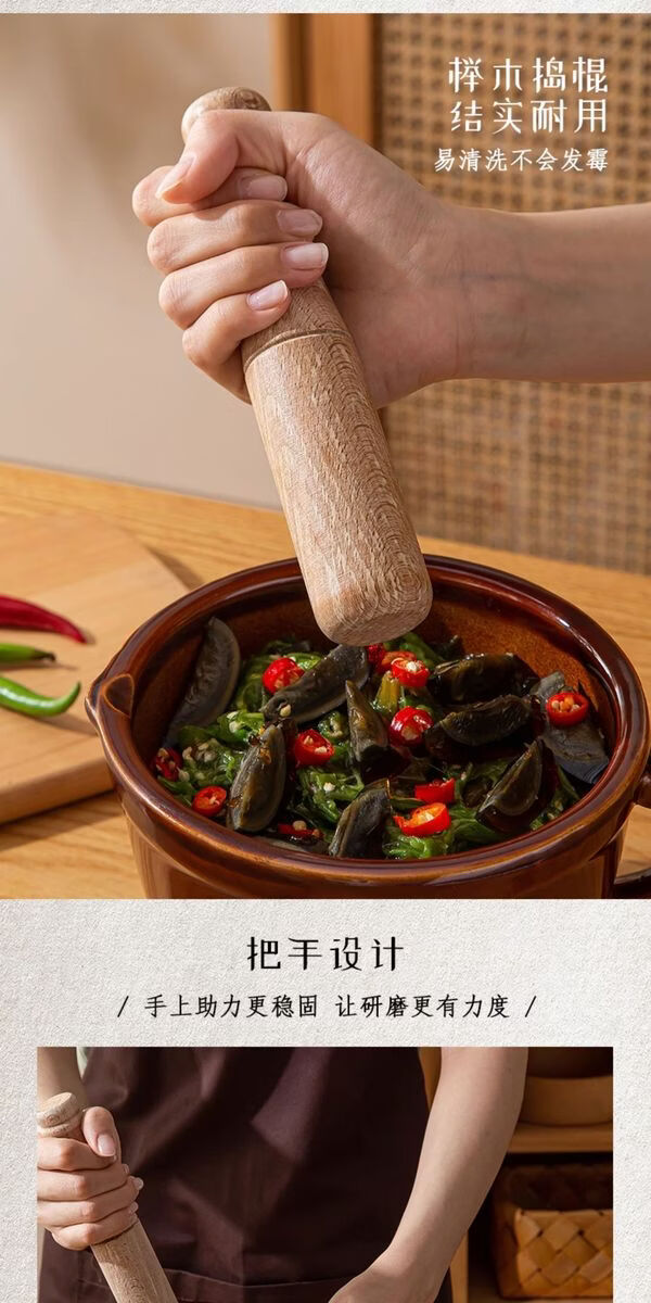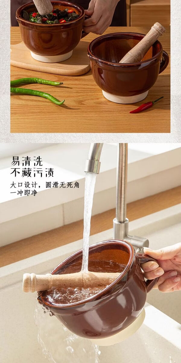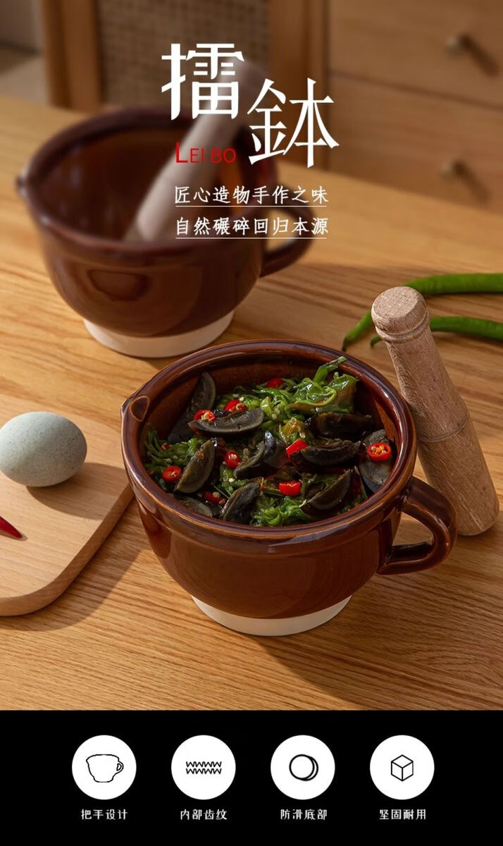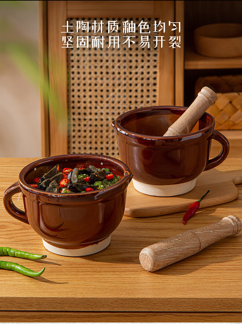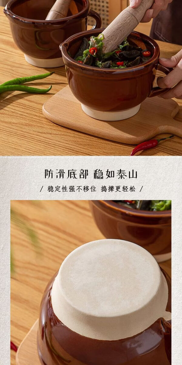 Sanqihu old-fashioned pepper pounding bowl for pounding pepper preserved eggs household ceramic pounding bowl tool for mashing garlic garlic paste garlic mortar 480ml round mouth anti-splash large four-season floral fragrance No tooth marks on the inner wall