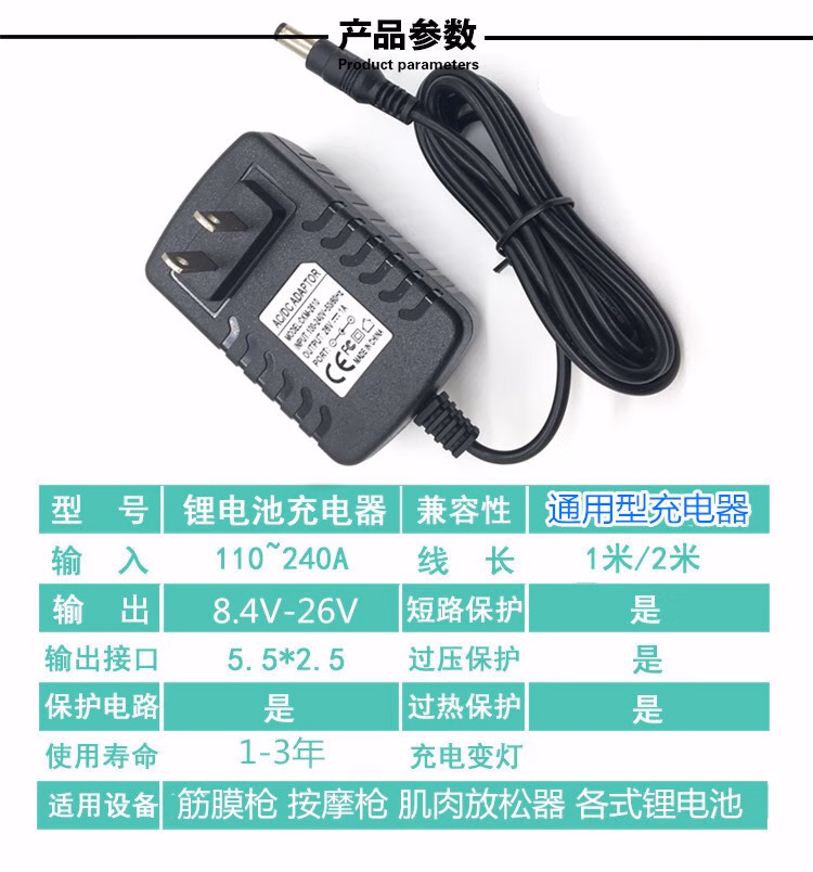 Universal fascia gun charger 24V1A electric 25.2V26V12.6V28V massage gun 16.8V1A charging cable 24V1A 24V1A large and small holes universal two meters