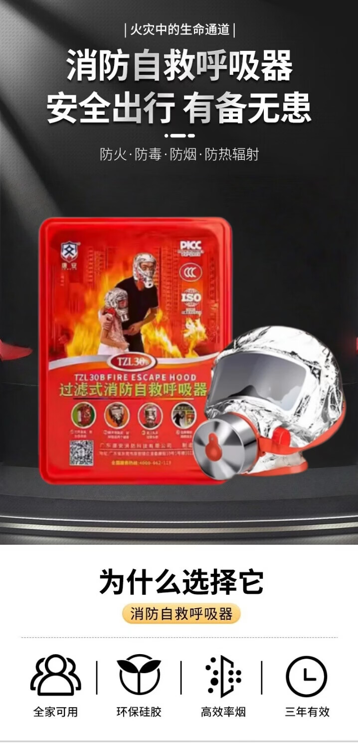 ANSHUN fire mask anti-smoke anti-virus fire mask hotel hotel 3C certified household fire escape self-rescue respirator hotel package B丨anti-smoke mask*2+flashlight*1