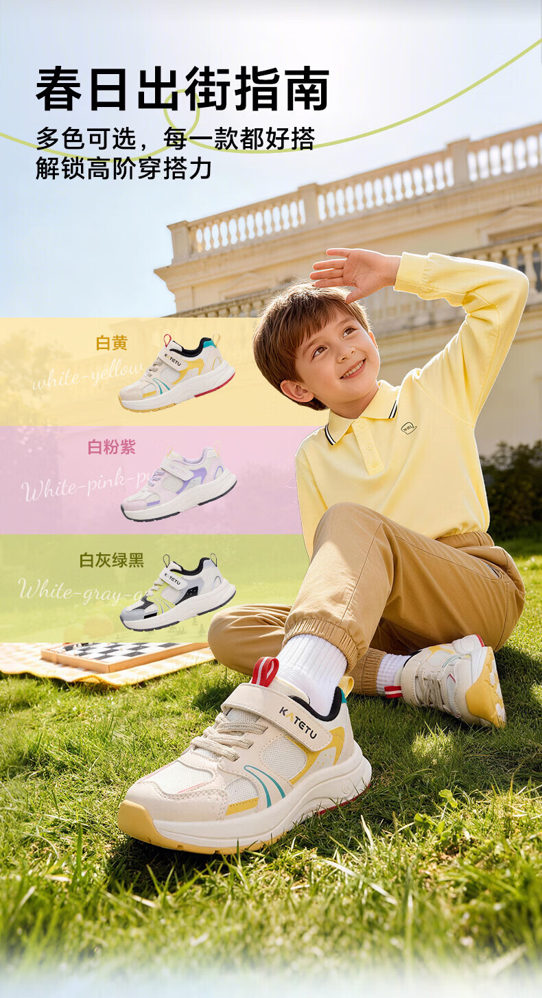 Carter Rabbit Children's Shoes Children's Sports Shoes 2026 Spring New Anti-slip Wear-Resistant Breathable Basketball Shoes Running Shoes White Yellow 24 Inner Length About 15.5cm Foot Length About 14.1-14.7
