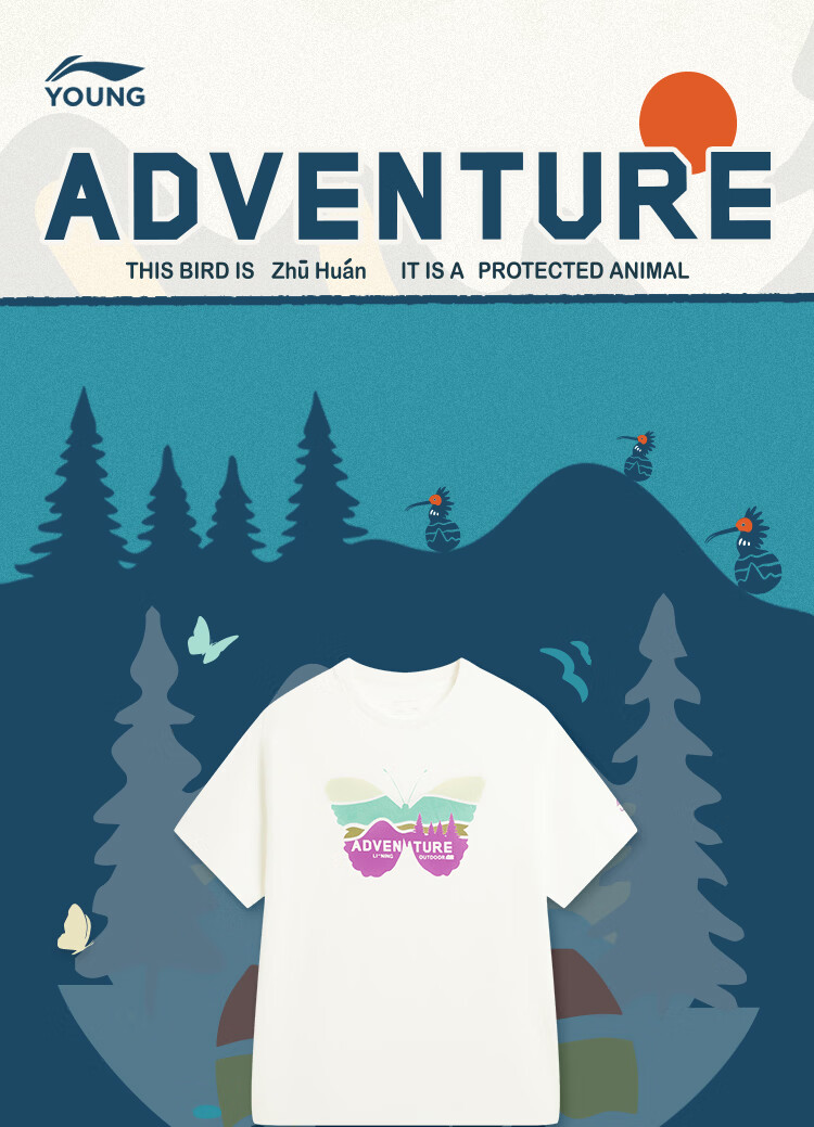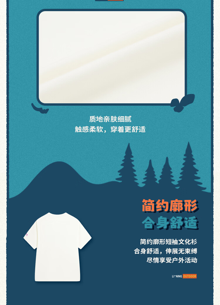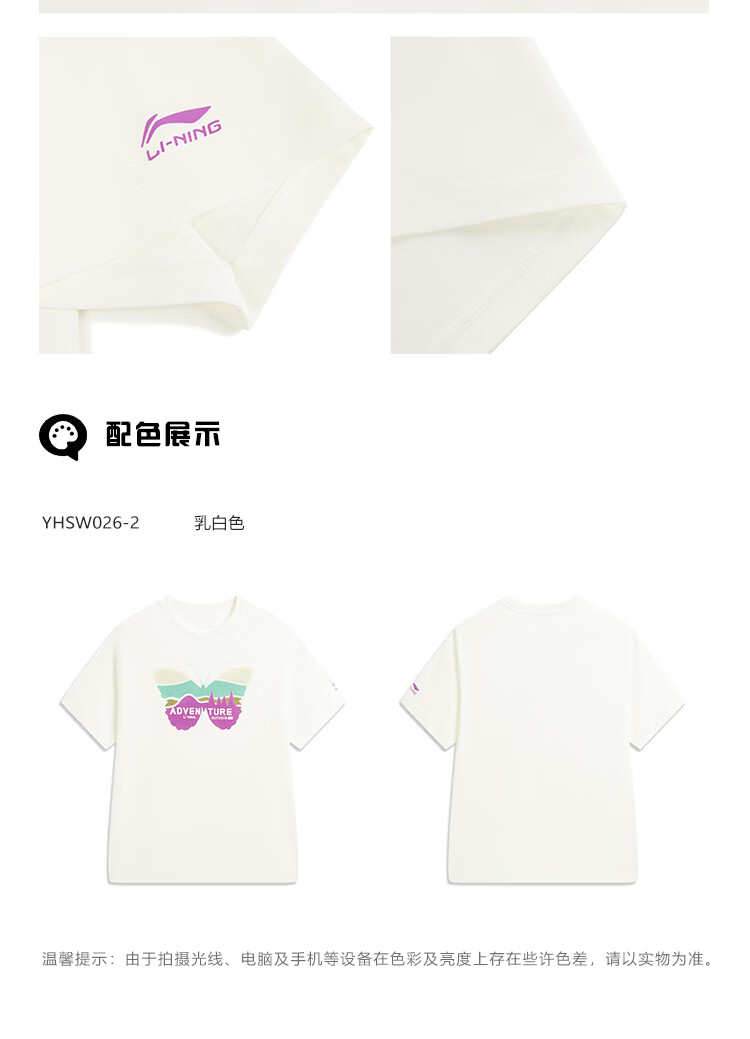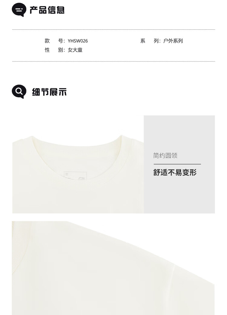 Li Ning Children's Clothing丨Short-sleeved cultural shirt for older girls 2026 new skin-friendly, comfortable, fashionable and casual sports T-shirt, milky white-2 120