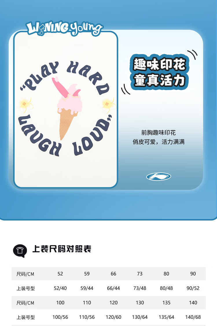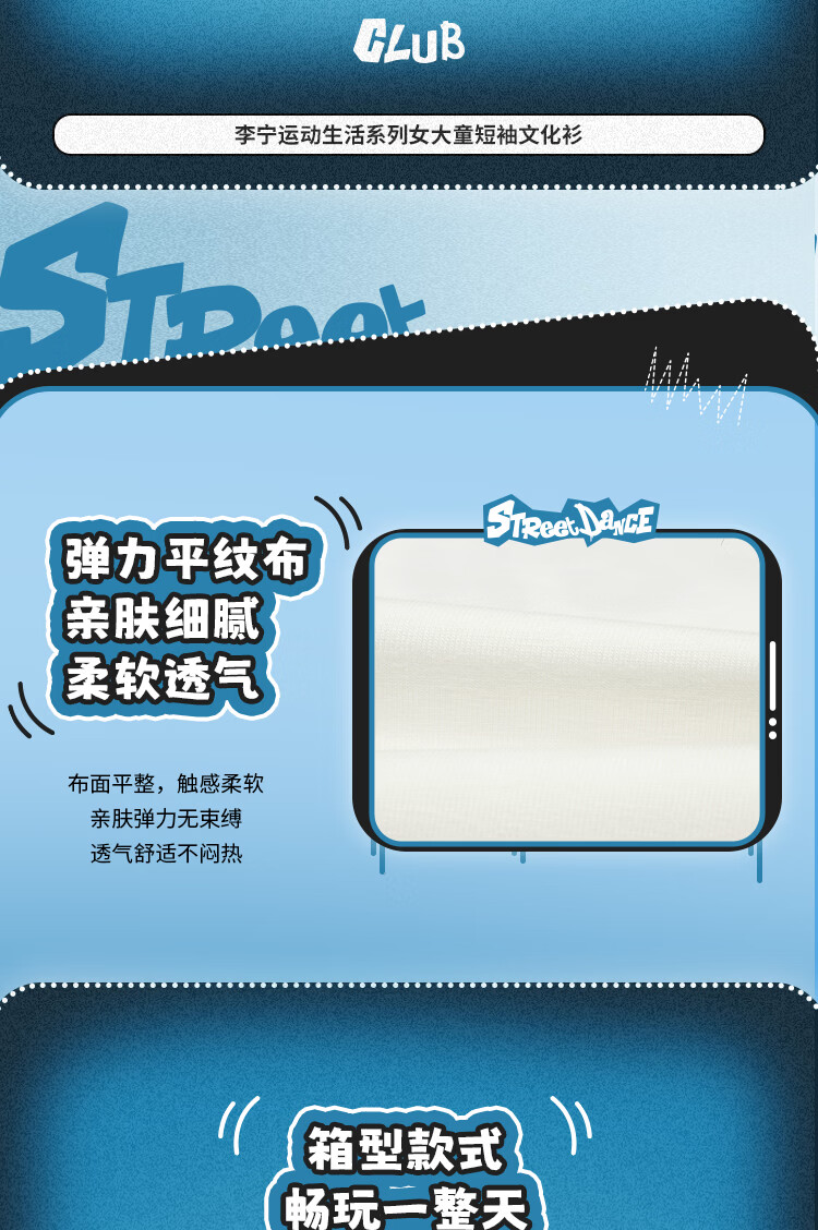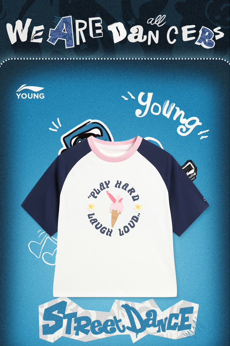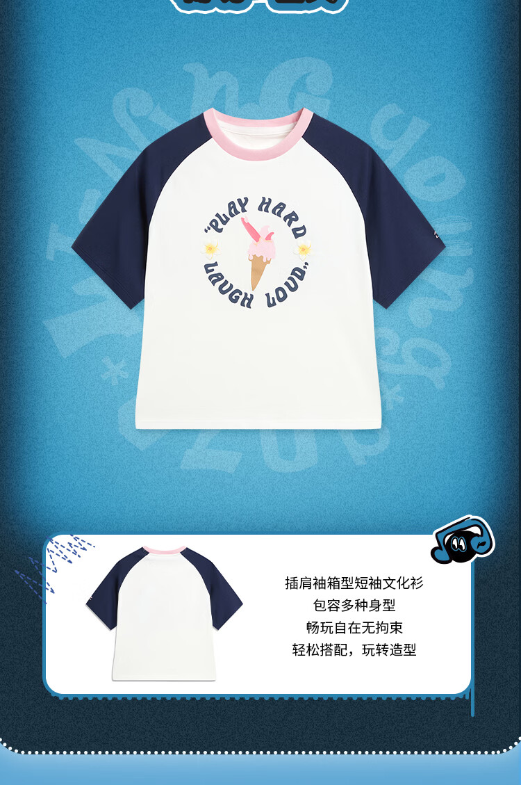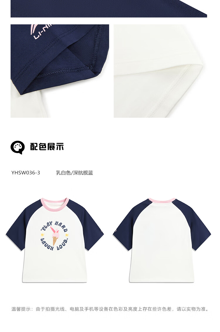 Li Ning children's short-sleeved cultural shirt for girls 2026 new soft, comfortable, skin-friendly, breathable round-neck casual sports top, milky white/dark navy blue-3 120
