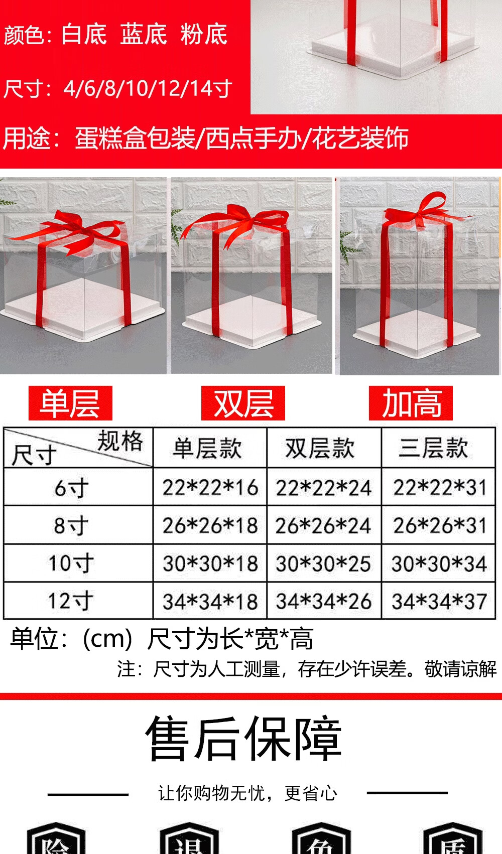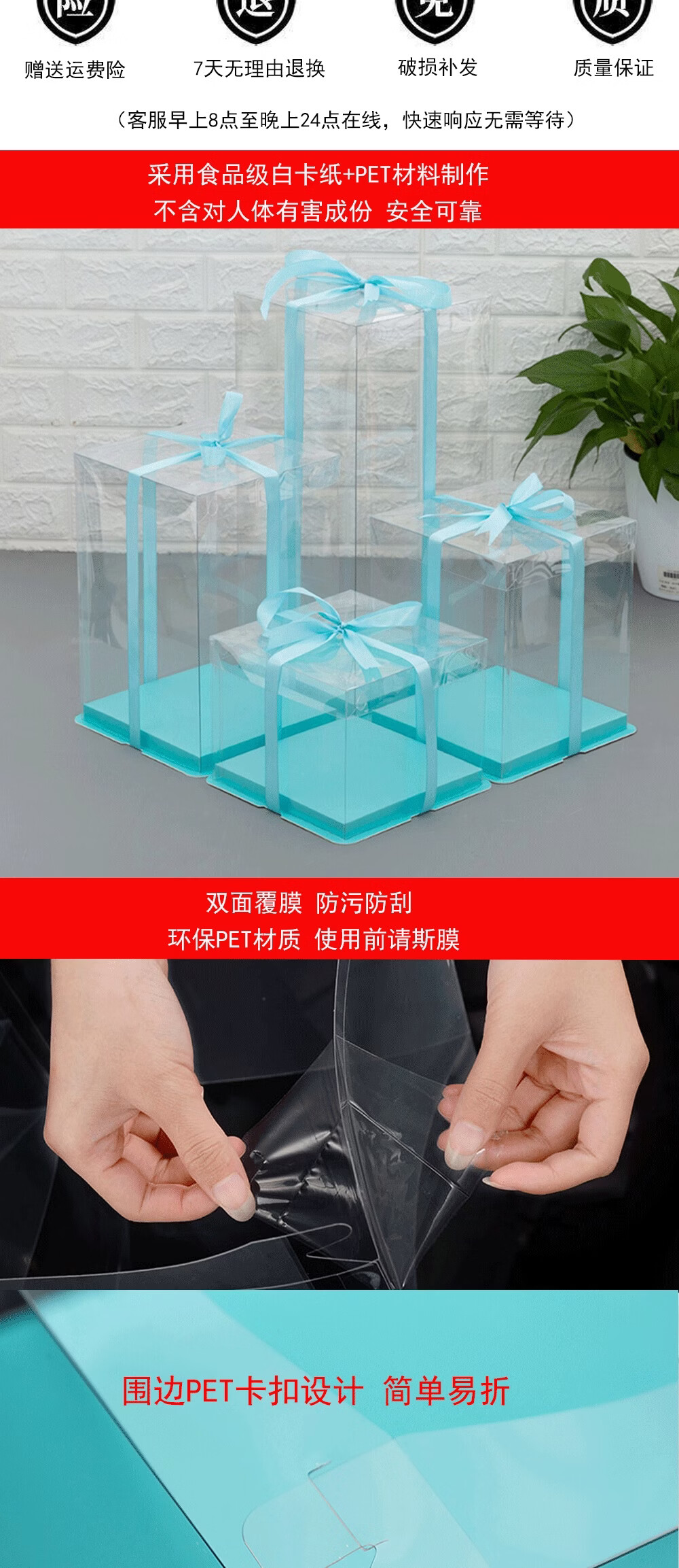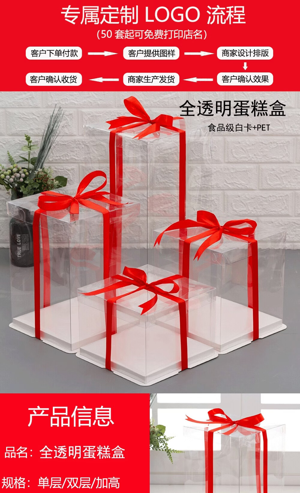 Fantasy transparent portable birthday cake four inches 4681012 inches single layer double layer heightening packaging box fully transparent white background 50 sets 10 inches single layer 30x30x18cm