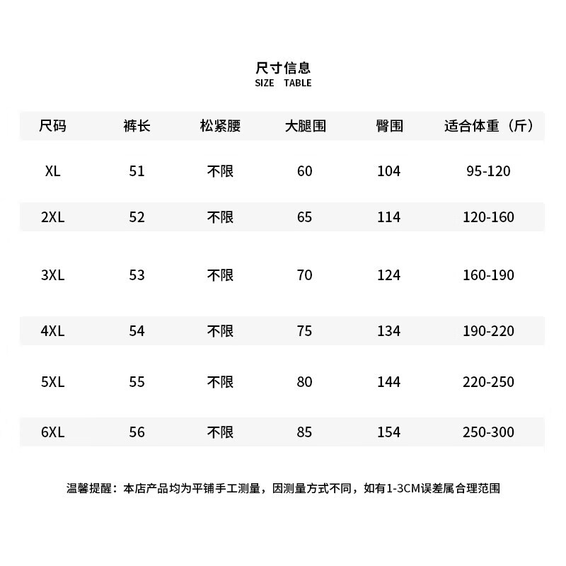 Outseam (cm) 99 cm 101.5 cm 104 cm 106.5 cm 109 cm