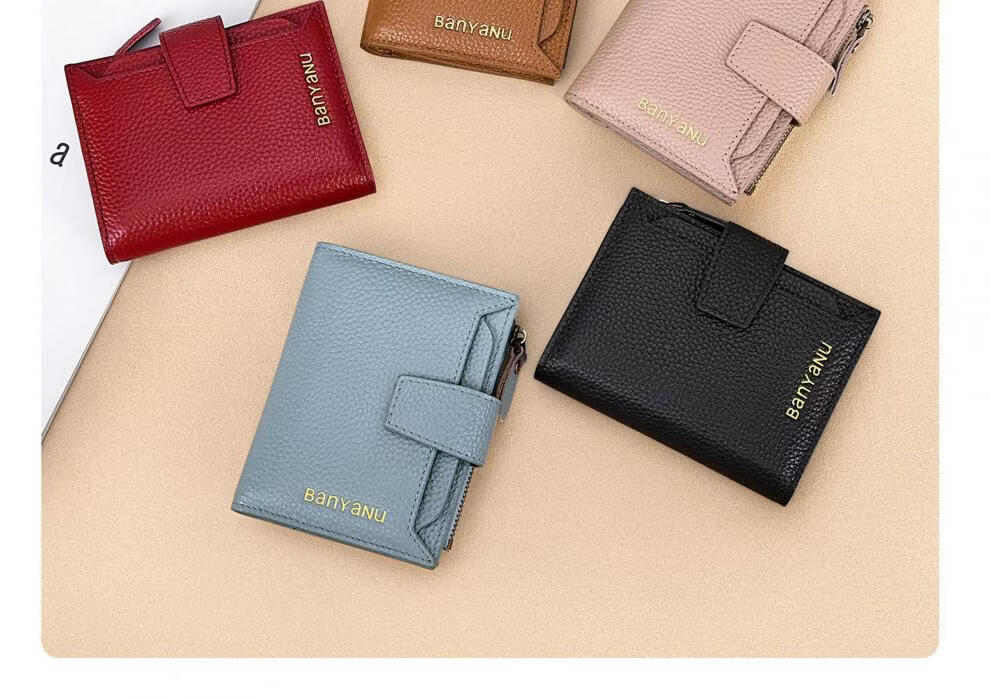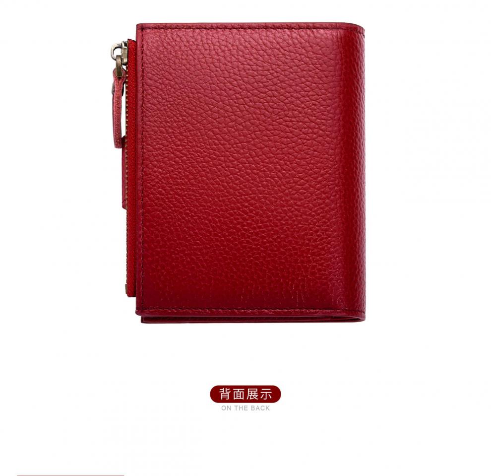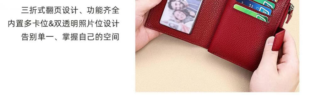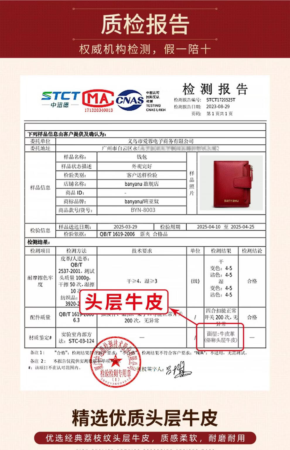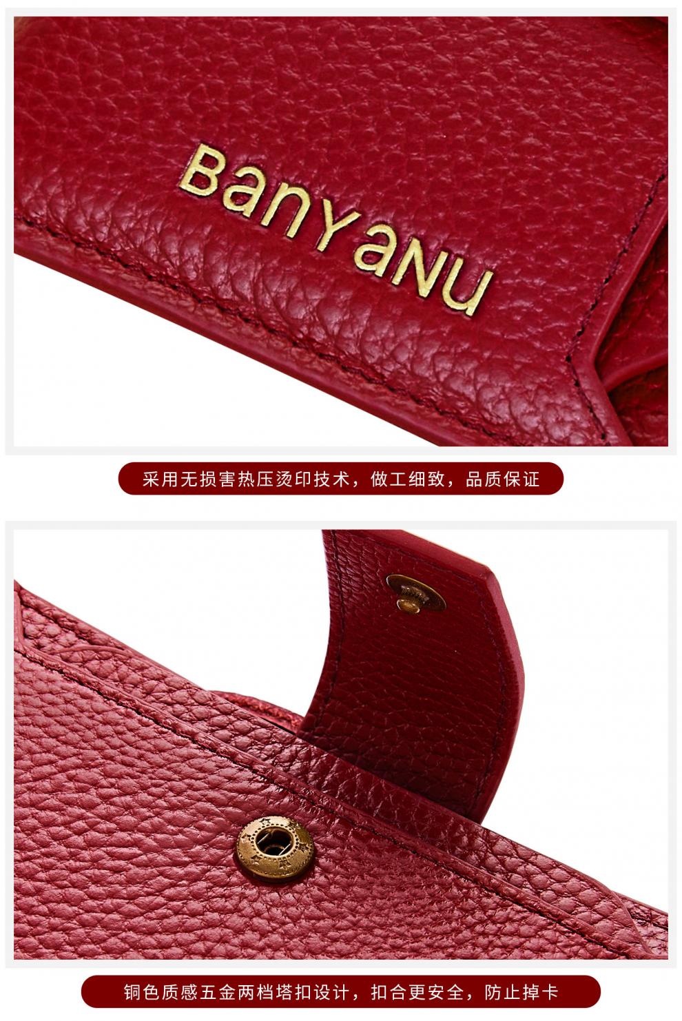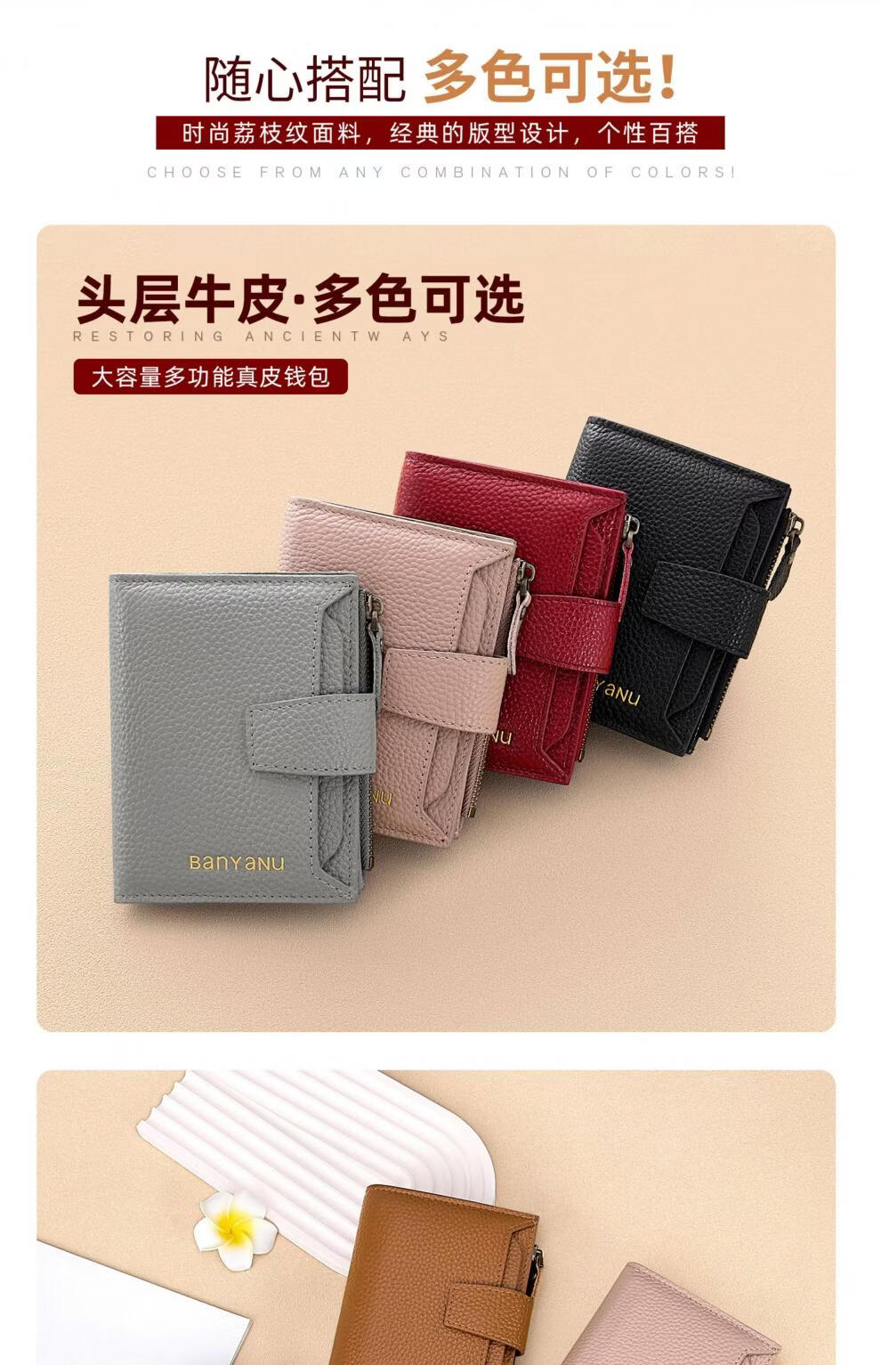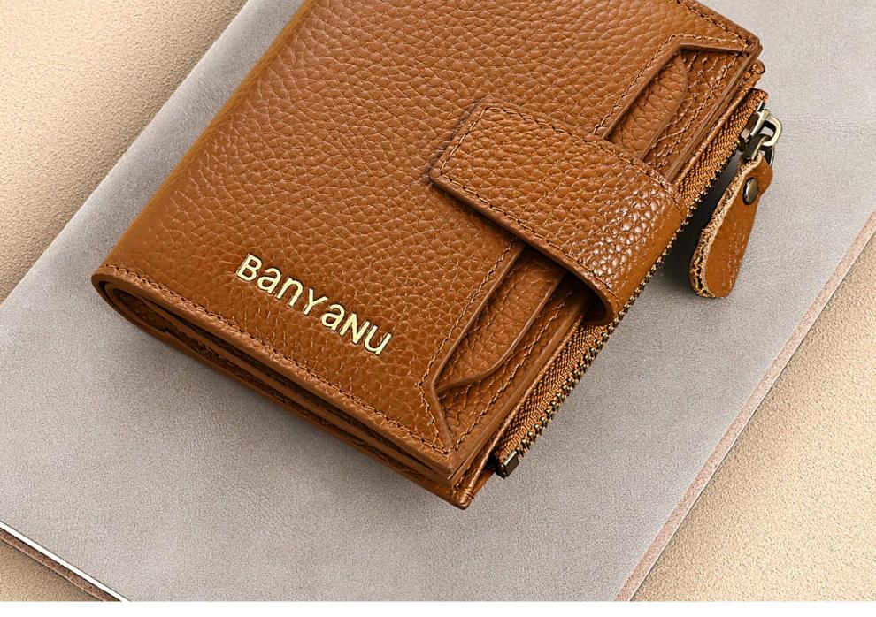 Banyanu pebbled cowhide short clip for women, genuine leather with multiple card slots, independent driver's license card holder, zipper coin purse for women, burgundy first-layer cowhide - anti-theft brush