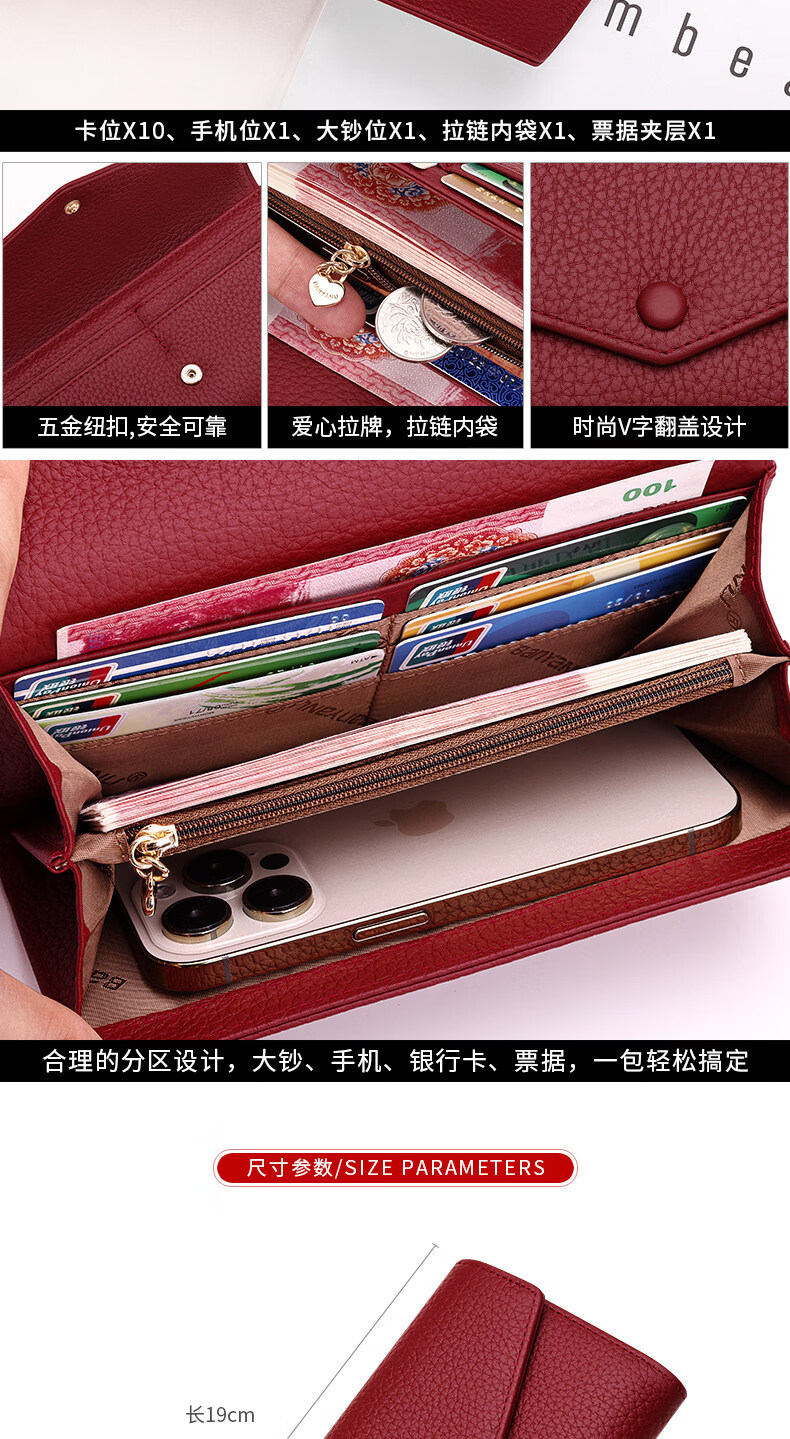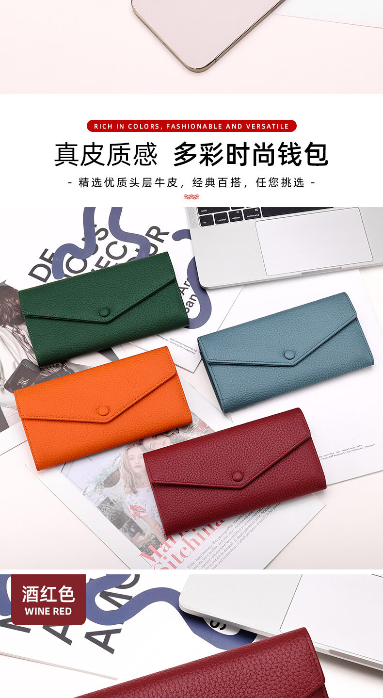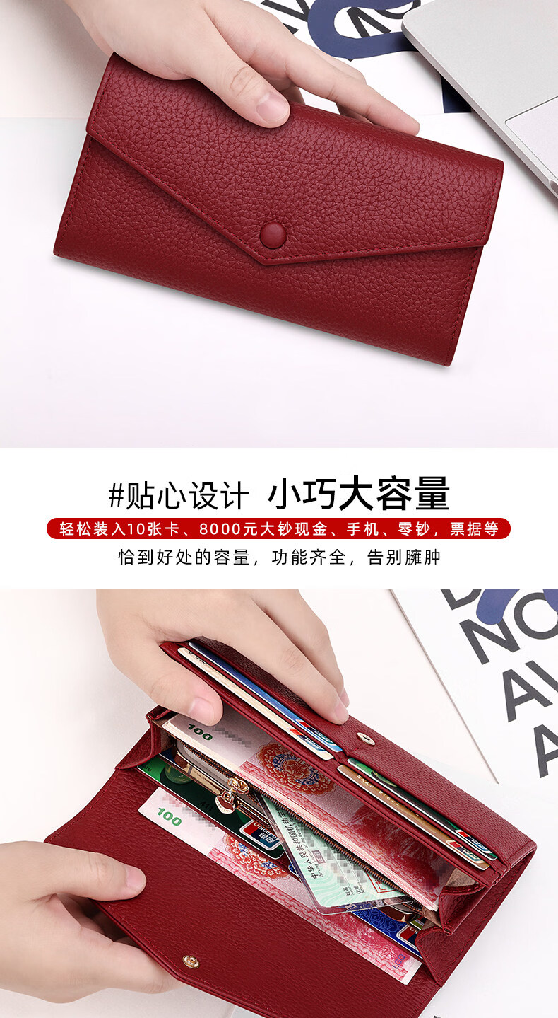 Banyanu wallet women's genuine leather long 2025 new wallet soft leather exquisite wallet card holder all-in-one compact clutch bag burgundy (first layer of cowhide) anti-theft brush
