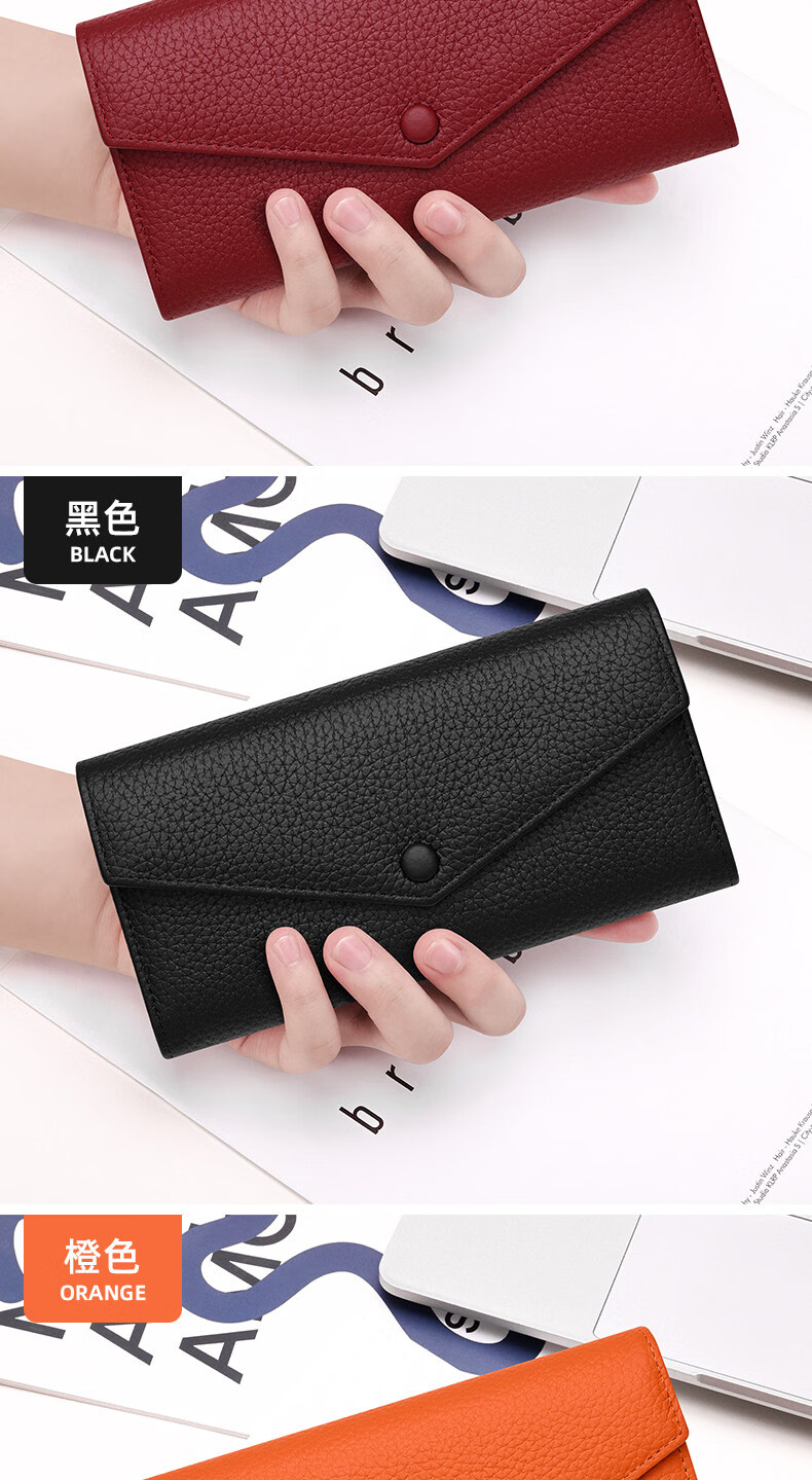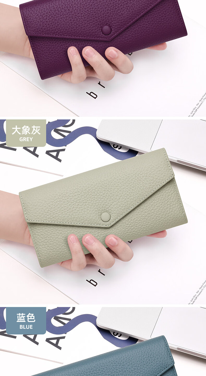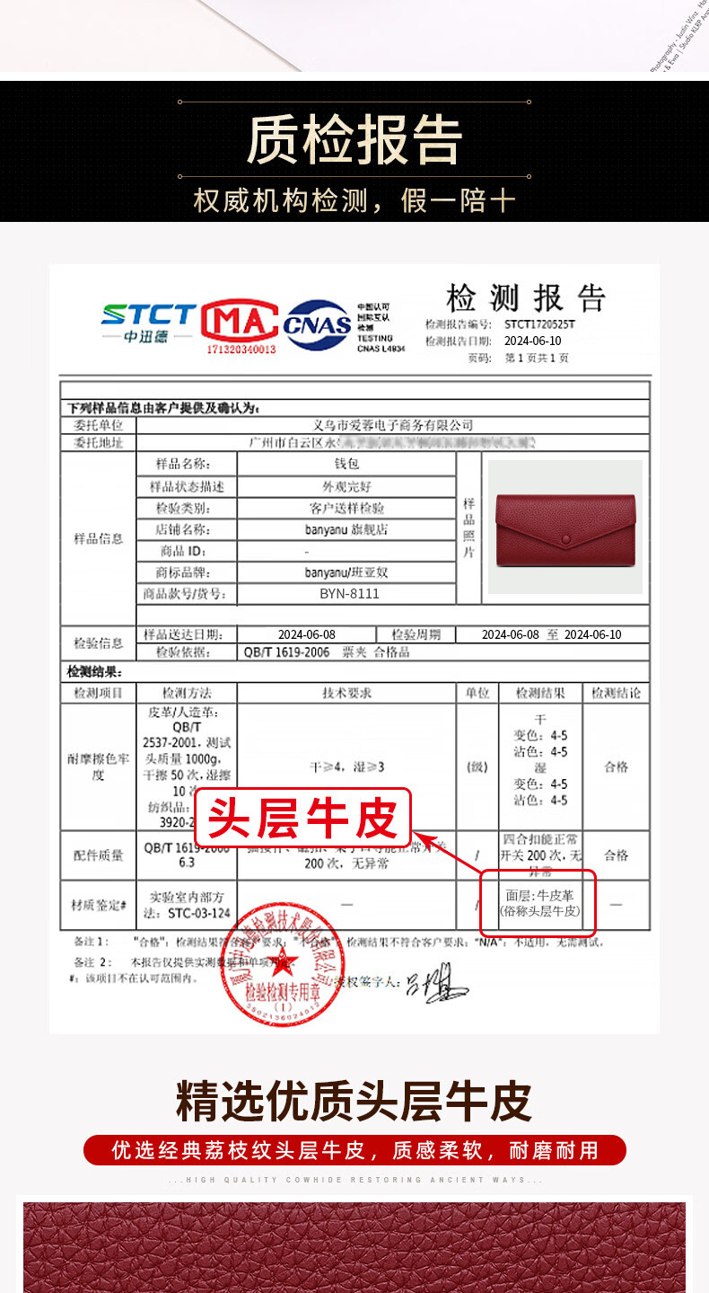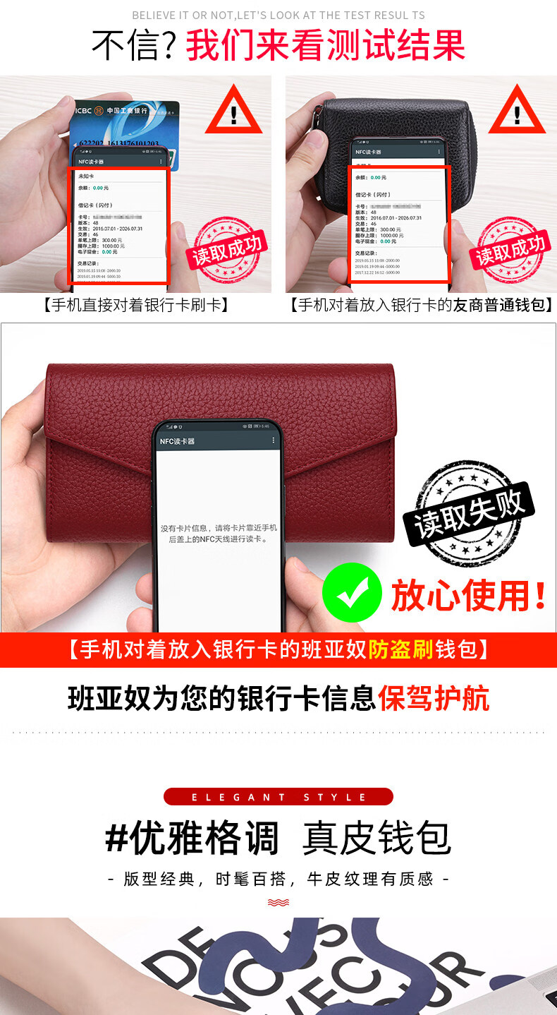 Banyanu wallet women's genuine leather long 2025 new wallet soft leather exquisite wallet card holder all-in-one compact clutch bag burgundy (first layer of cowhide) anti-theft brush