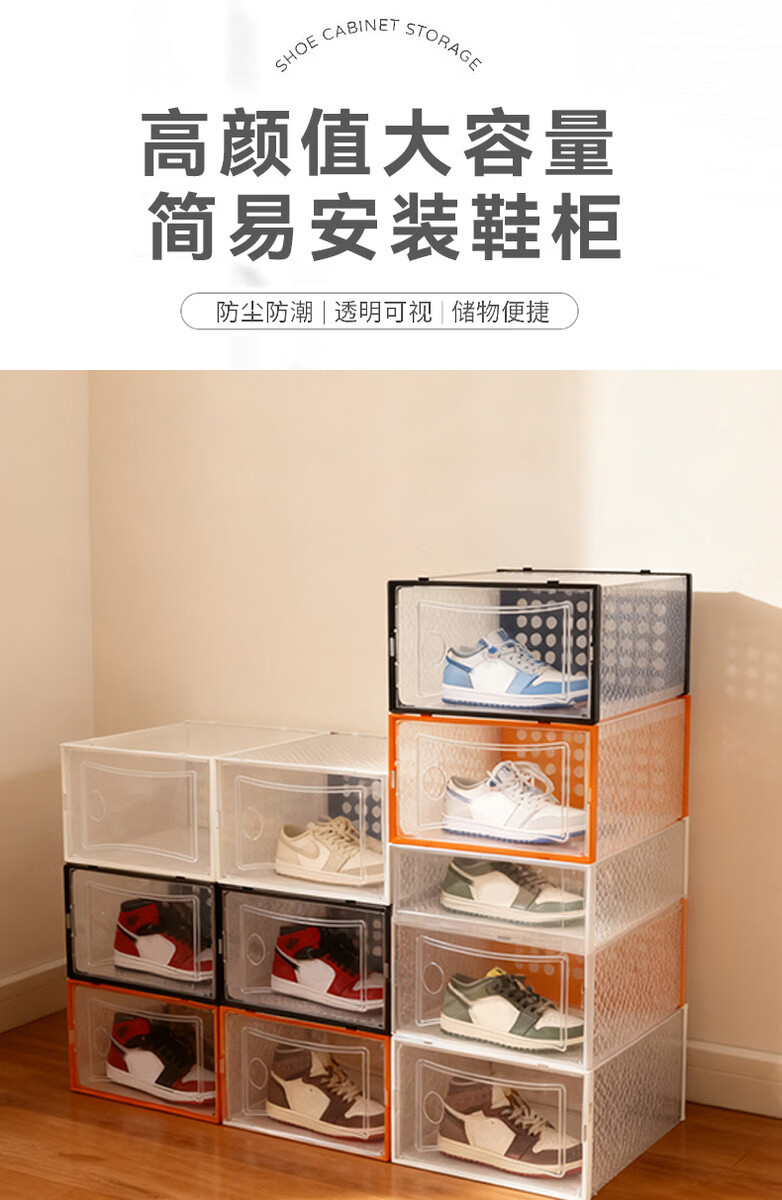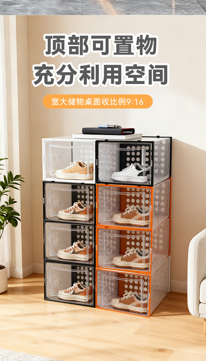 Wing Fantasy 2025 flip-top drawer-type transparent storage shoe box household multi-layer connected student dormitory shoe cabinet plastic 10 pieces black thickened upgraded model + factory direct sale