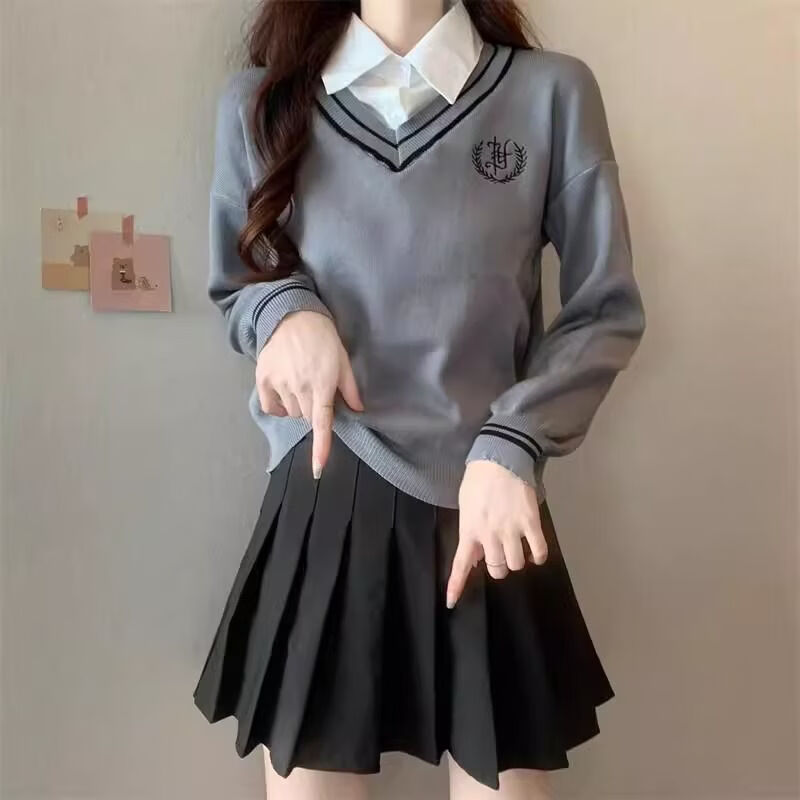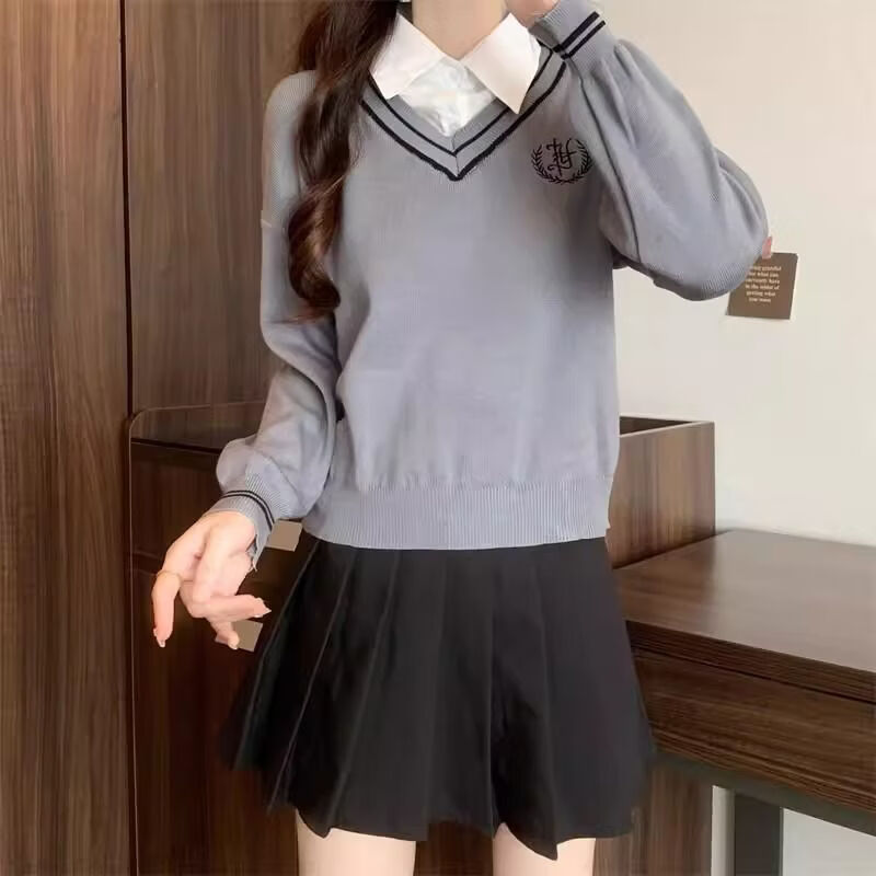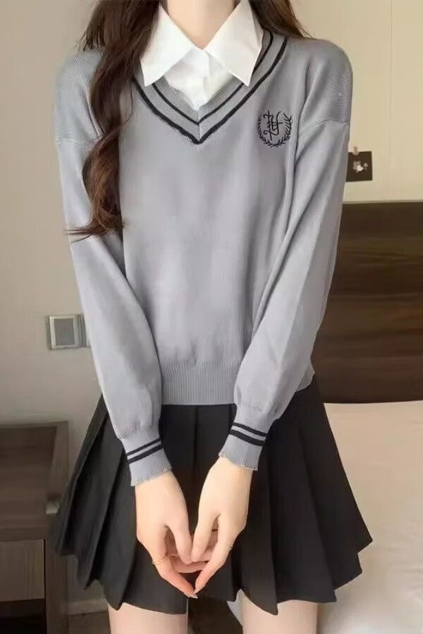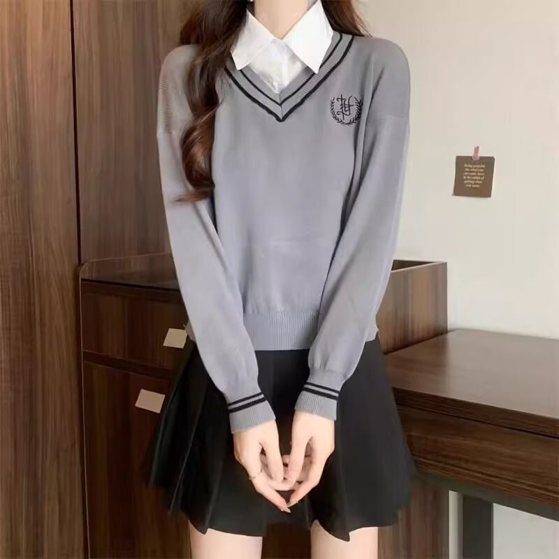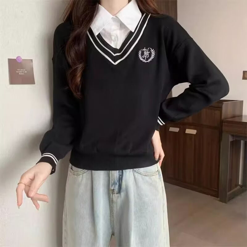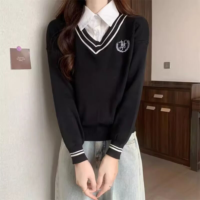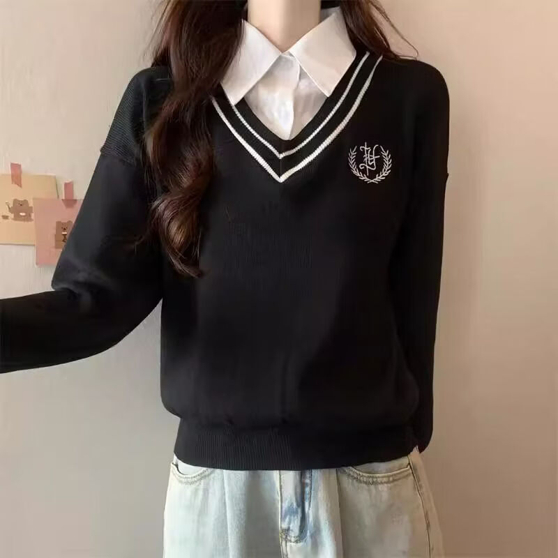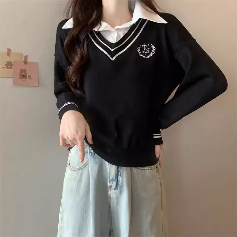 Playboy (PLAYBOY) college style POLO collar fake two-piece shirt vest sweater for women spring unique and chic small top short sweater official flagship black S recommended 80-95Jin Jin is equal to 0.5 kg
