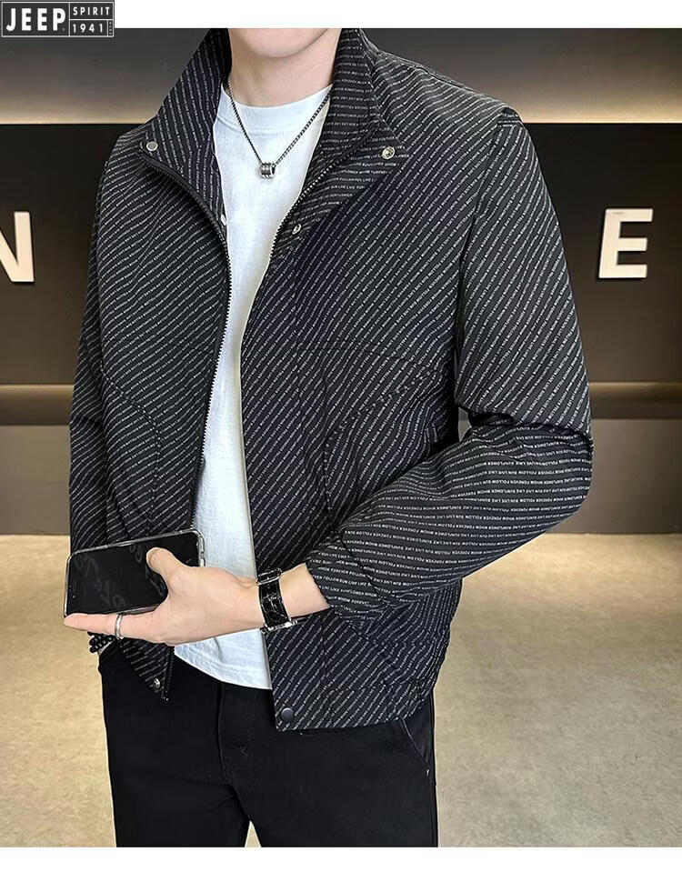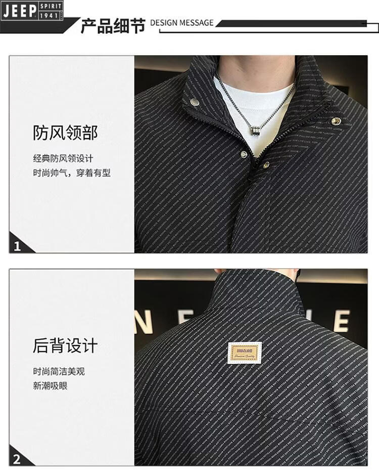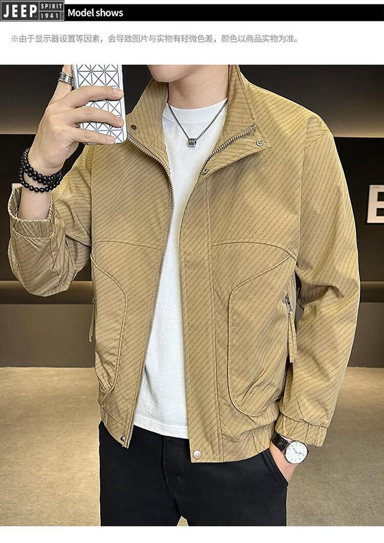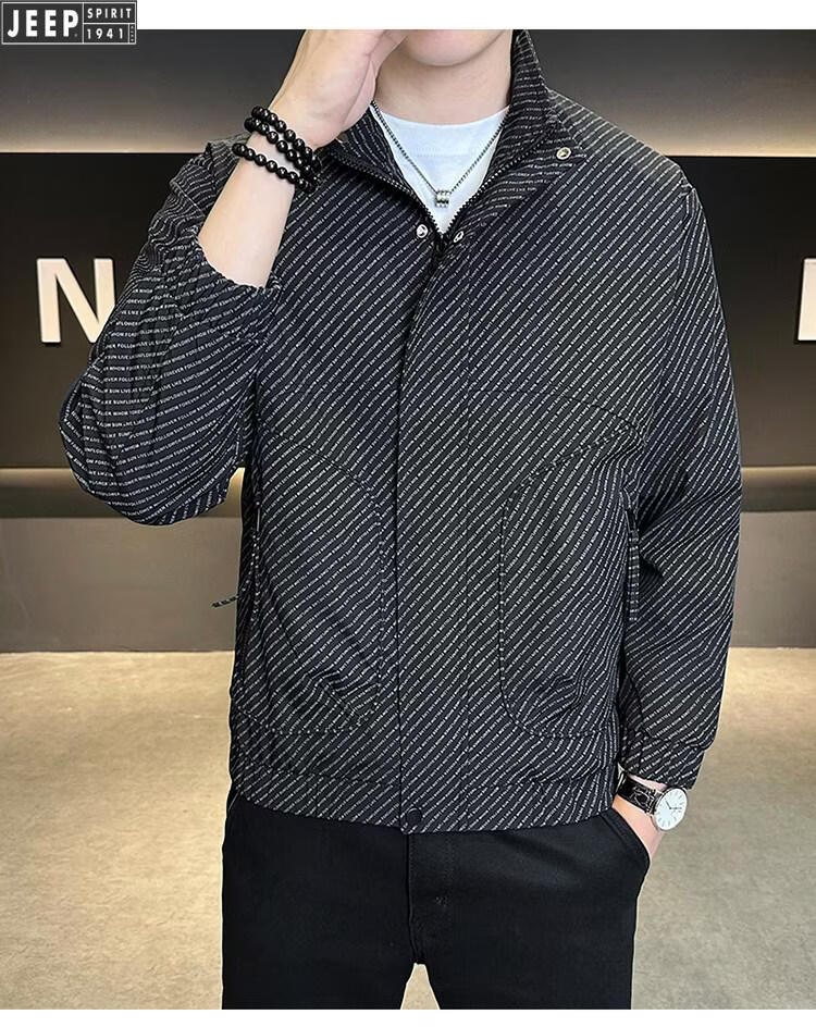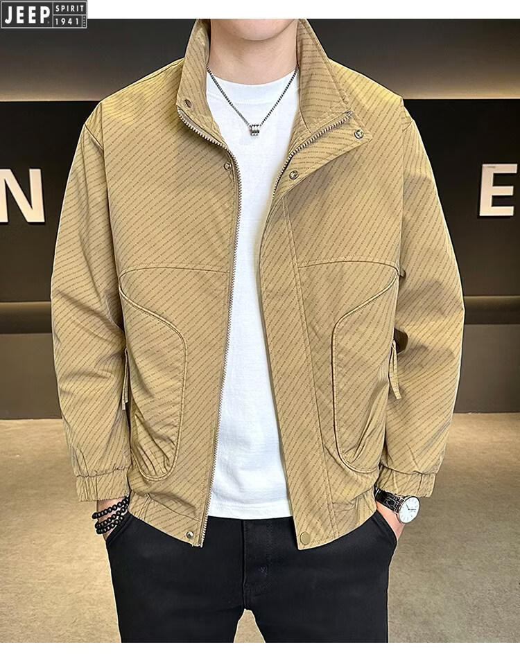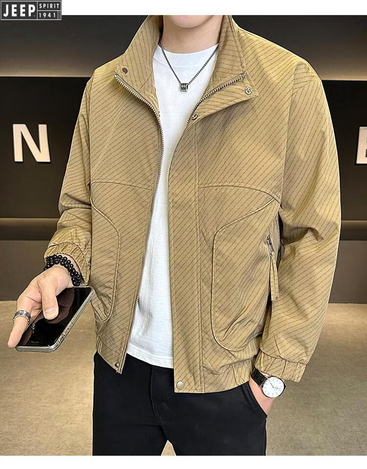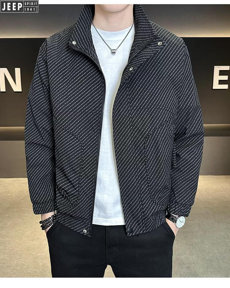JEEP Jeep Men's Jacket Cotton Thickened Spring and Autumn 2026 New Stand Collar Jacket Men's Casual Warm Cotton Clothes Men's 8852 Cotton Black Cotton Thickened XL 130-145Jin Jin is equal to 0.5 kg
