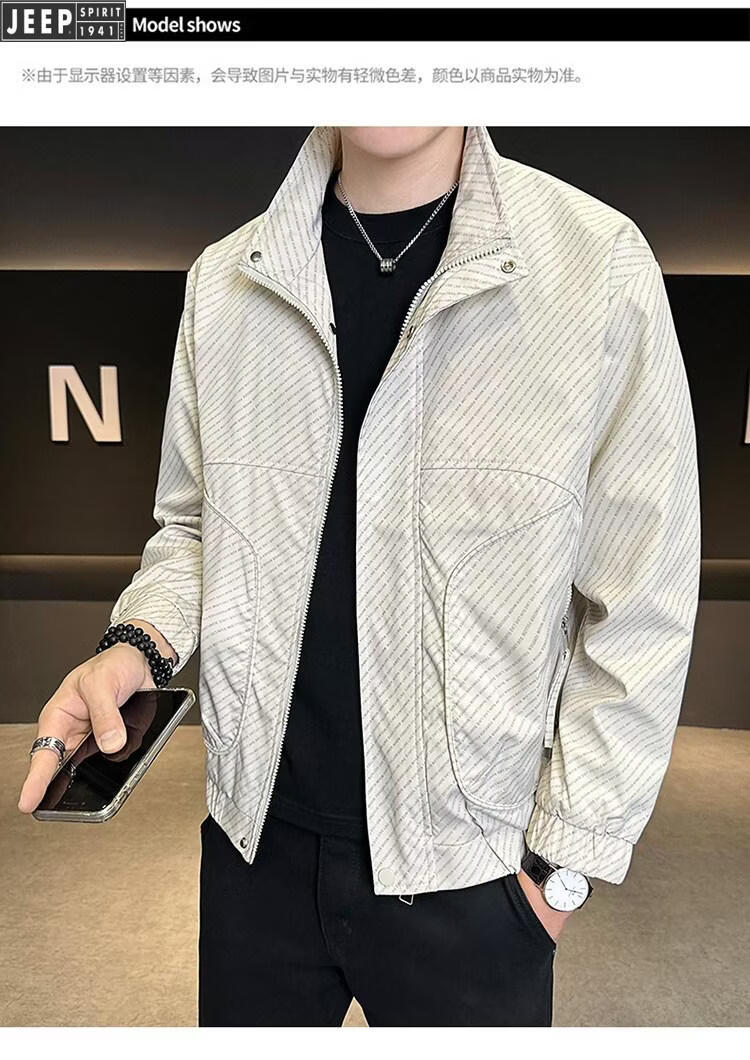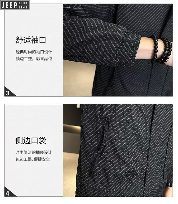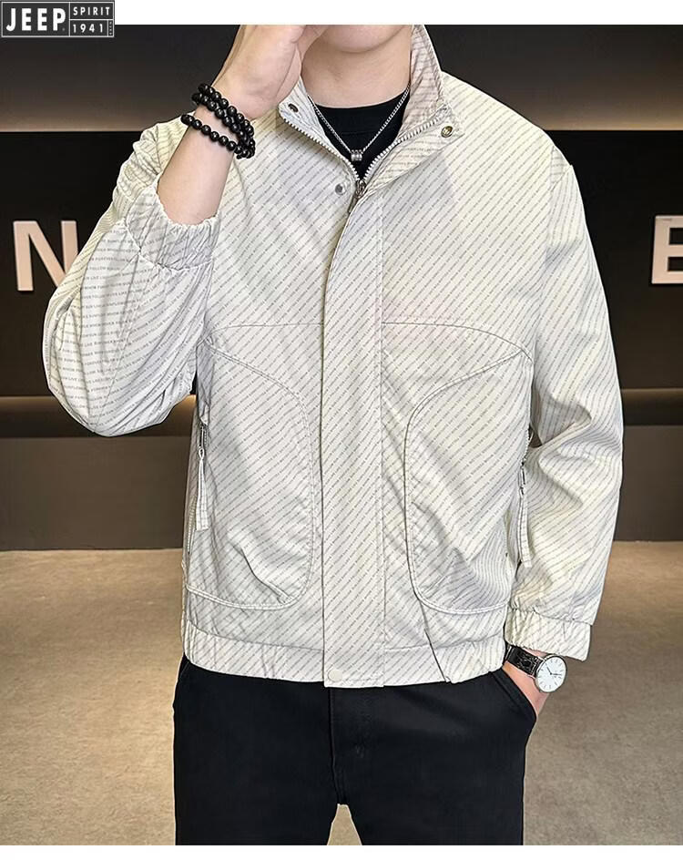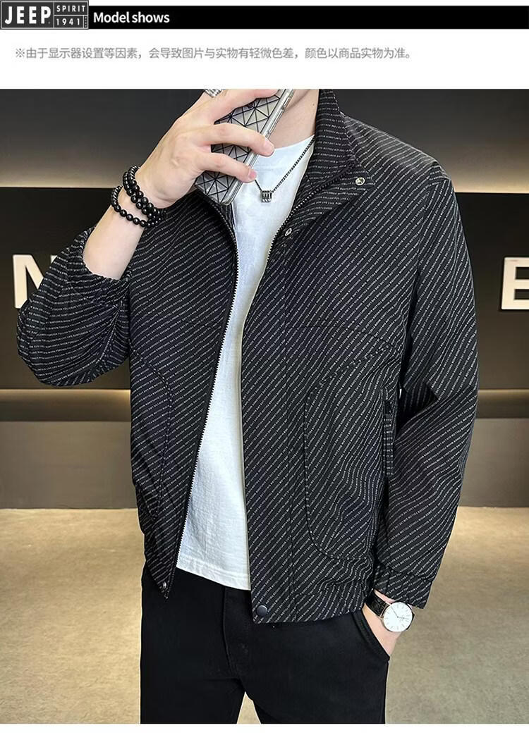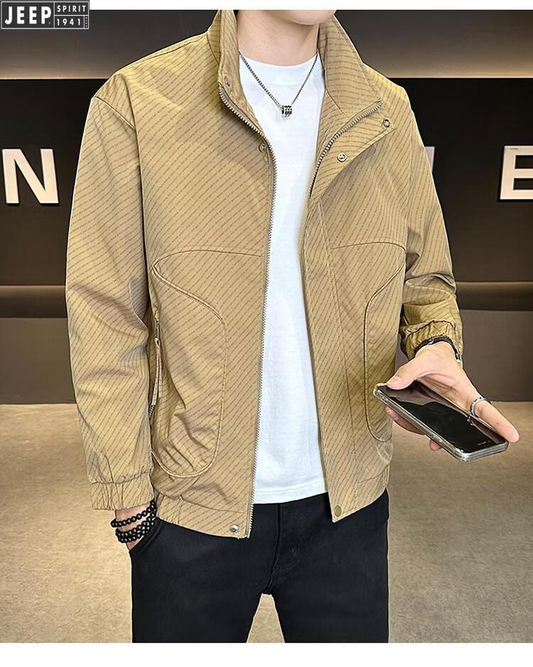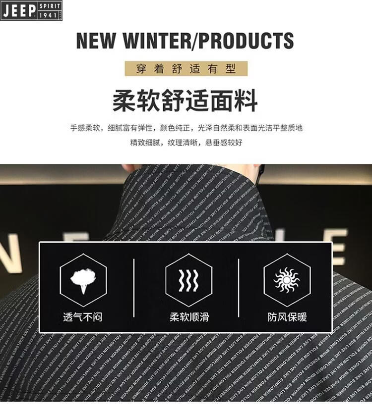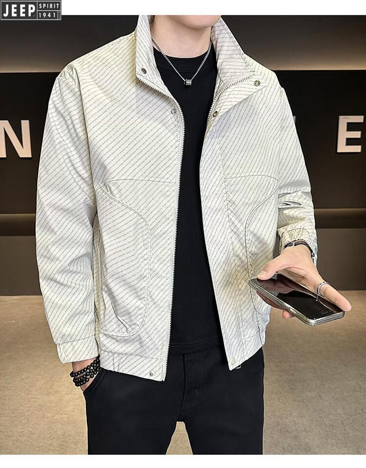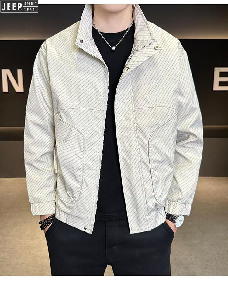 JEEP Jeep Men's Jacket Cotton Thickened Spring and Autumn 2026 New Stand Collar Jacket Men's Casual Warm Cotton Clothes Men's 8852 Cotton Black Cotton Thickened XL 130-145Jin Jin is equal to 0.5 kg