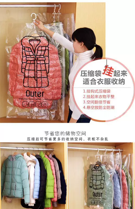 Yusenyi Hanging Vacuum Compression Bag Side-pull Exhaust Clothes Dust Cover Waterproof Storage Hanging Clothes Bag Moving Packing Bag Extra Large (67x130cm) 5 Pack-Electric Pump Type