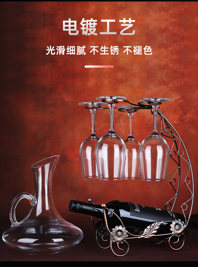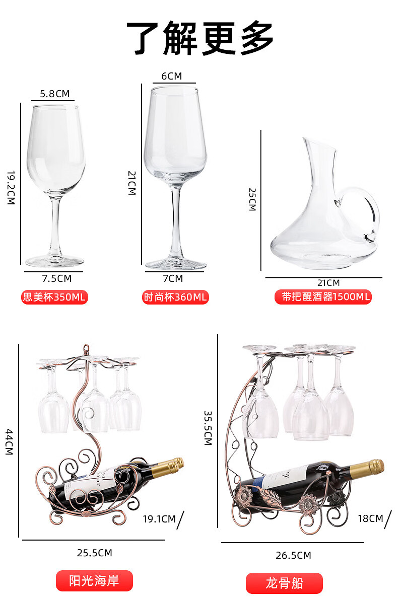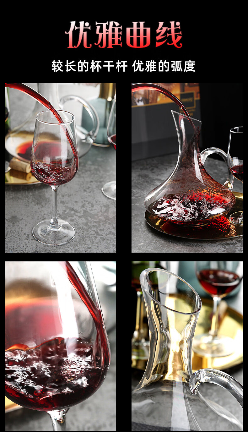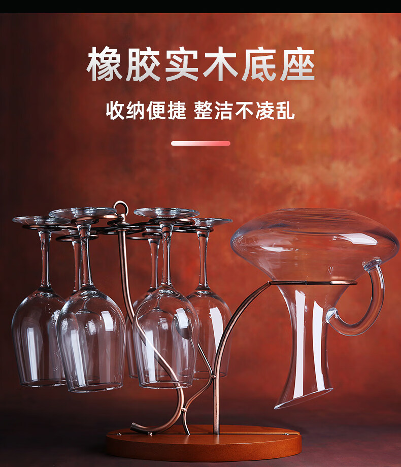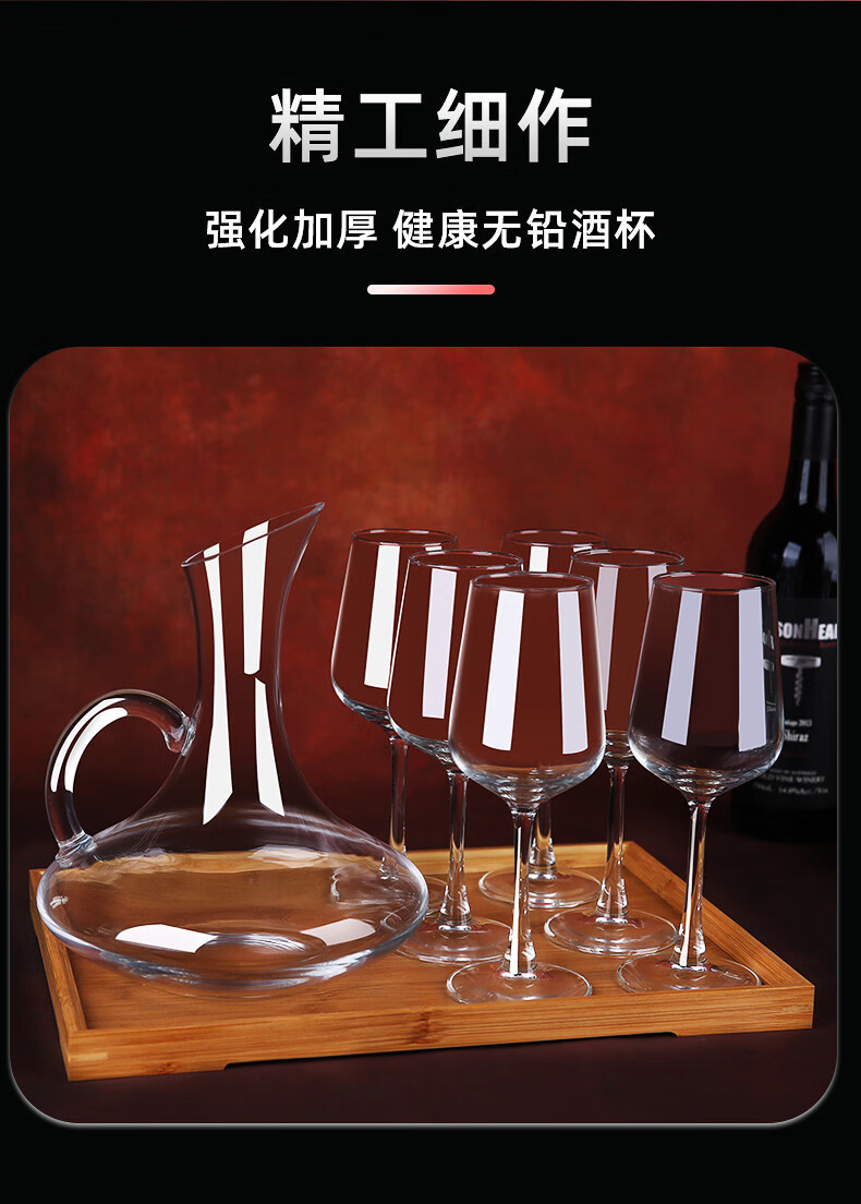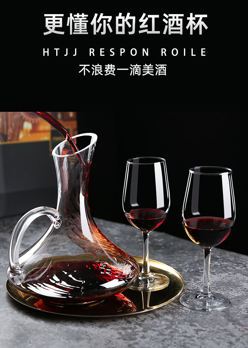 Tuojin household crystal red wine glass set including decanter European-style goblet, reinforced thickened flower boat + Simei 6 + decanter stand + belt handle (+ wine utensils)