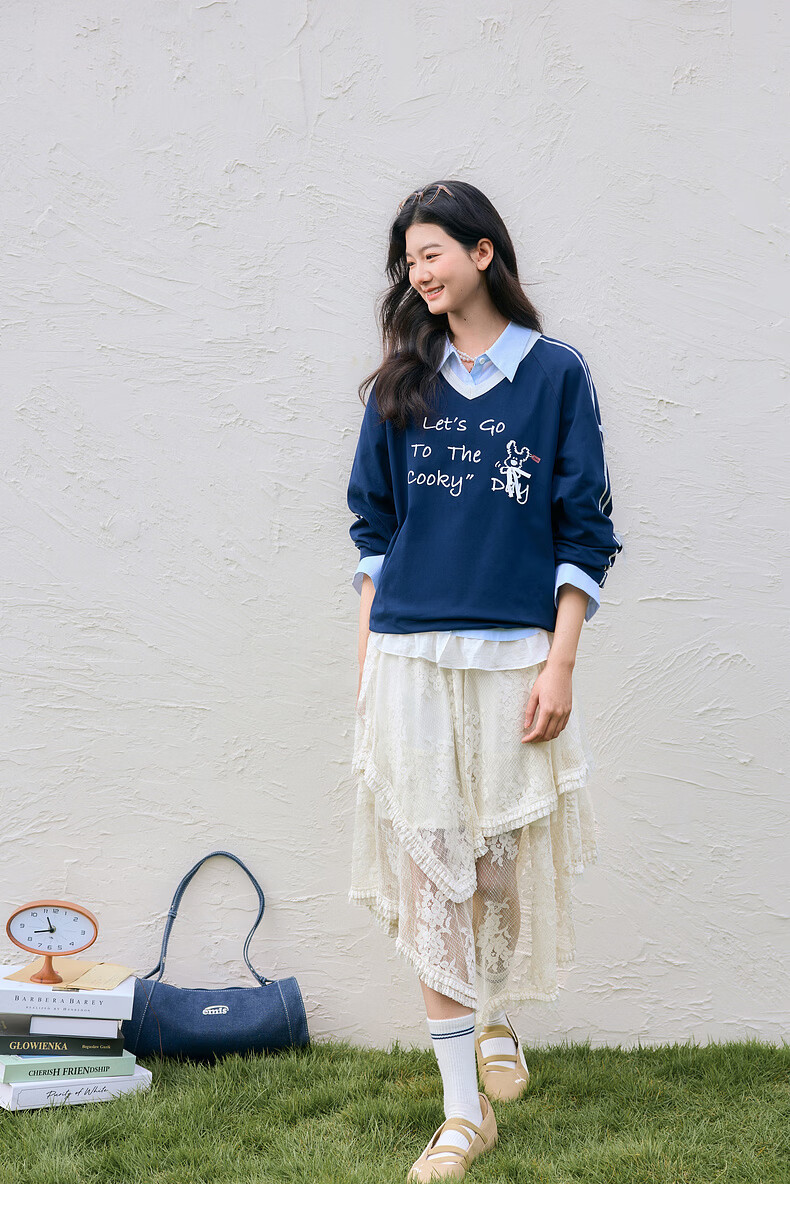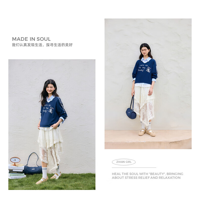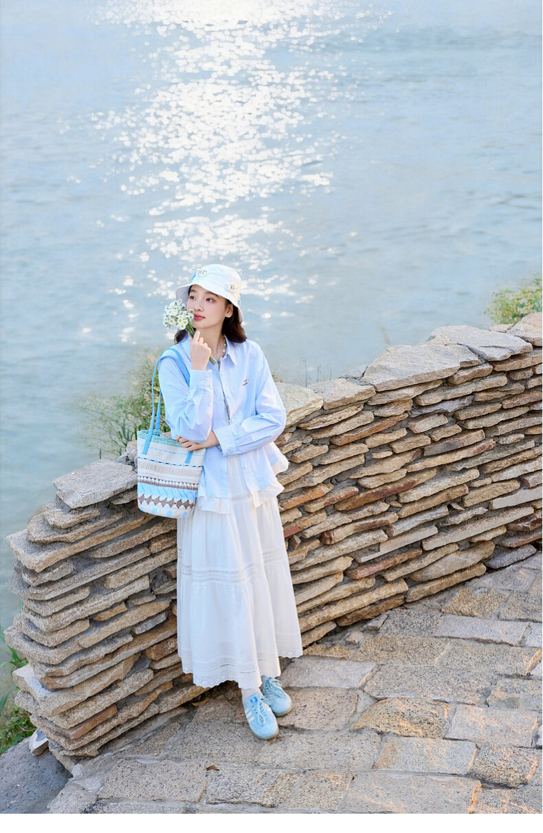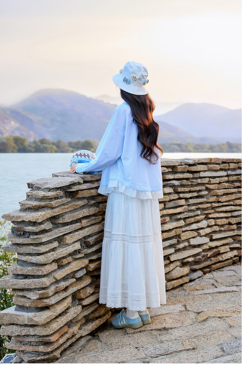 Zihan (ZIHAN) Zihan blue plaid shirt for women 2026 spring new style fungus hem hem stitched embroidered loose flesh-covering shirt Tide Blue XS